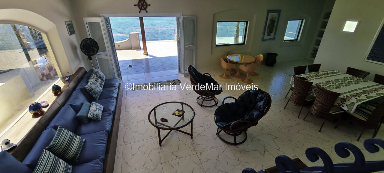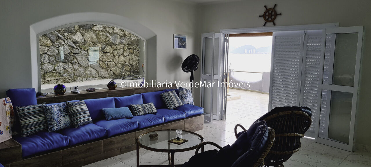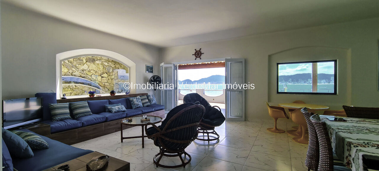 Casa à venda pé na Água no Condomínio Peninsula em Guarujá, com 3 suítes, sala para 3 ambientes com vista livre para o mar aberto e varanda de frente para o mar, lavanderia e casa de caseiro.