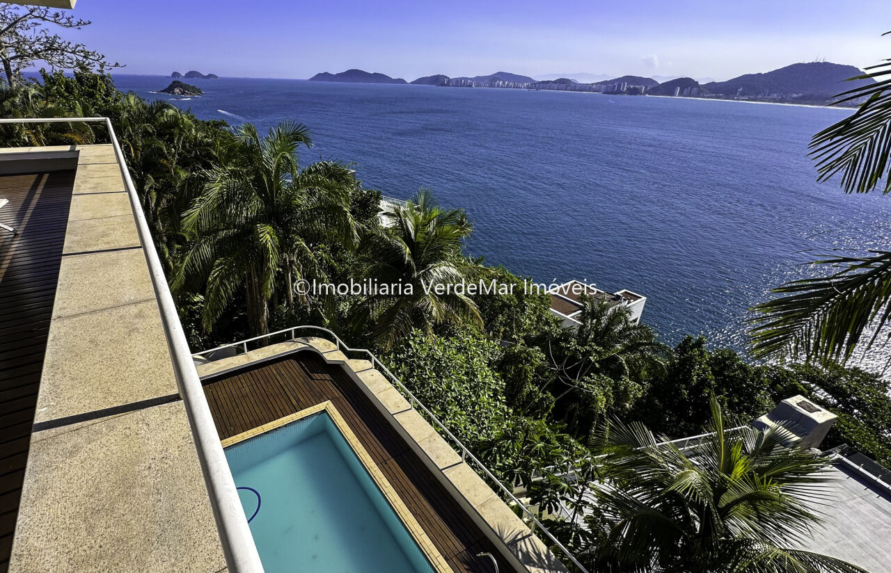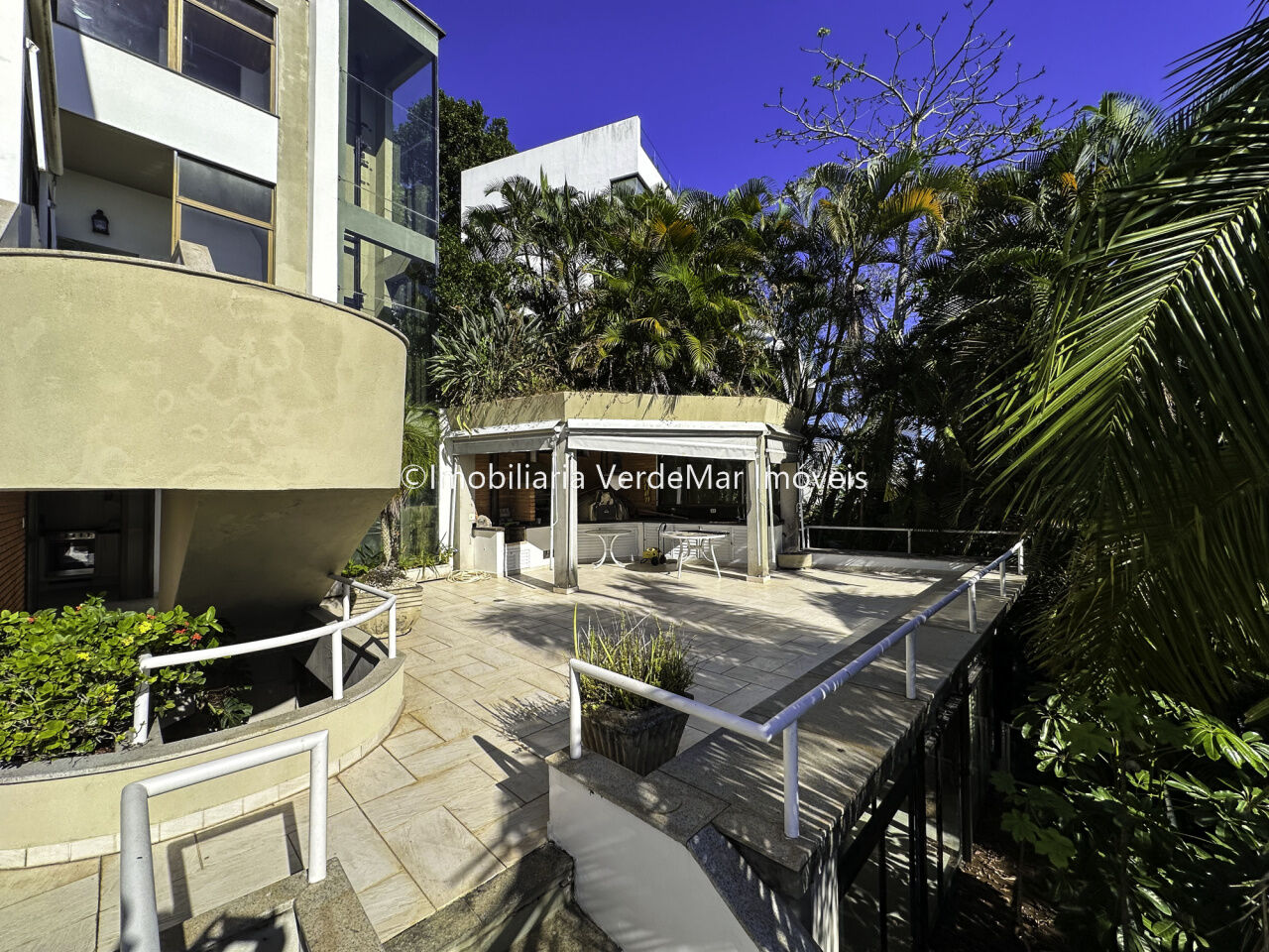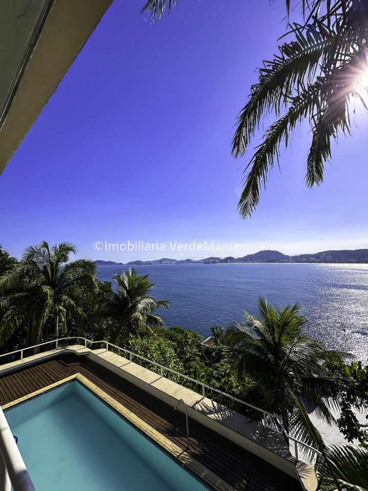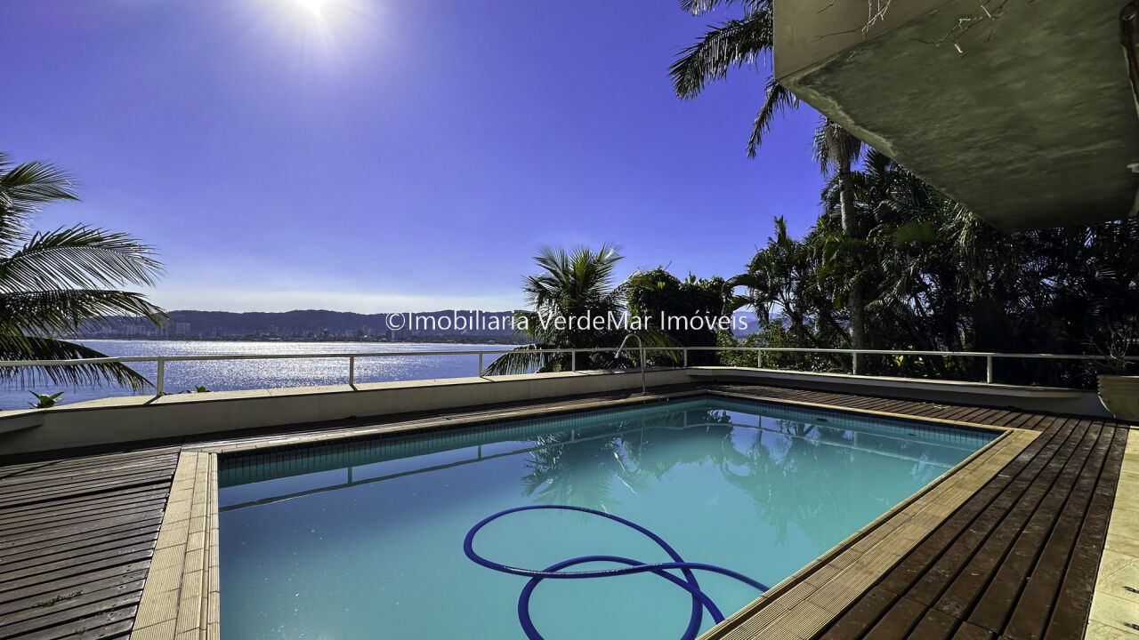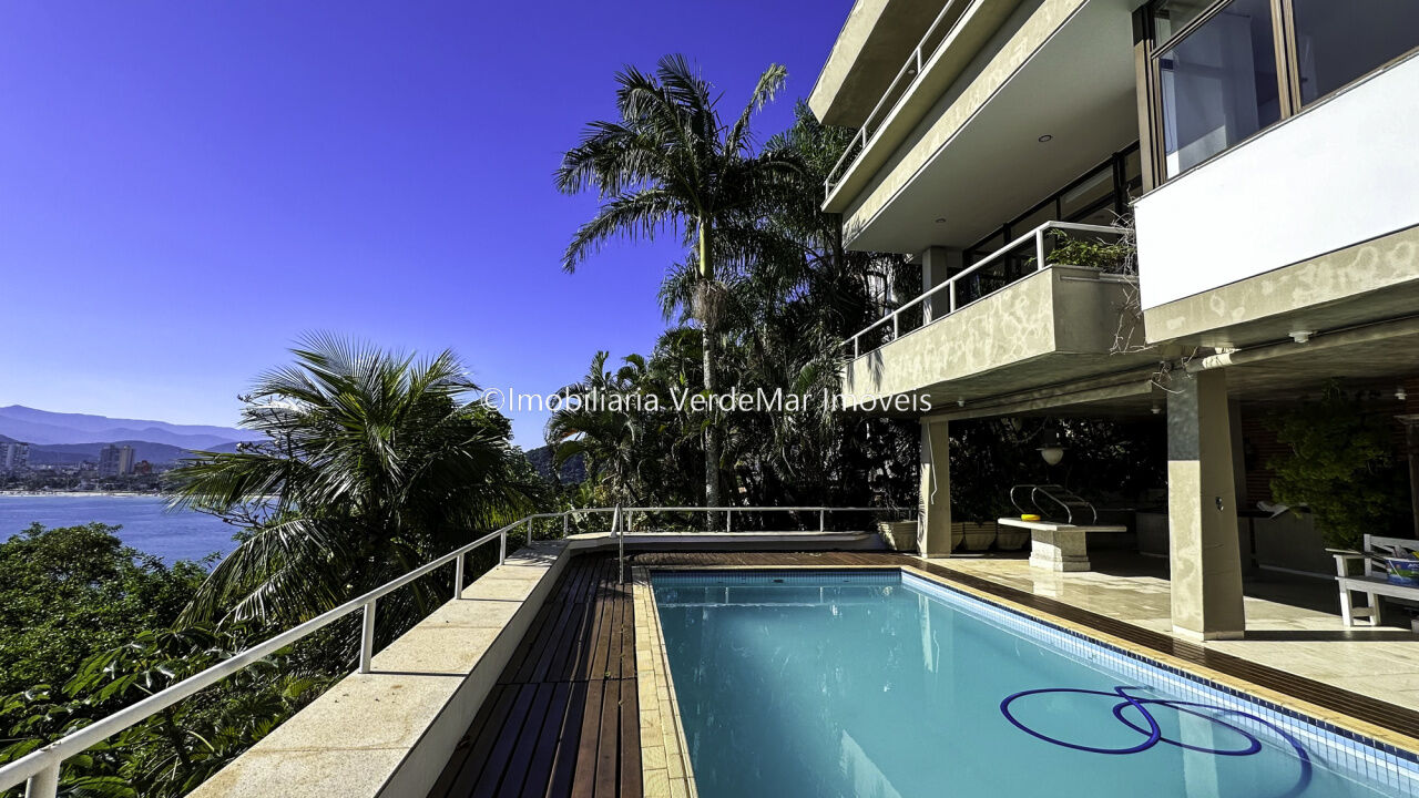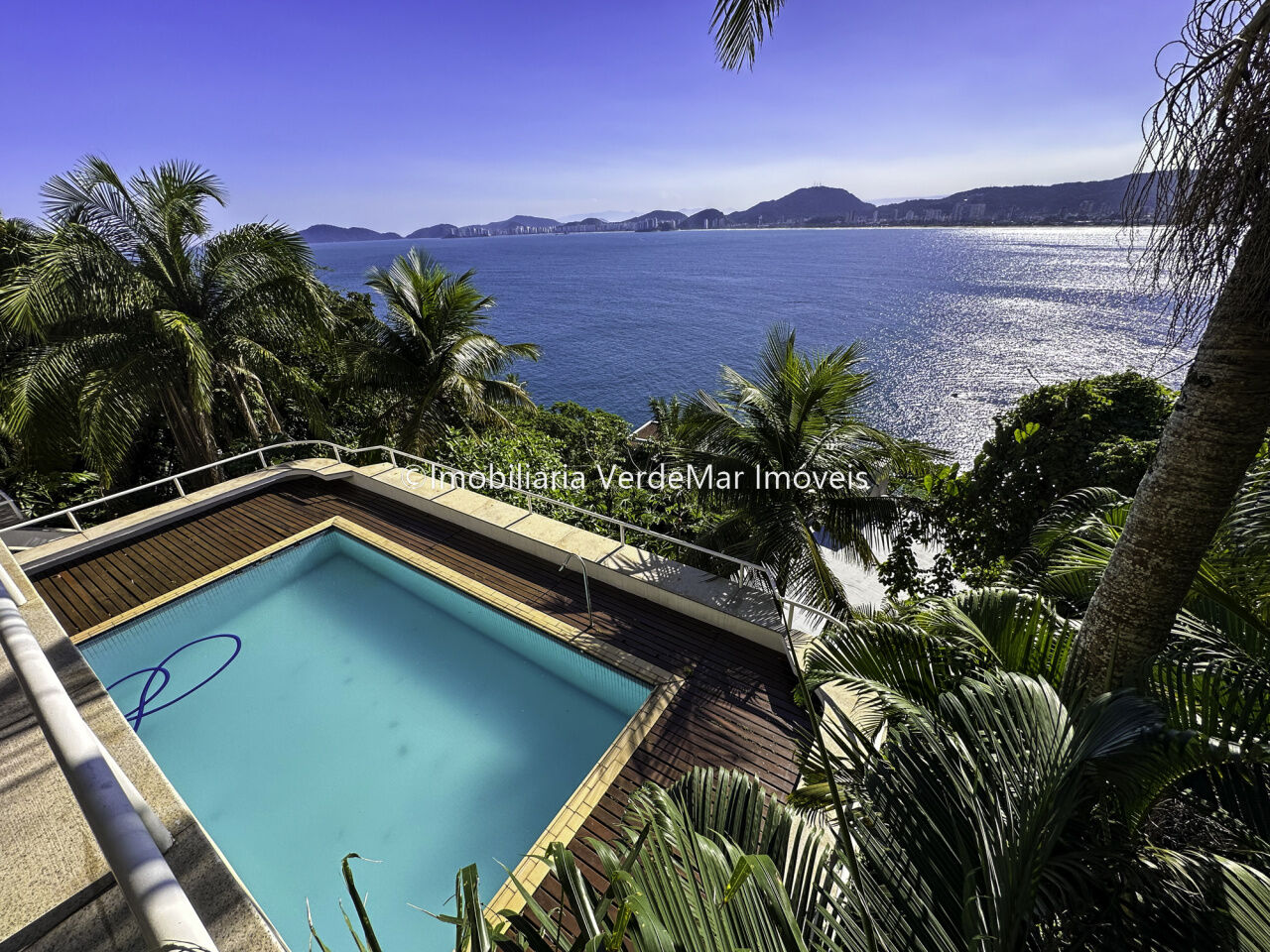 Casa com vista para o mar no Residencial Península na praia da Enseada em Guarujá, com 5 suítes, closet, sala para 3 ambientes, cozinha americana, copa, lavabo, despensa, área de serviço, e casa de caseiro.