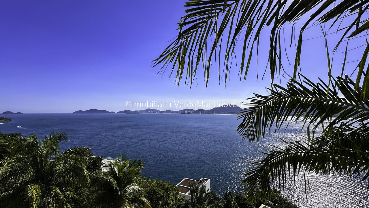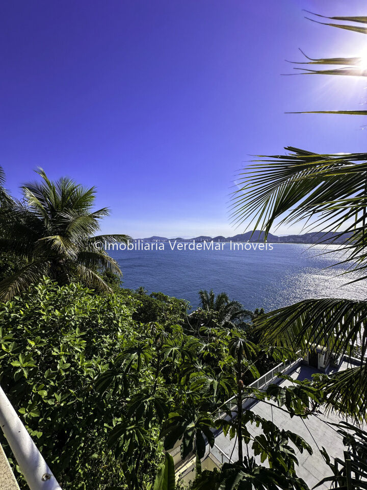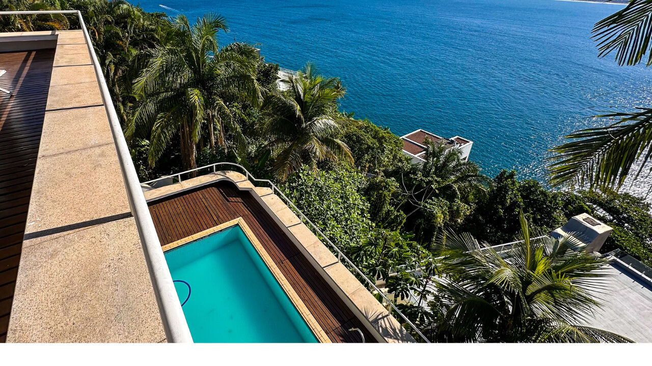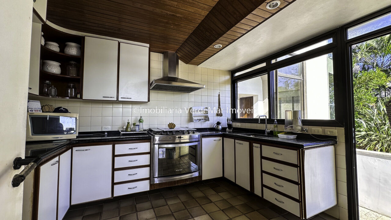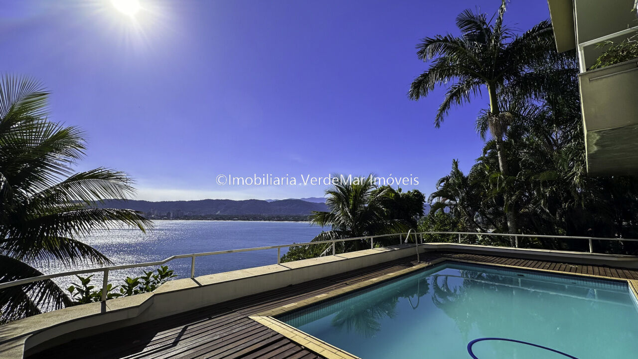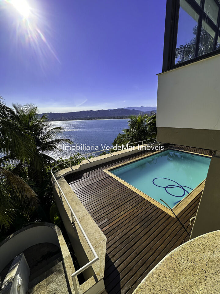 Casa com vista para o mar no Residencial Península na praia da Enseada em Guarujá, com 5 suítes, closet, sala para 3 ambientes, cozinha americana, copa, lavabo, despensa, área de serviço, e casa de caseiro.