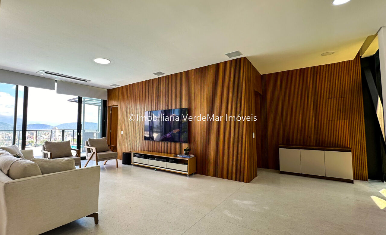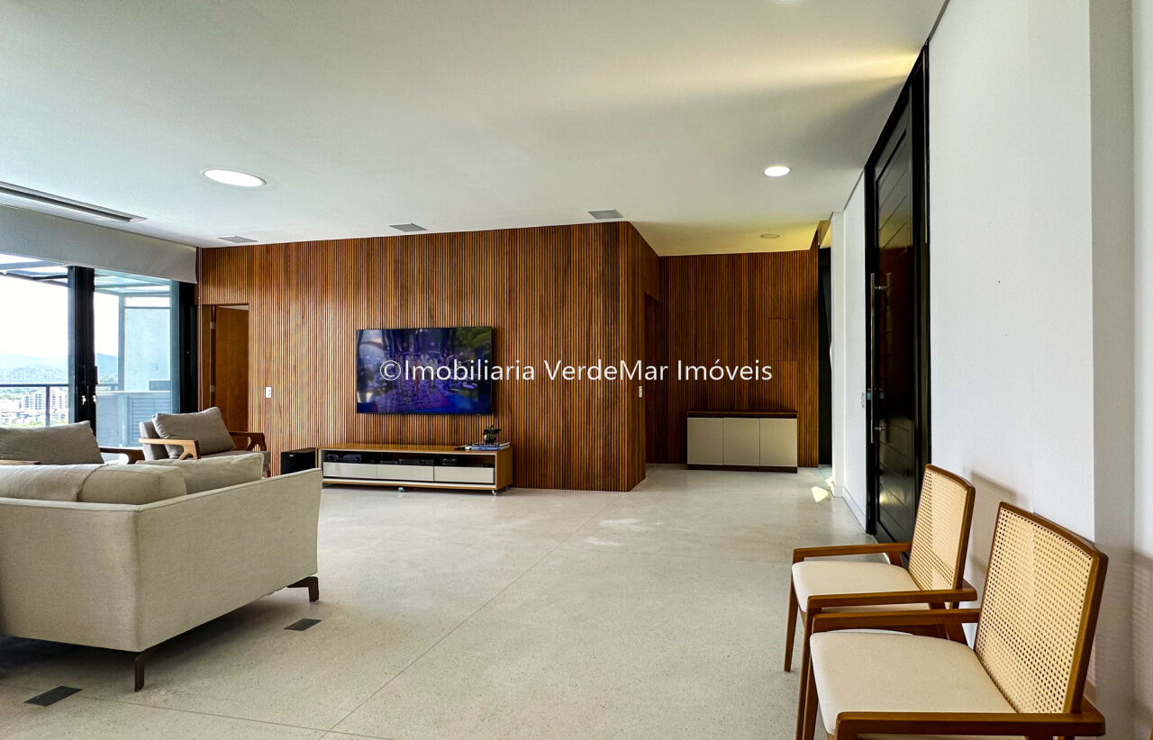 Belíssima casa nova à venda no condomínio Península na praia da Enseada em Guarujá, vista total para o mar ,com 03 suítes todas com sacada e vista mar mobiliadas, ar condicionado em todos os cômodos, elevador, amplo living decorado em 02 ambientes com sacada integrada ao lazer , cozinha planejada com vista mar, despensa, lavabo, área de serviço e suíte de empregados.