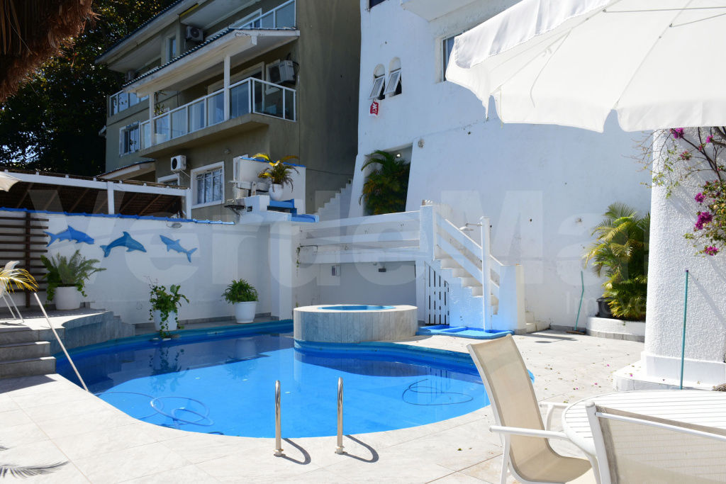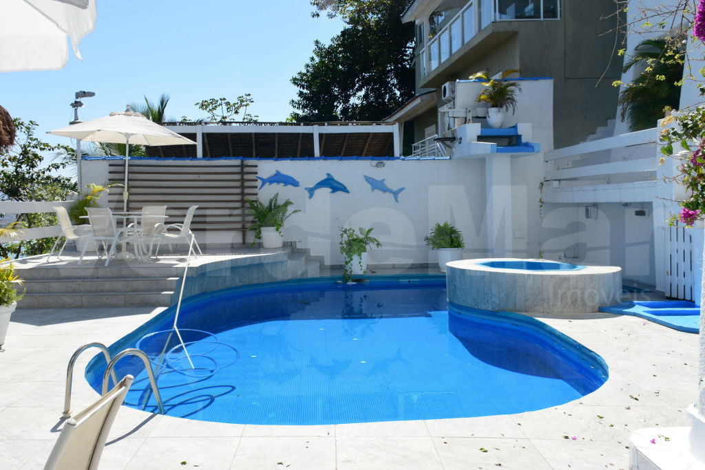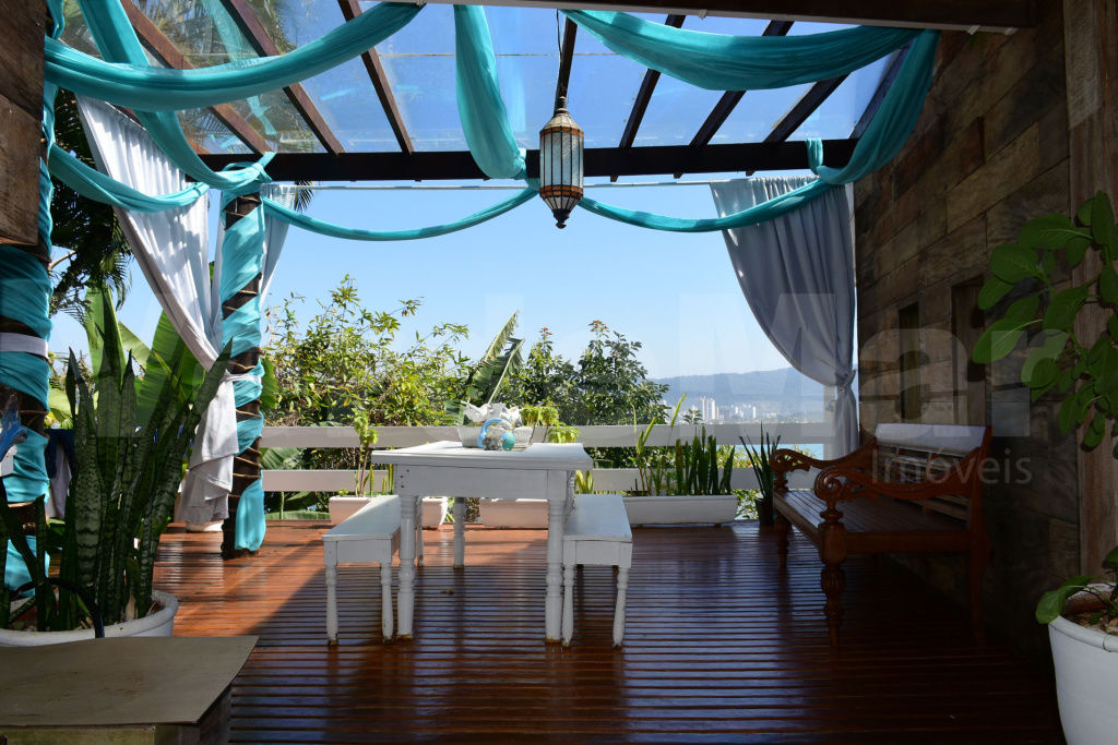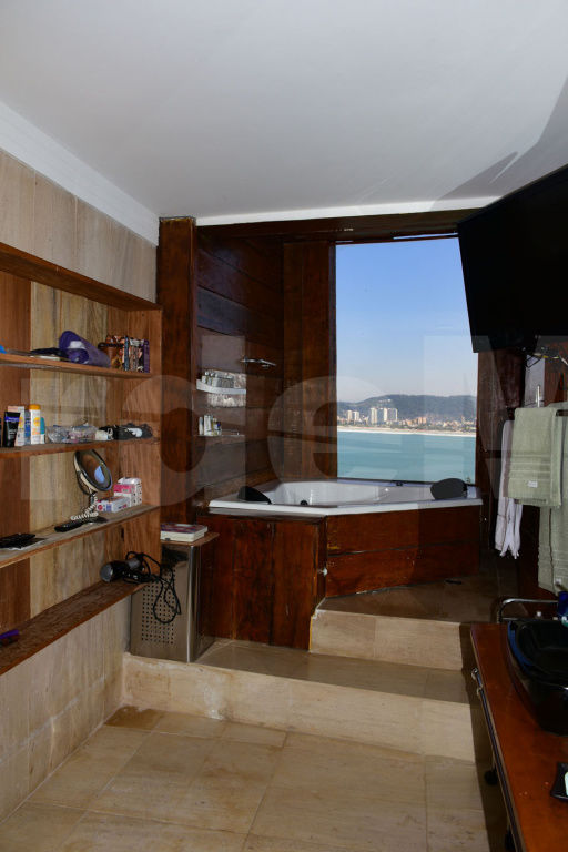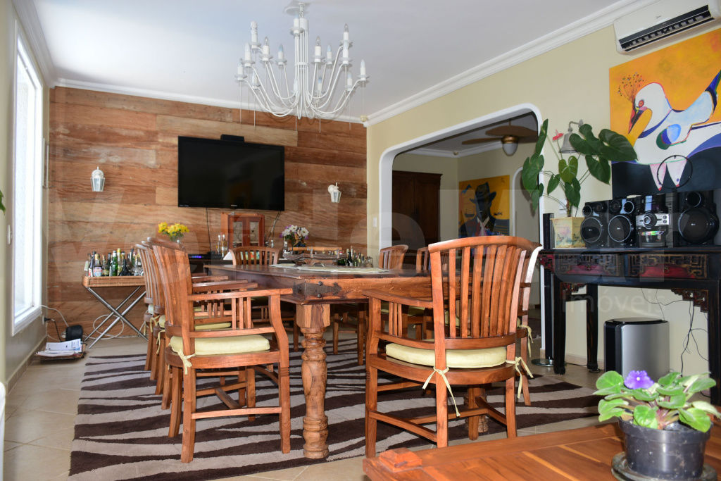 Casa com vista para o mar no Residencial Península na praia da Enseada em Guarujá, com 5 suítes, closet, sala para 3 ambientes, cozinha americana, copa, lavabo, despensa, área de serviço, e casa de caseiro.