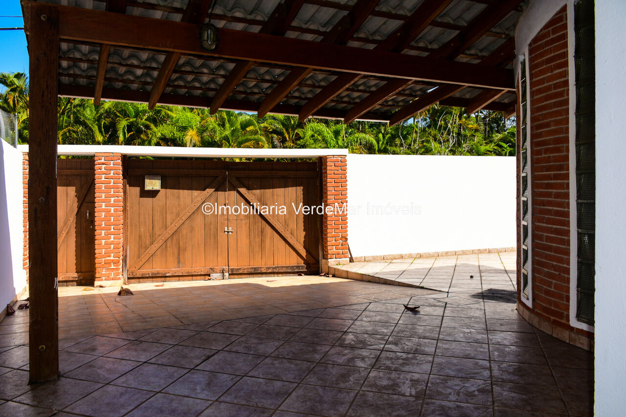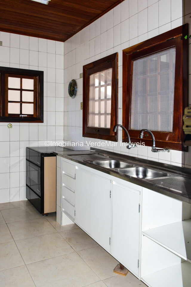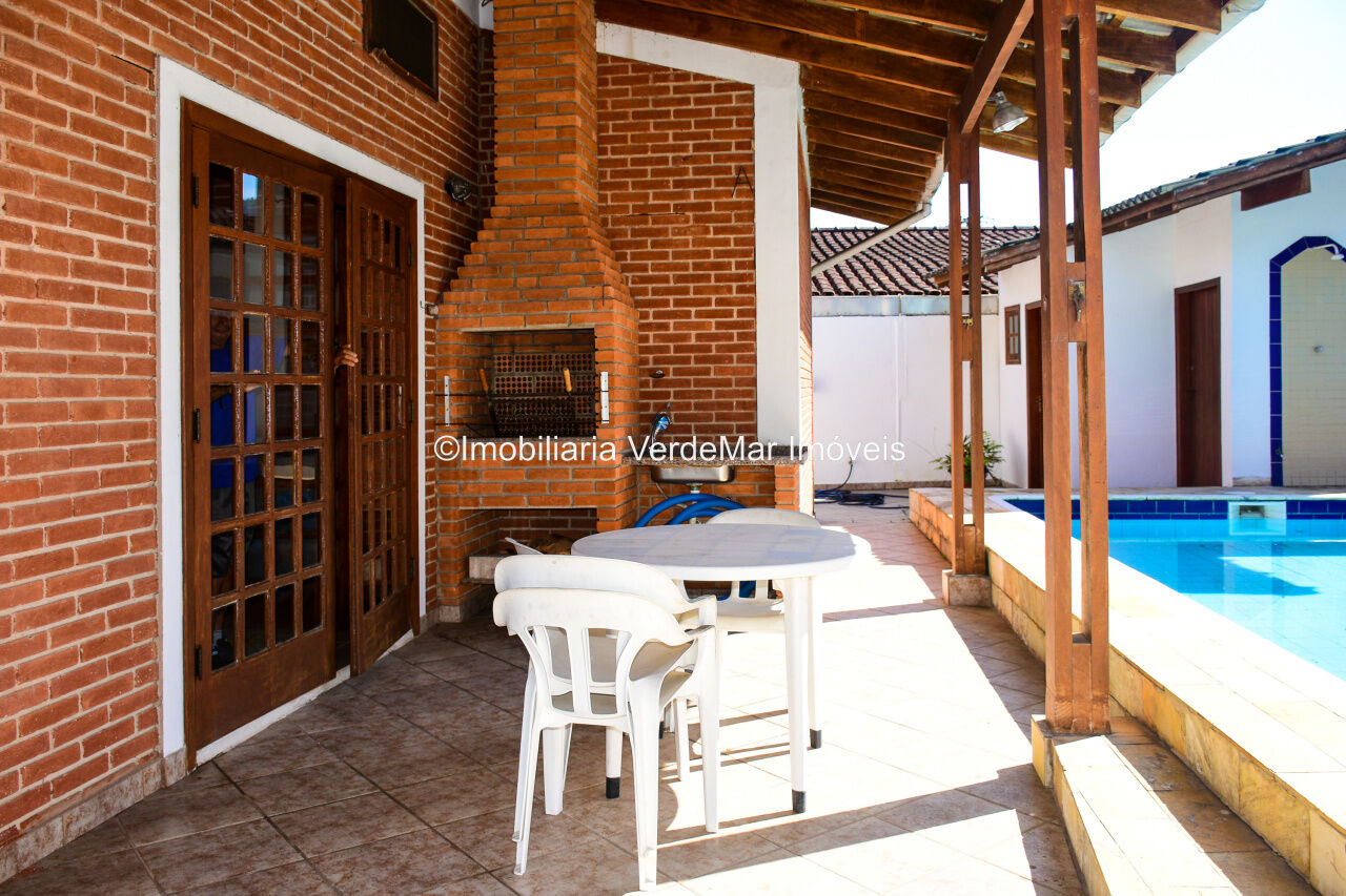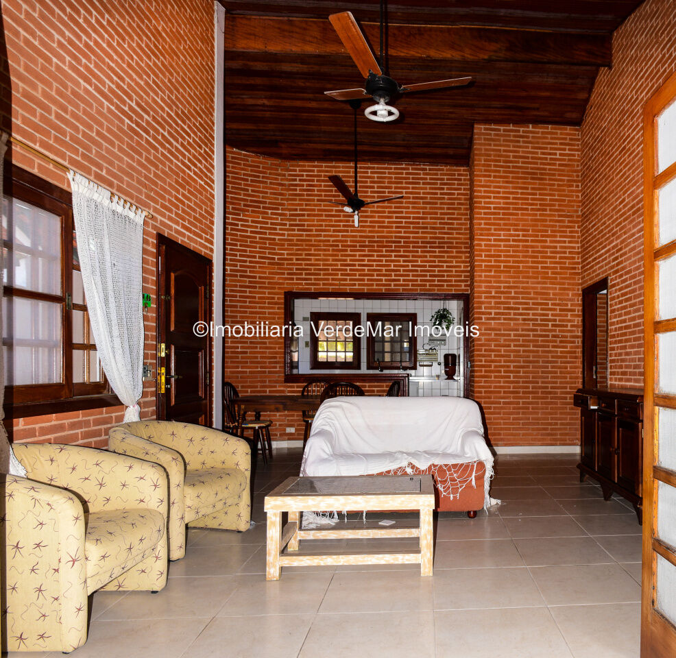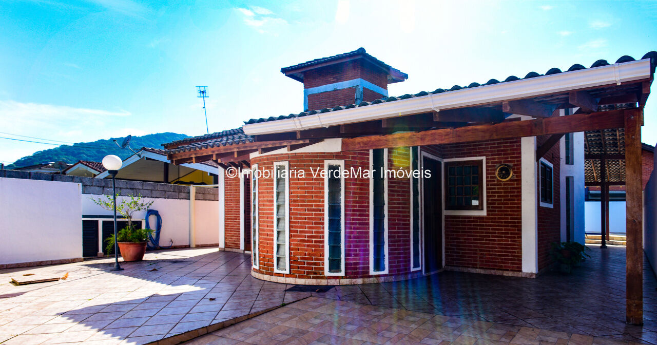 Casa térrea à venda no Jardim Albamar na praia do Perequê em Guarujá, com 4 dormitórios, sala para 2 ambientes com varanda, cozinha americana com armários e área de serviços.