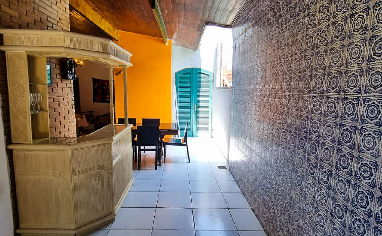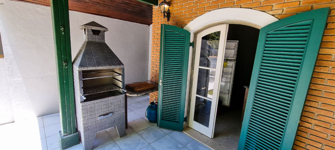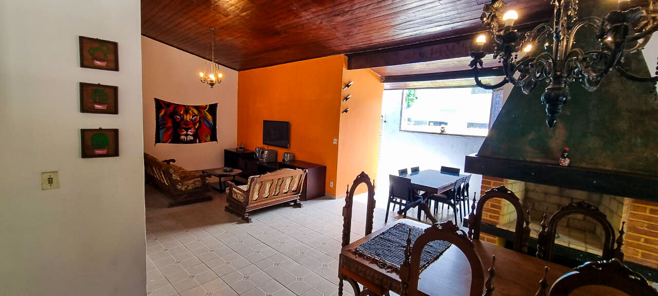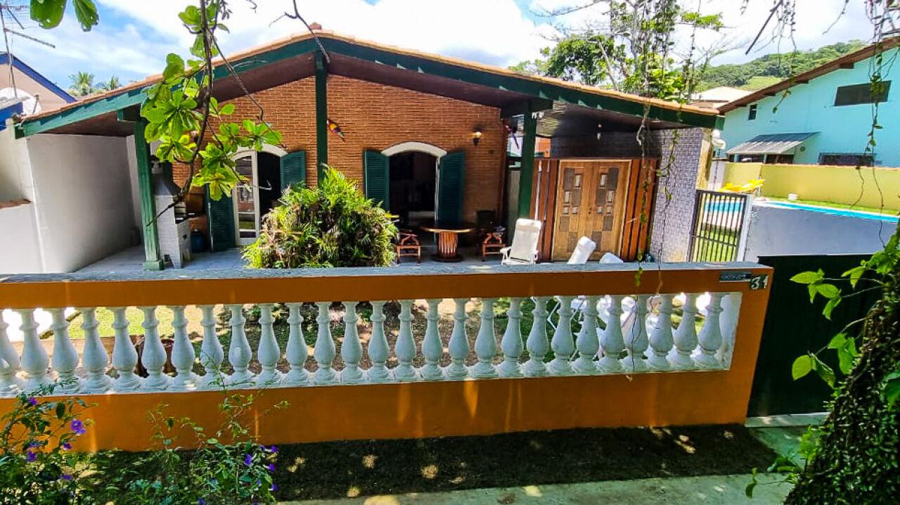 Casa no condomínio Jardim Albamar na praia do Perequê em Guarujá, térrea, com 04 dormitórios sendo 1 suíte, sala para 2 ambientes com varanda, lavabo, cozinha, despensa e área de serviço.