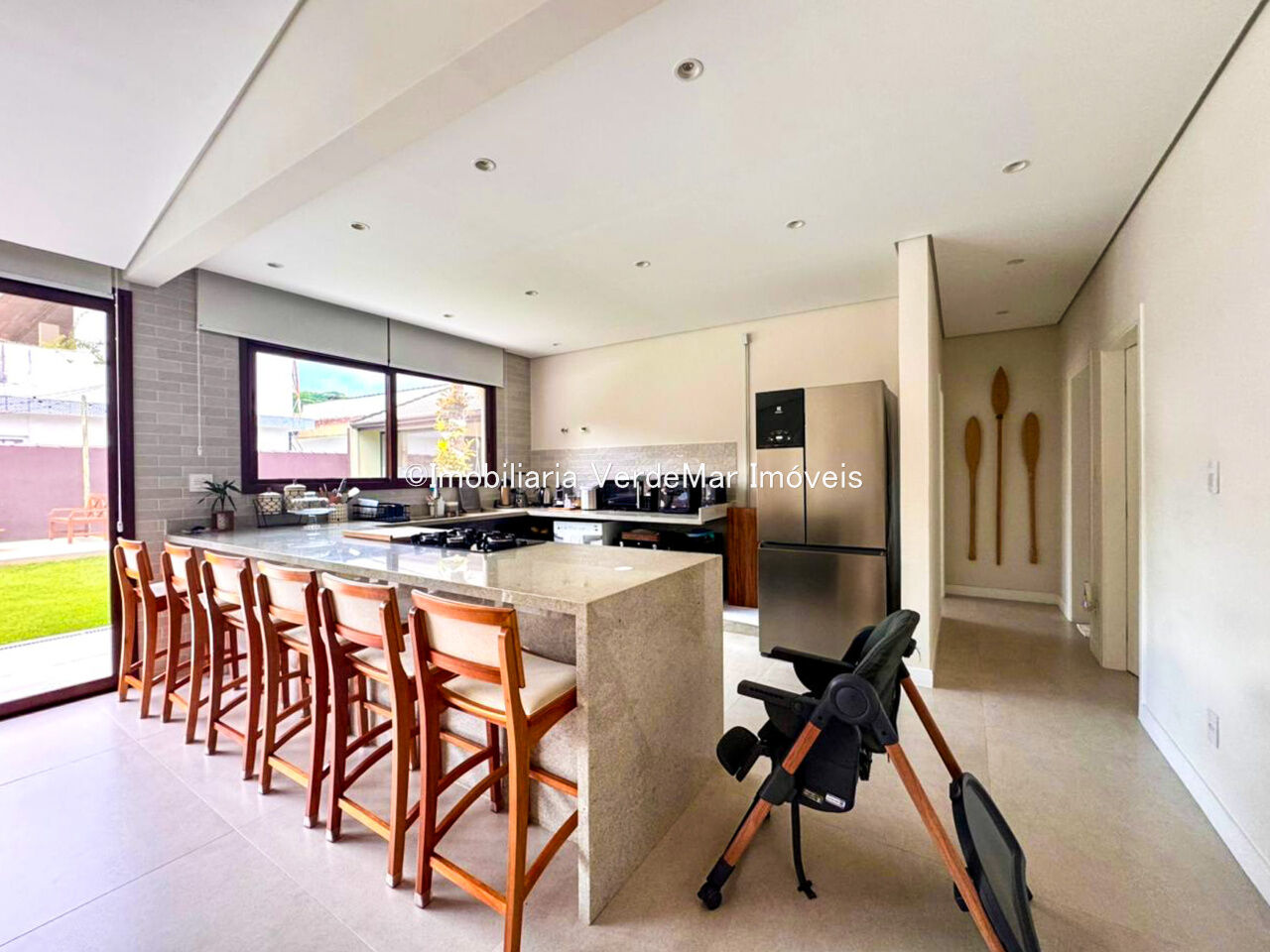 Casa térrea à venda no Jardim Albamar na praia do Perequê em Guarujá, com 4 dormitórios sendo 03 suítes, sala de estar, sala de jantar, cozinha americana com armários e área de serviços.