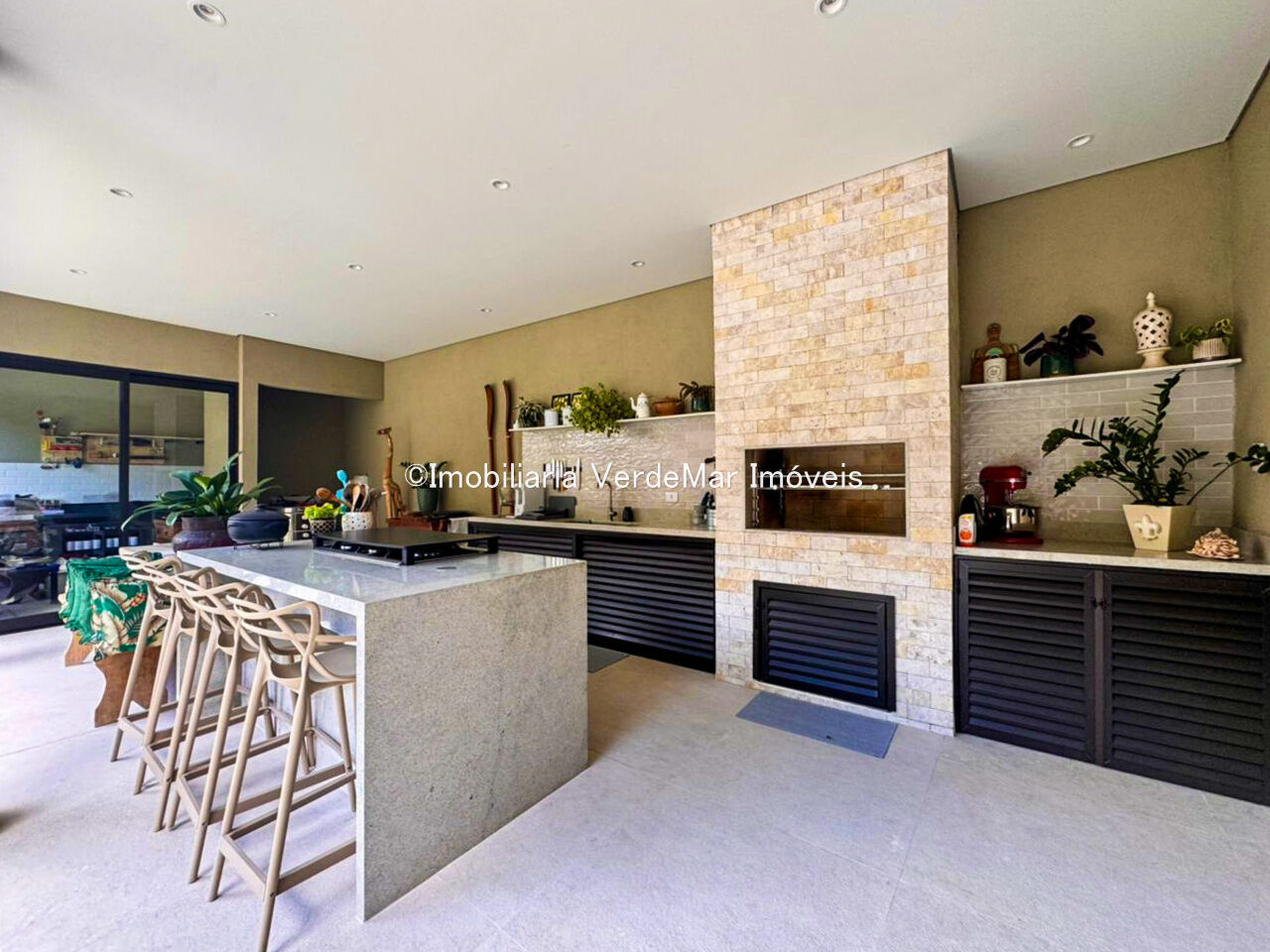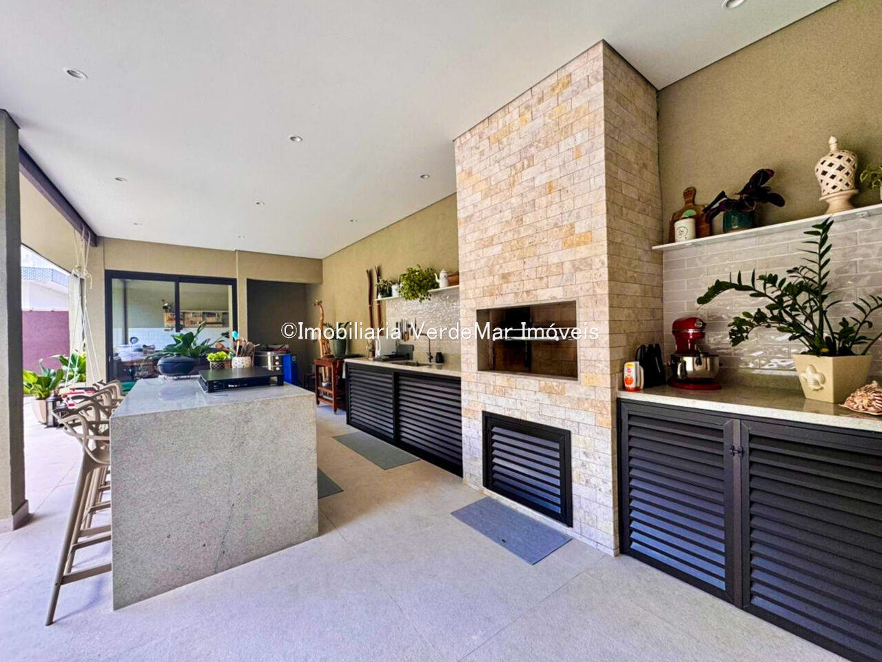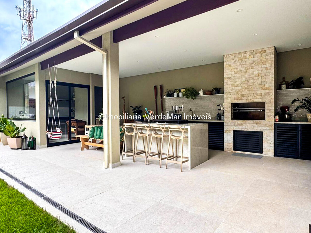 Lazer com jardim e espaço gourmet com churrasqueira.