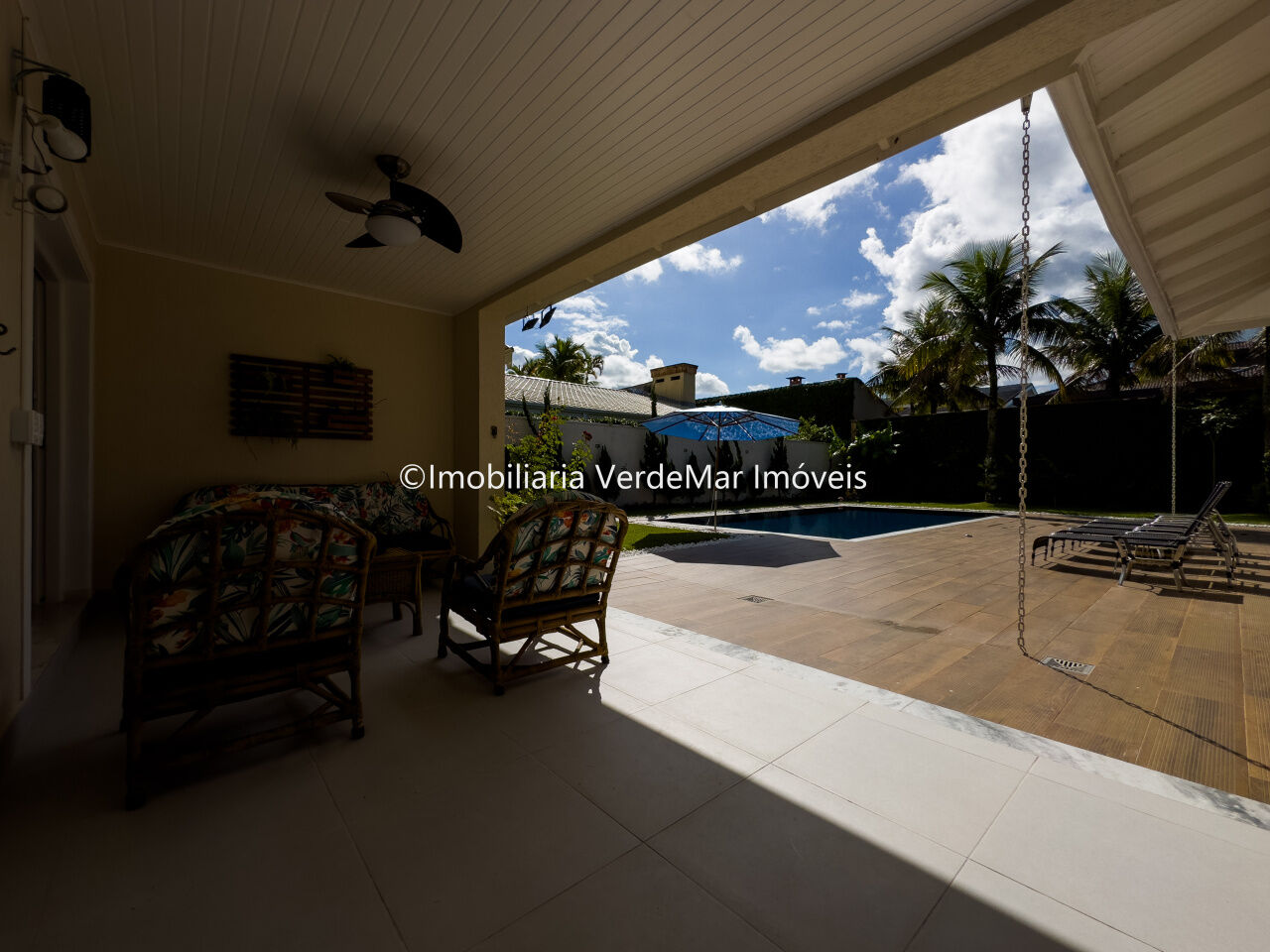 Lazer com jardim, piscina, varanda e churrasqueira.