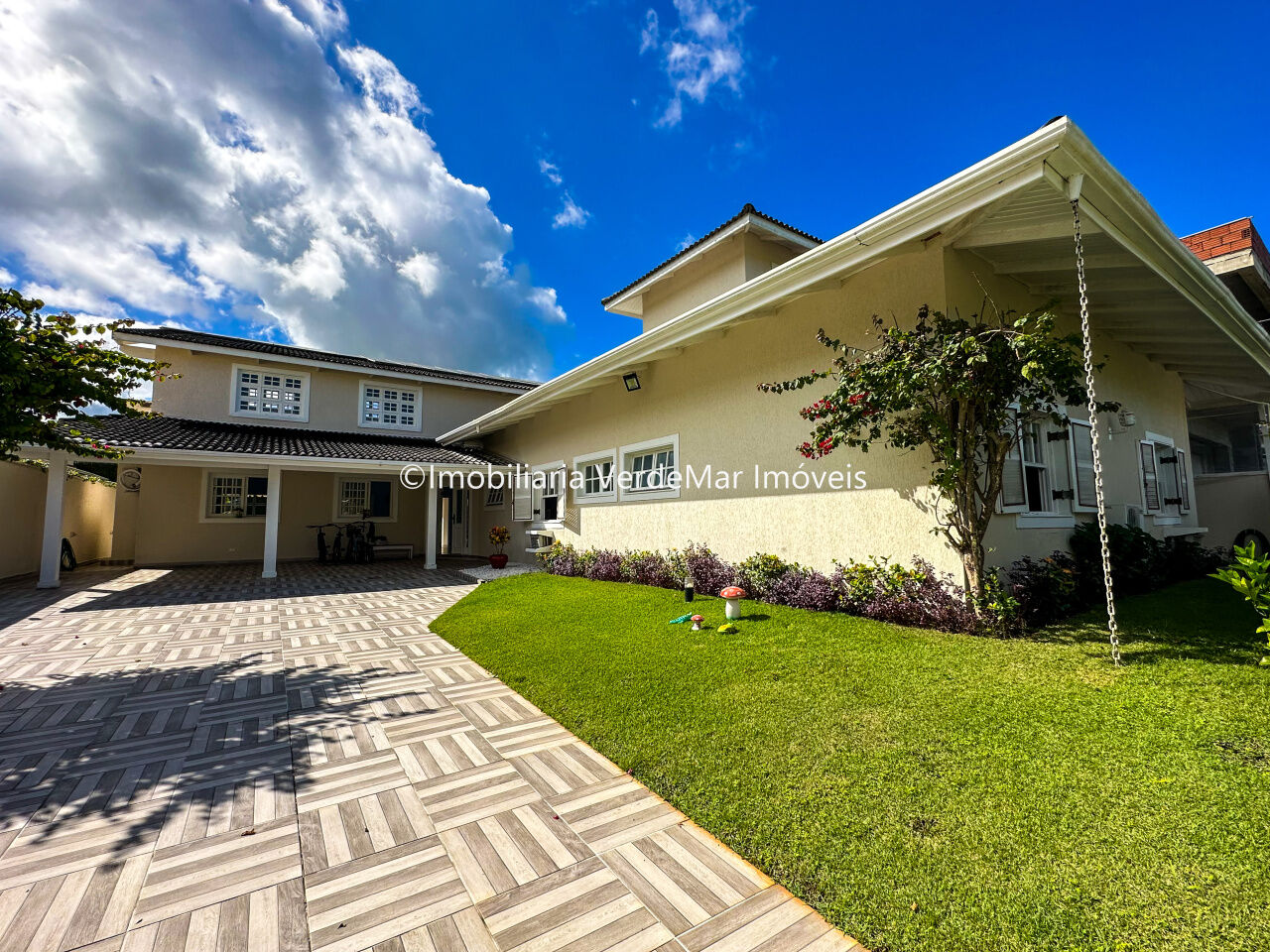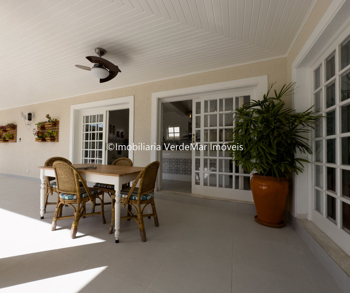 Casa térrea à venda no condomínio Jardim Acapulco na praia do Pernambuco em Guarujá, frente praça, mobiliada, com 04 suítes, sala de estar com varanda mobiliável, sala de jantar, sala de tv, lavabo, cozinha planejada, despensa e área de serviços.