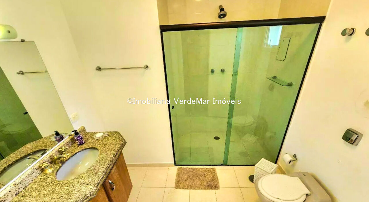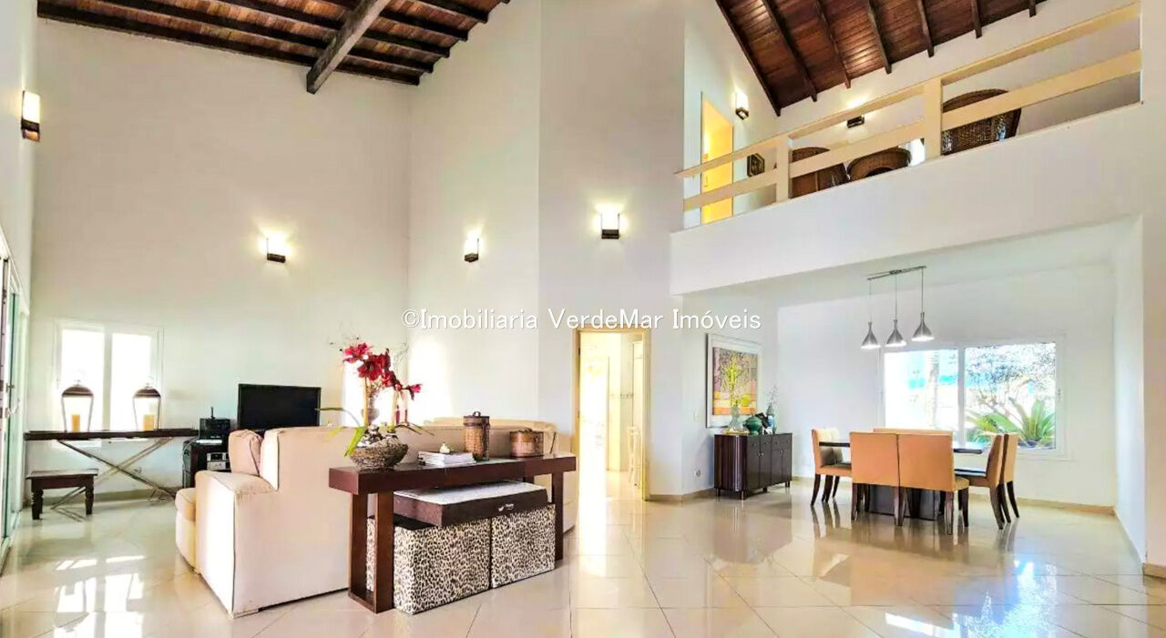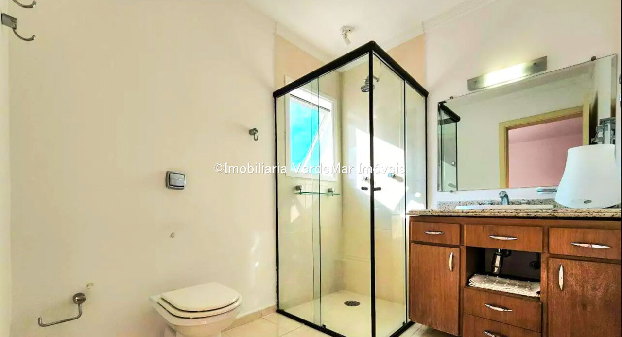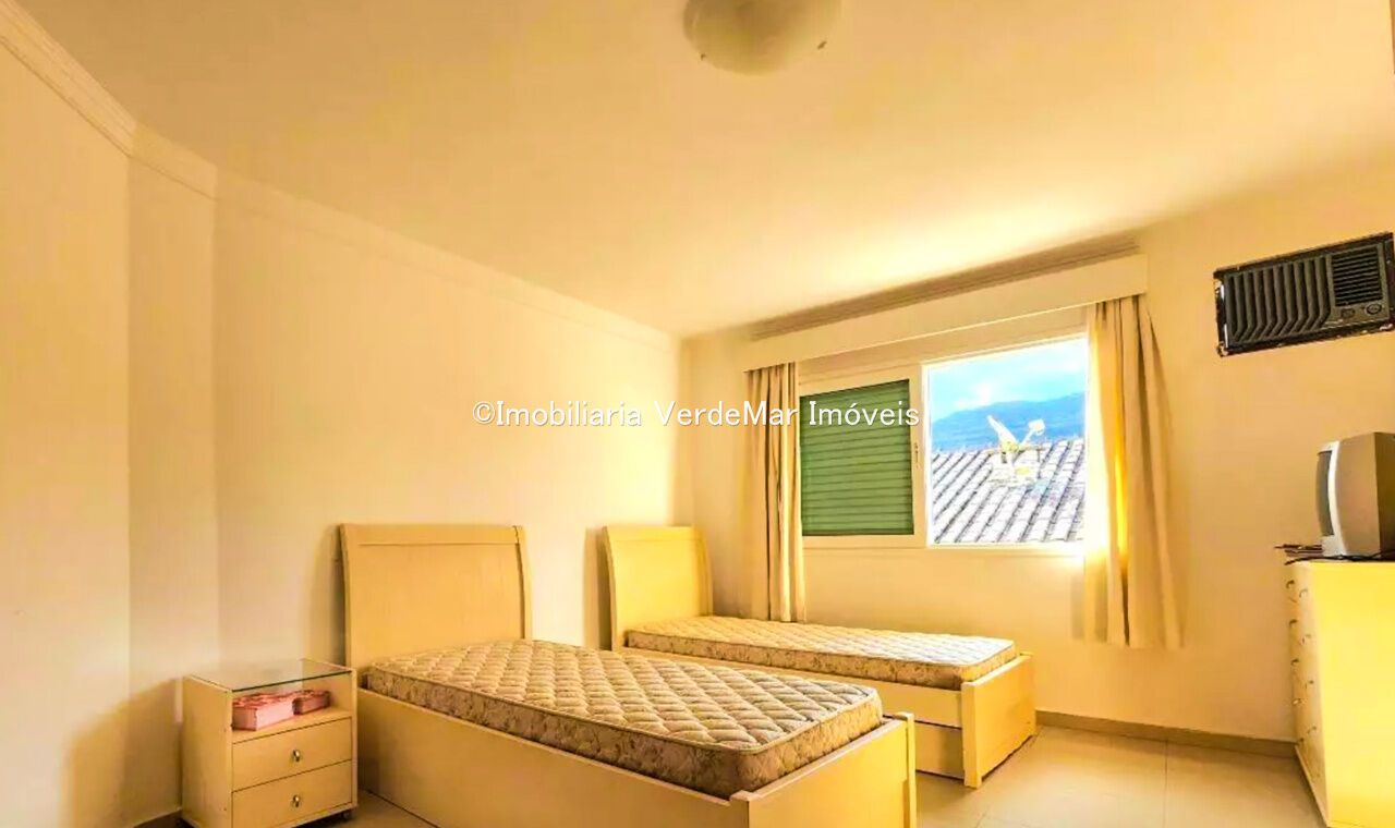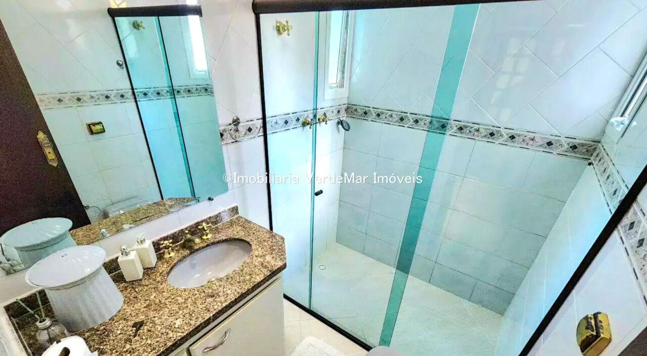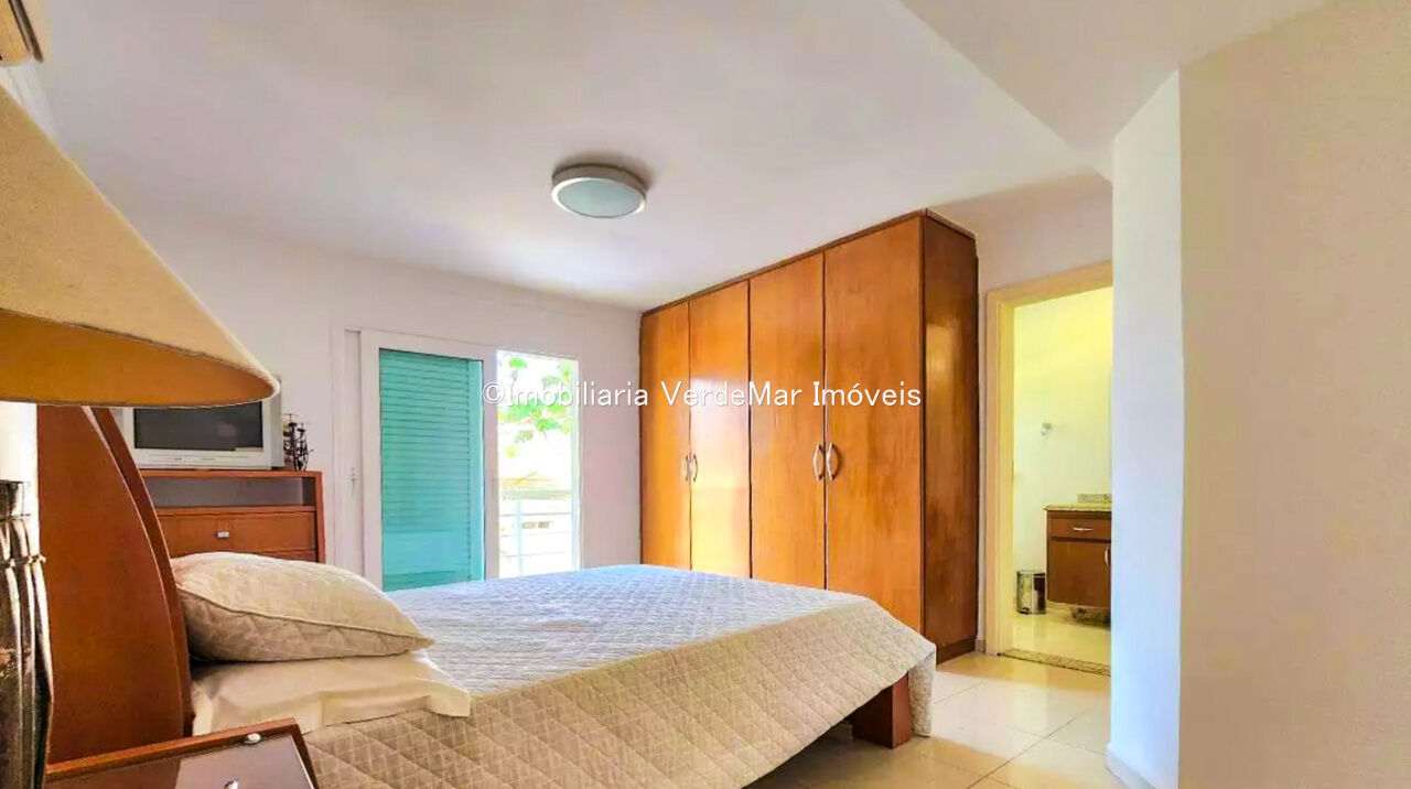 Sobrado à venda no Jardim Acapulco na Praia de Pernambuco no Guarujá, mobiliada com 5 suítes sendo a máster com closet, sala 2 ambientes com varanda integrada e pé direito duplo, lavabo, sala intima no piso superior, cozinha com armários, lavanderia, e suíte de empregada.