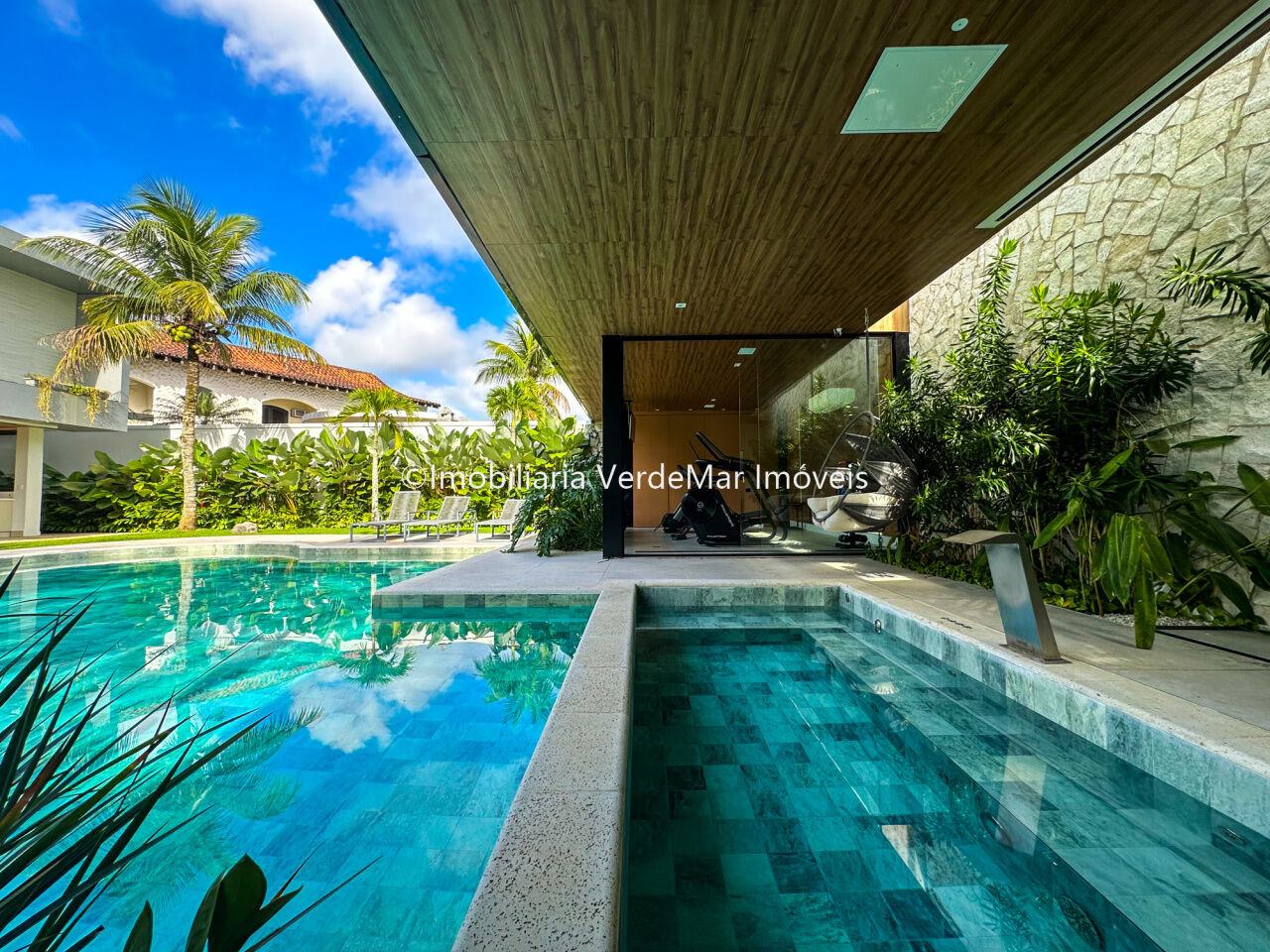 Casa à venda no Jardim Acapulco na Praia de Pernambuco no Guarujá, frente praça, mobiliada e decorada, com 06 suítes sendo a máster com closet e hidromassagem, sala para 3 ambientes com pé direito toda envidraçada e piso de porcelanato, copa e cozinha planejada, lavabo, área de serviço, despensa e dependência de empregados.
