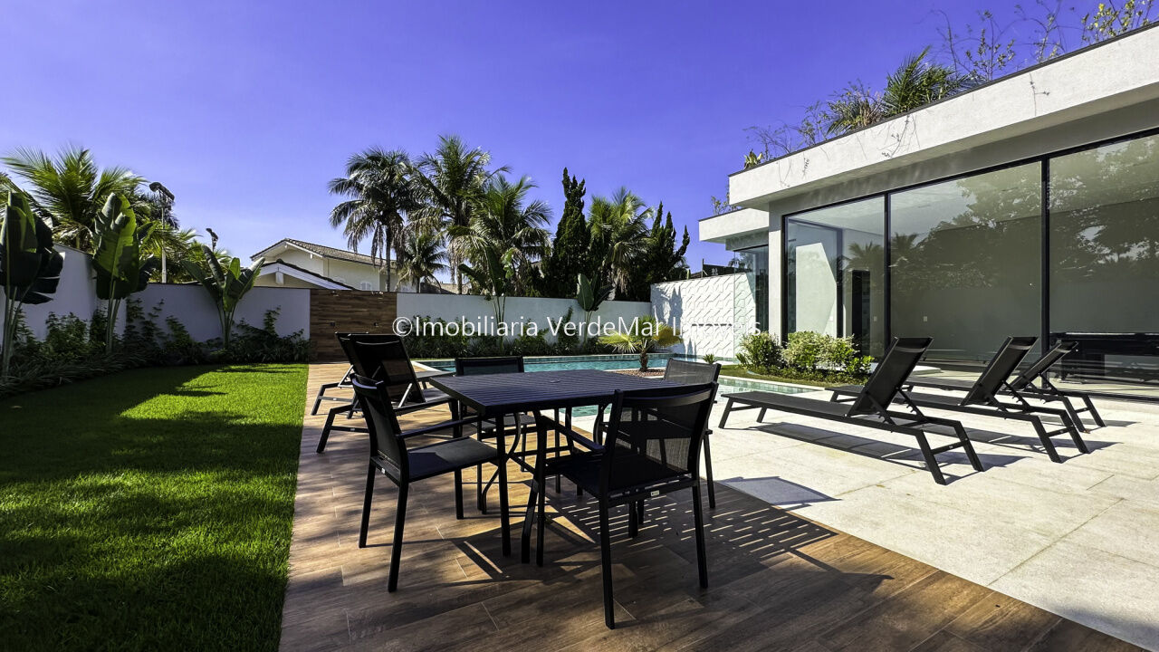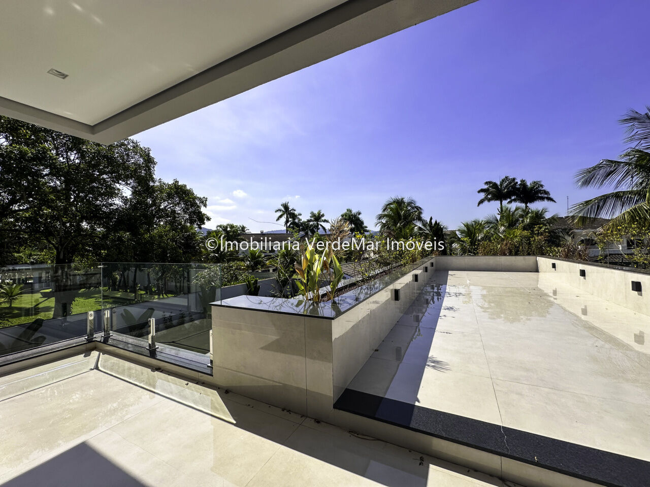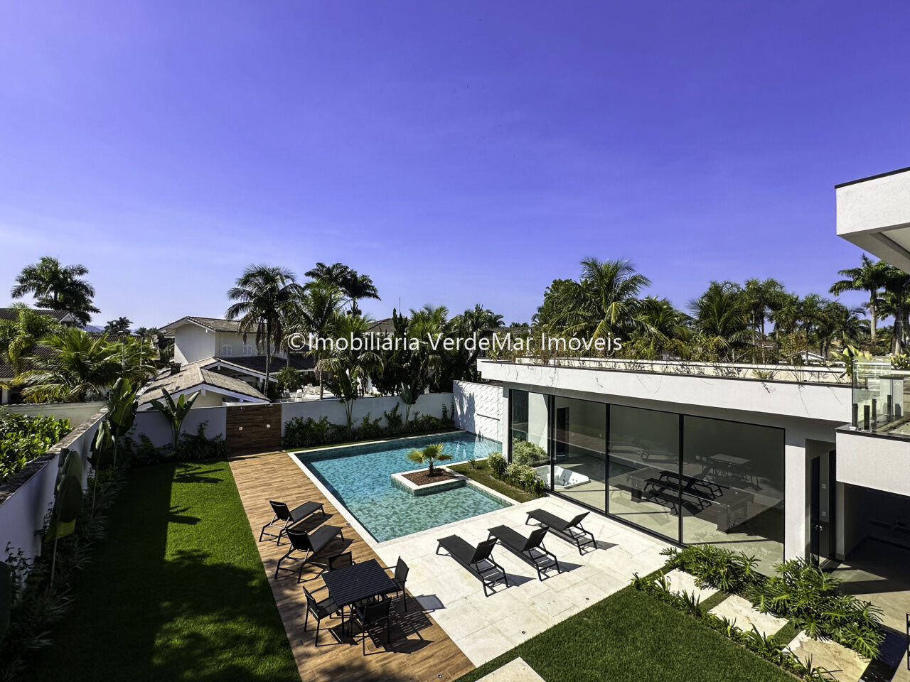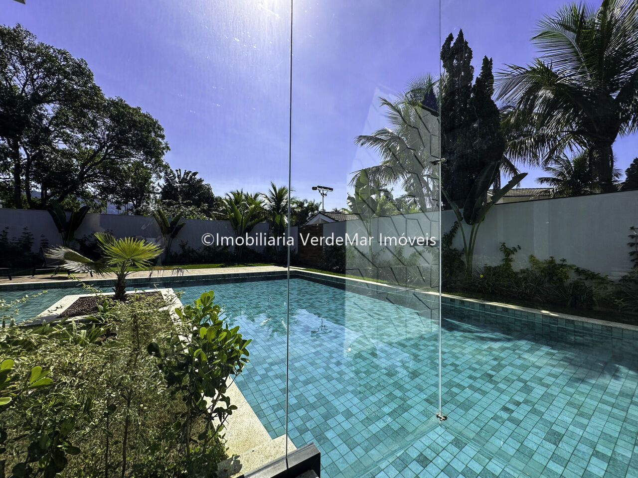Casa nova à venda no Jardim Acapulco na praia do Pernambuco no Guarujá, mobiliada e decorada, com 06 suítes todas climatizadas (sendo 01 máster com closet e hidromassagem), amplo living com sala de estar e sala de jantar, home theater, elevador, cozinha planejada, despensa, lavabo e suíte de empregada.
