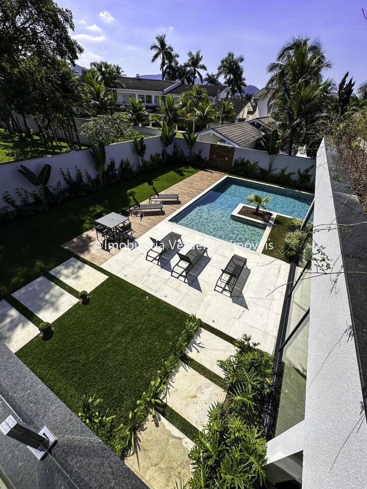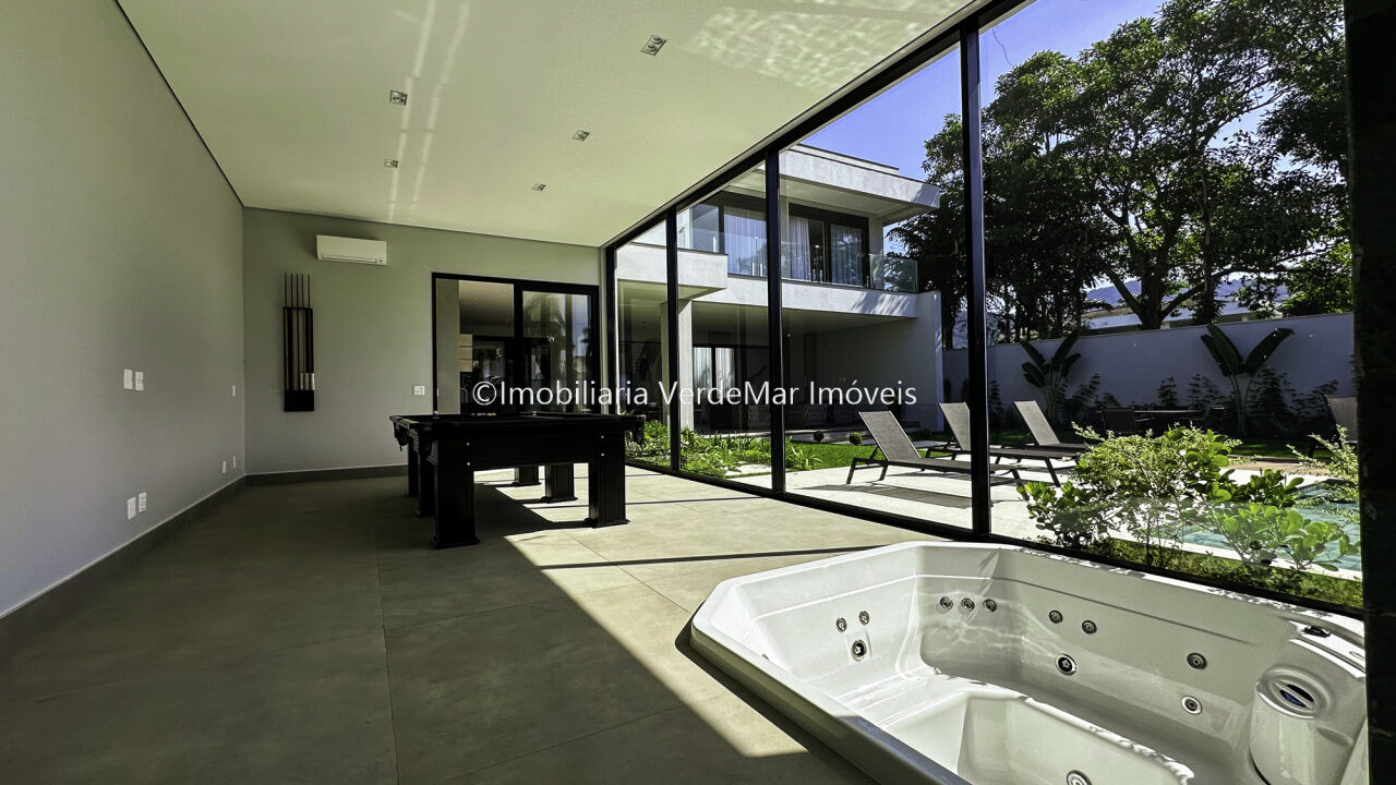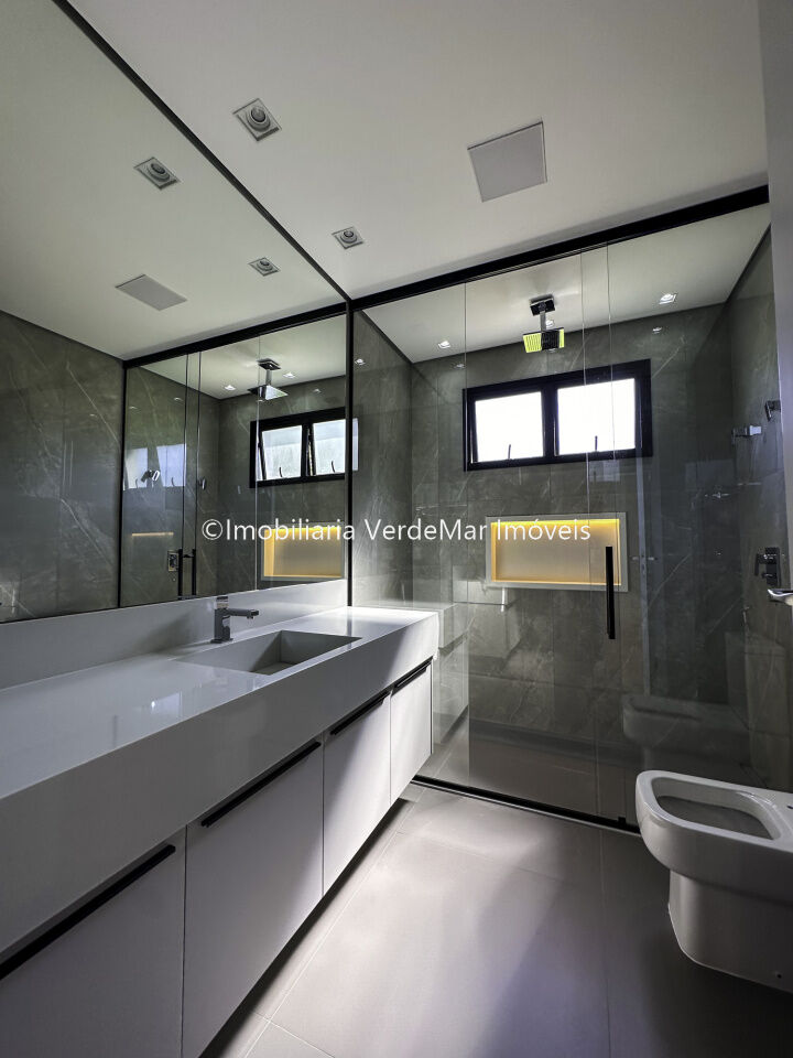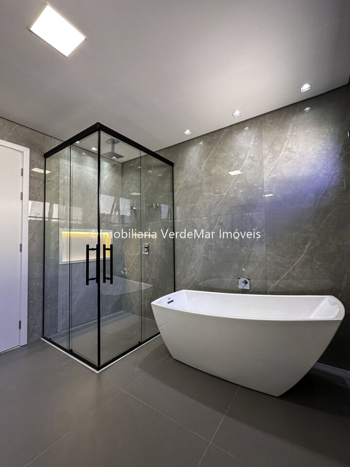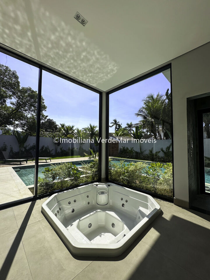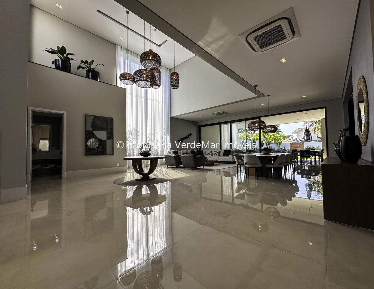 Casa nova à venda no Jardim Acapulco na praia do Pernambuco no Guarujá, mobiliada e decorada, com 06 suítes todas climatizadas (sendo 01 máster com closet e hidromassagem), amplo living com sala de estar e sala de jantar, home theater, elevador, cozinha planejada, despensa, lavabo e suíte de empregada.