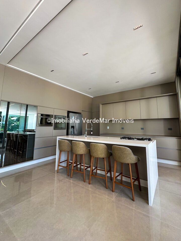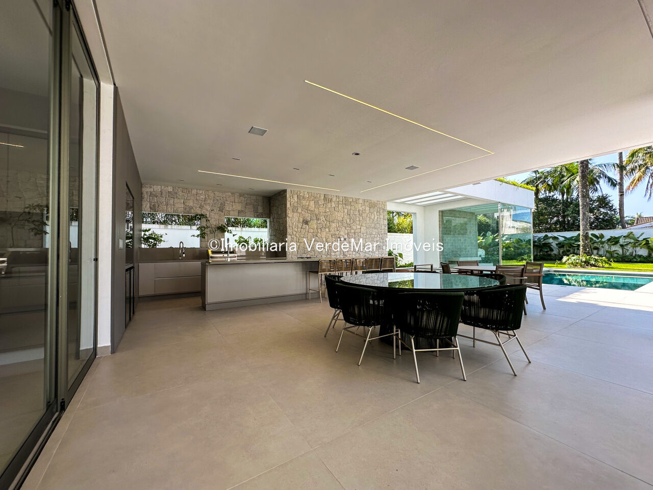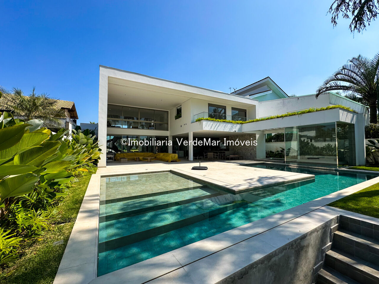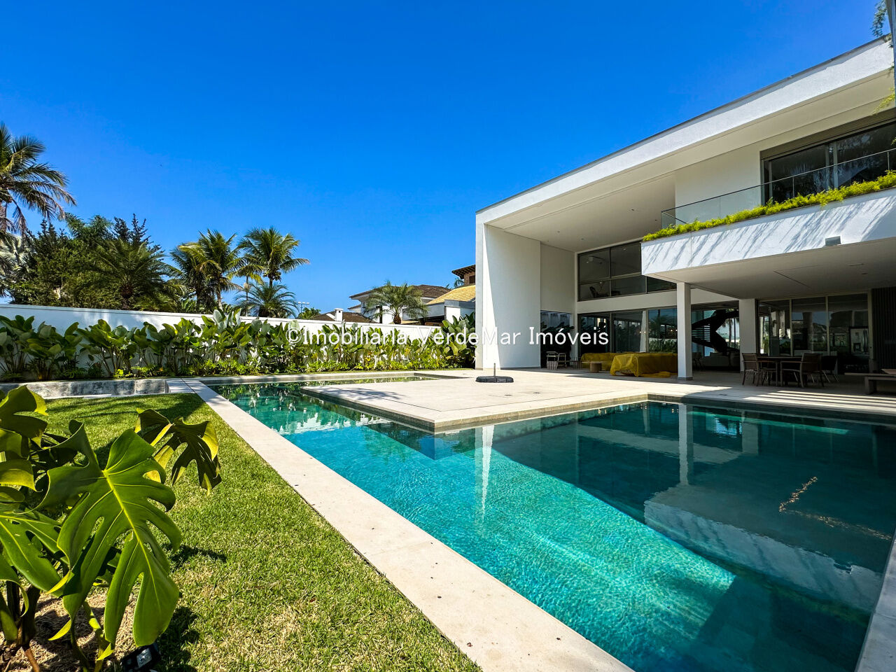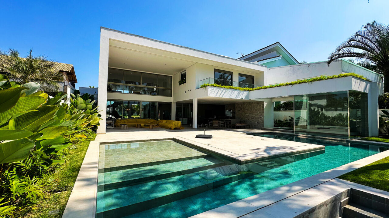 Essa residência exclusiva conta com uma decoração moderna e elegante, amplos espaços internos, sala de estar integrada à área gourmet, piscina privativa e jardim exuberante.