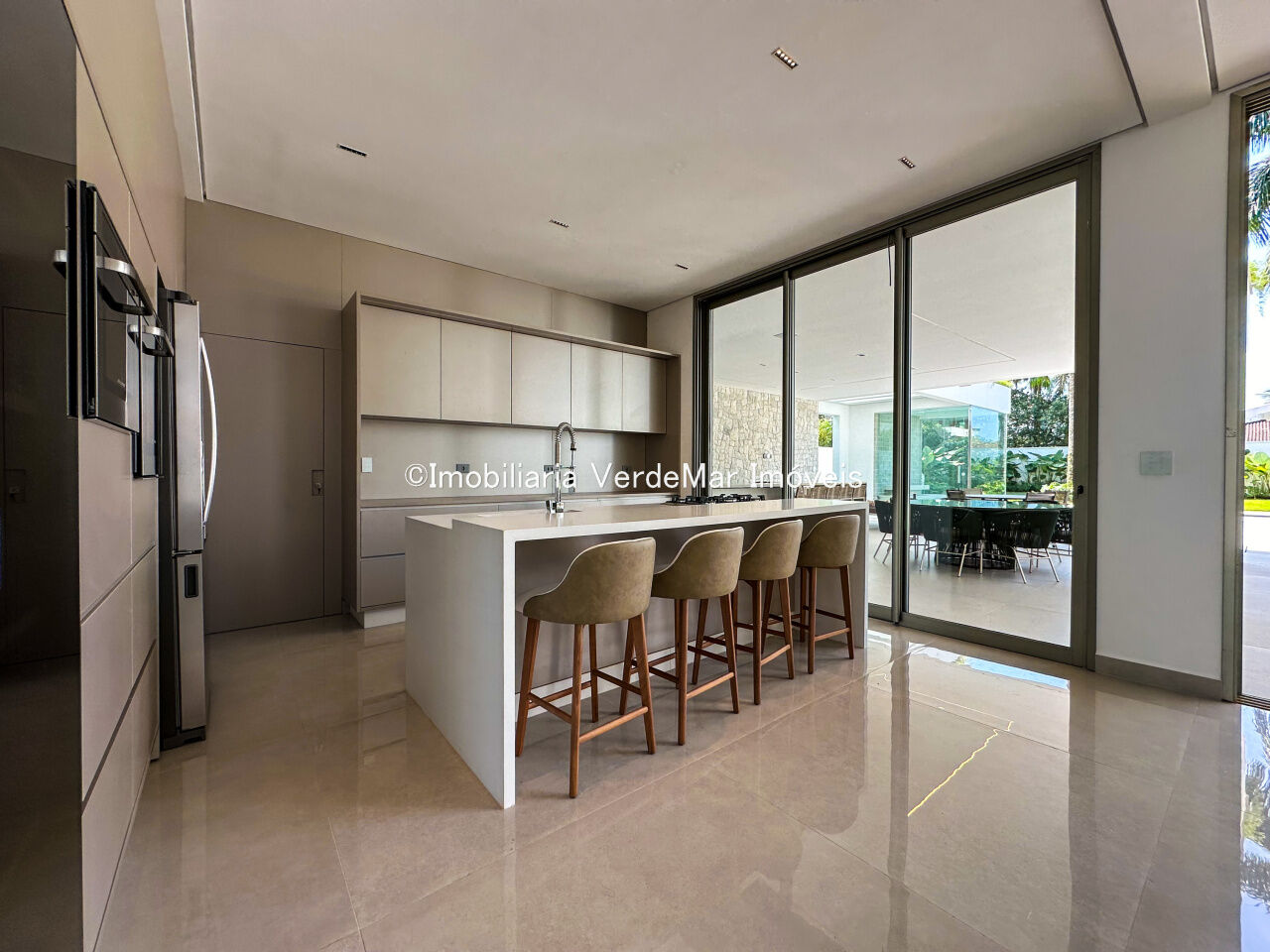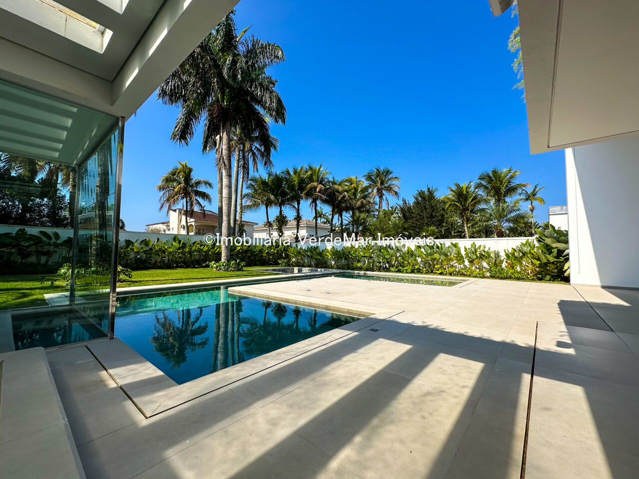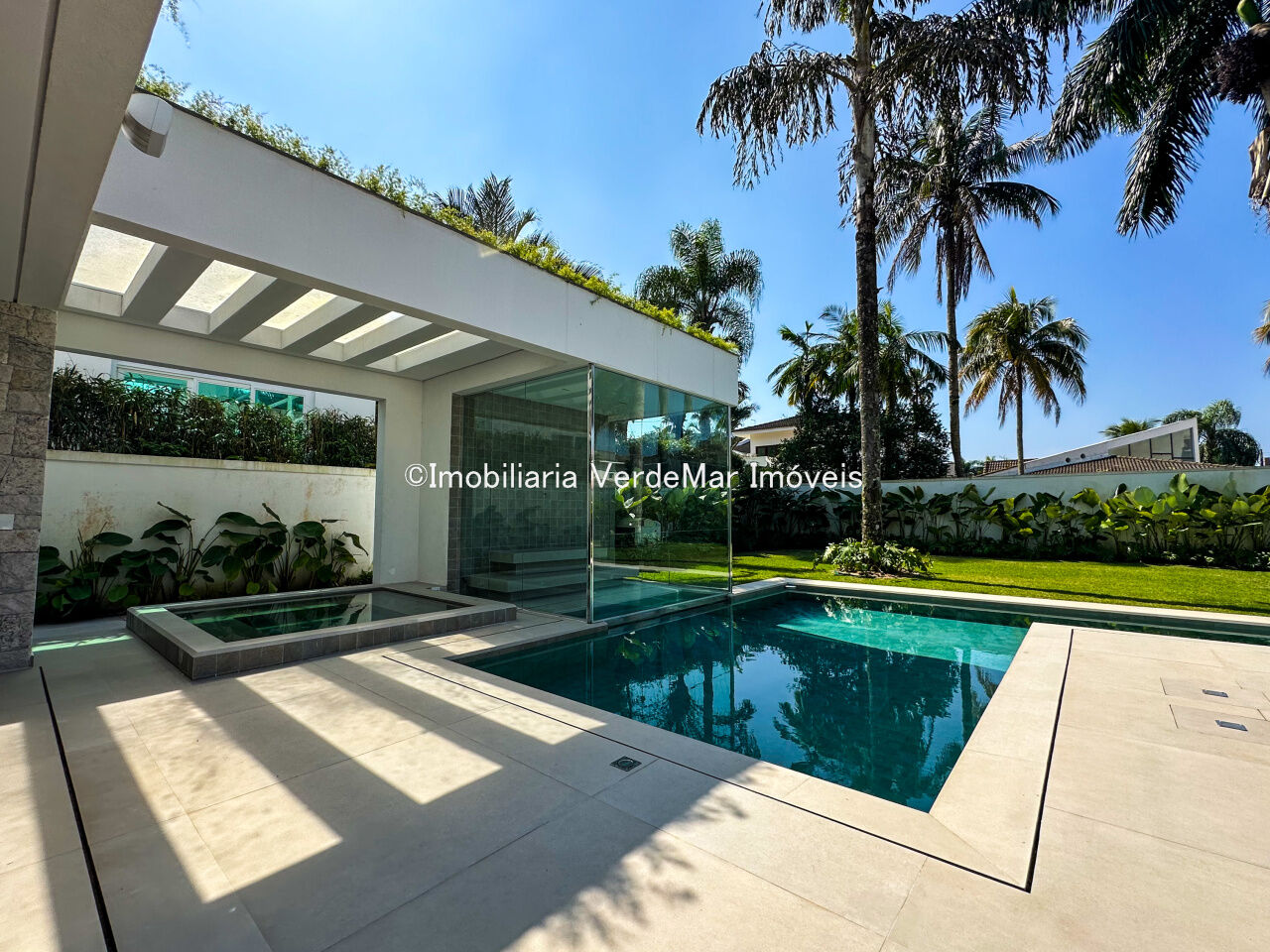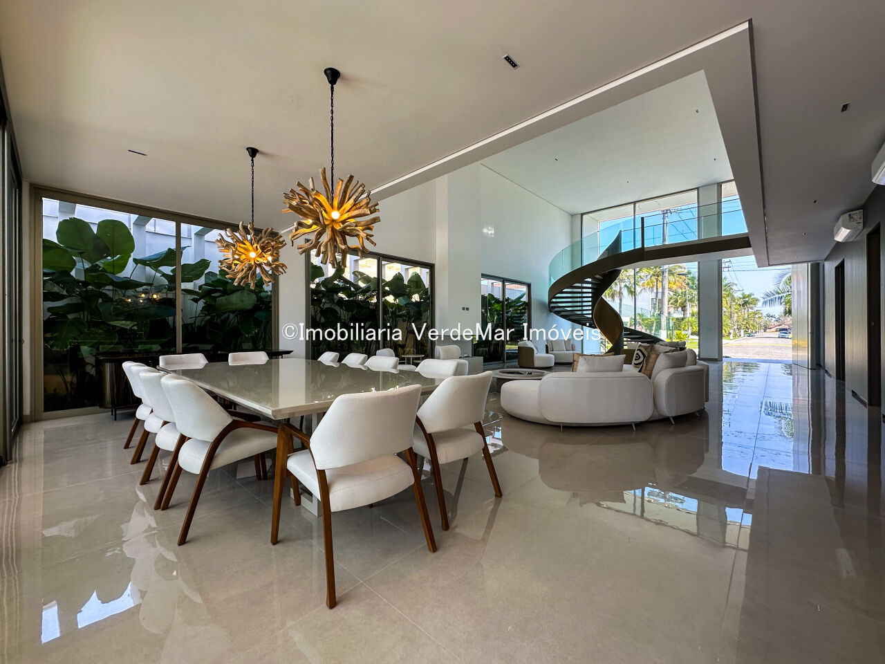 Essa residência exclusiva conta com uma decoração moderna e elegante, amplos espaços internos, sala de estar integrada à área gourmet, piscina privativa e jardim exuberante.