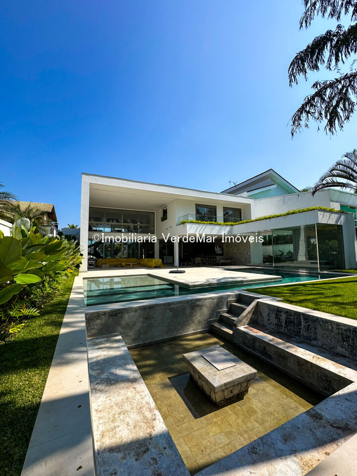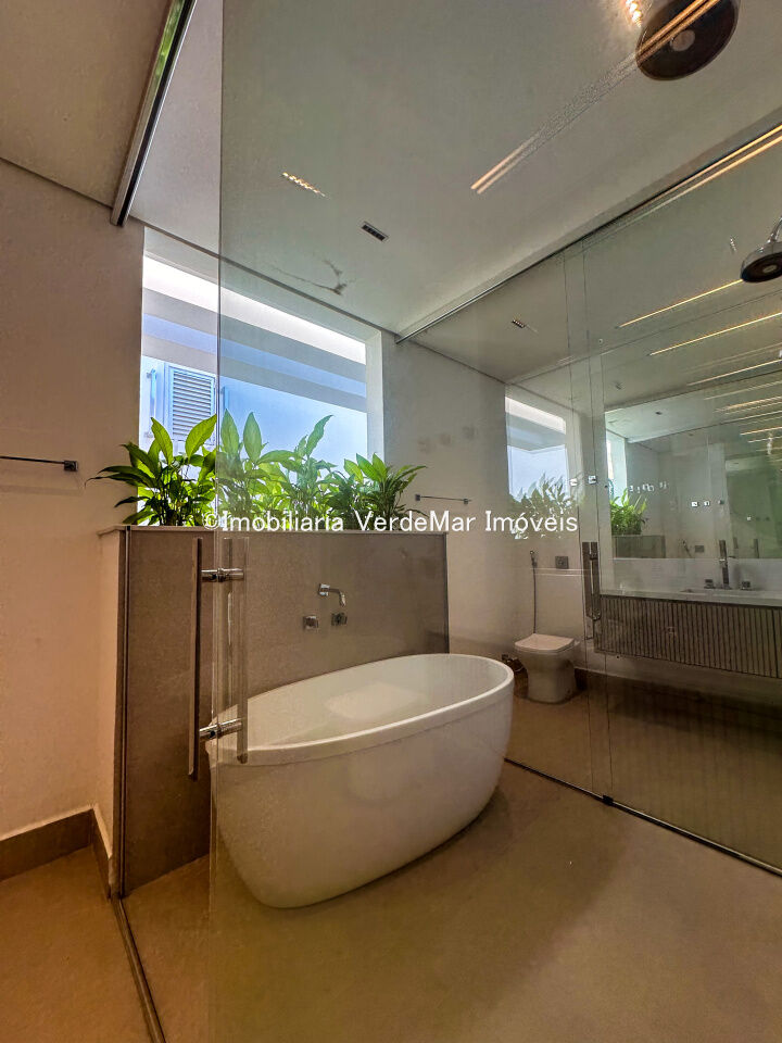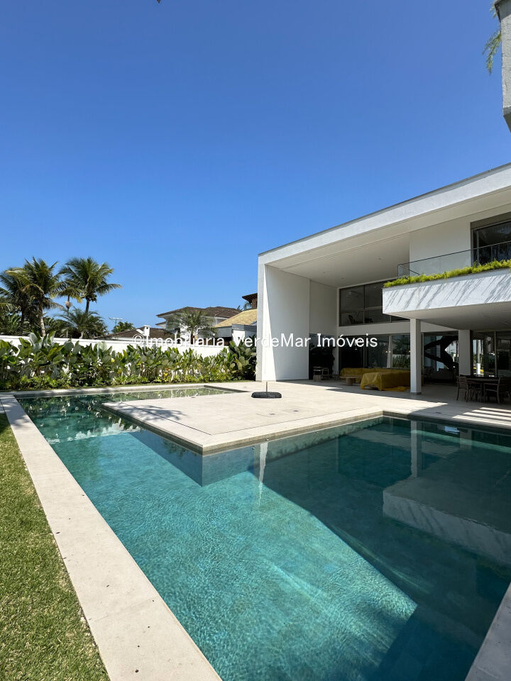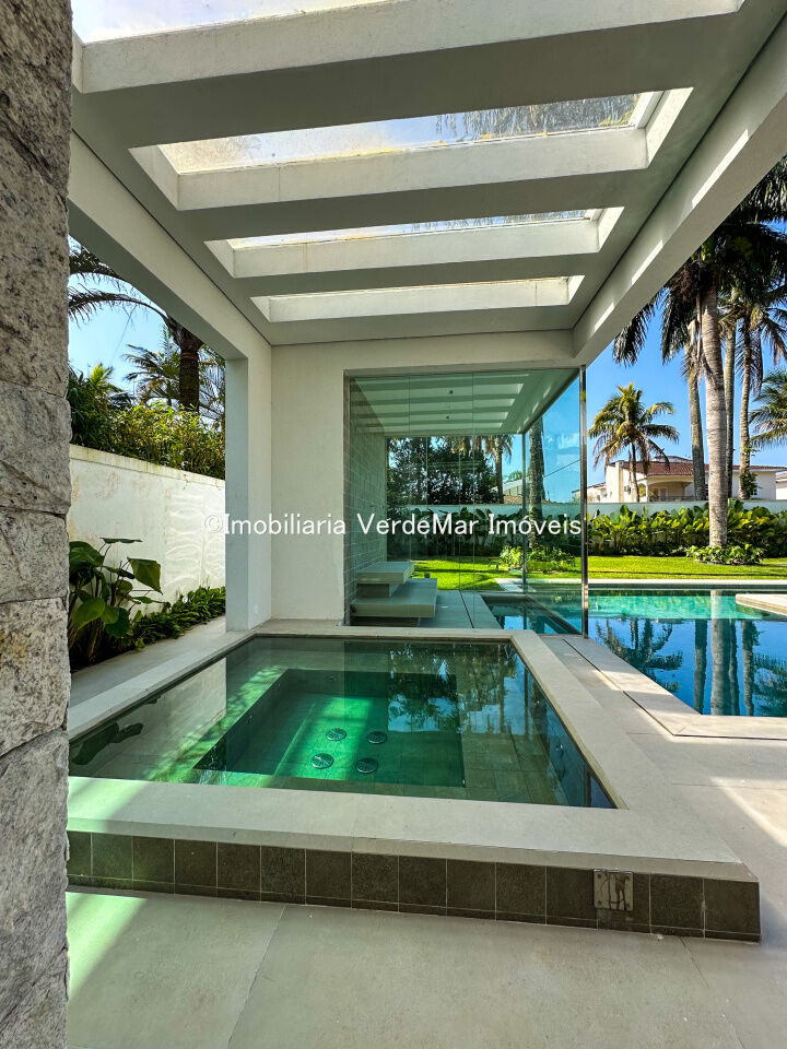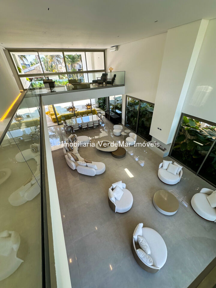 Casa nova frente praça à venda no Jardim Acapulco na praia do Pernambuco no Guarujá, mobiliada, com 07 suítes todas climatizadas (sendo 01 máster), amplo living com sala de estar e sala de jantar, home theater, lareira, cozinha planejada, despensa, lavabo acesso de serviços independente e suíte de empregada.