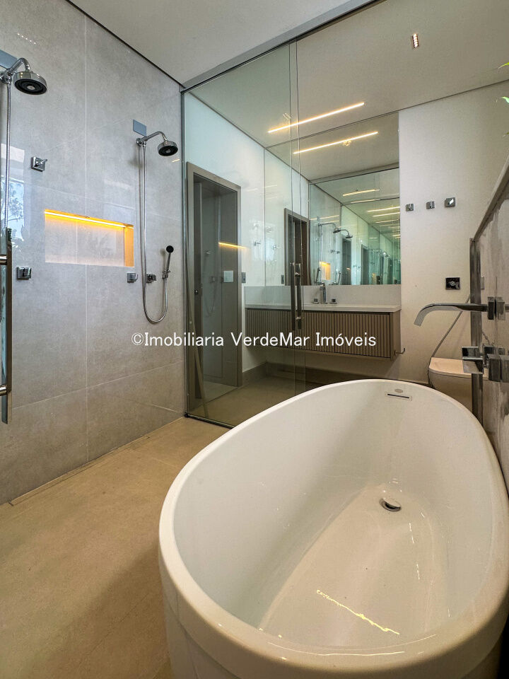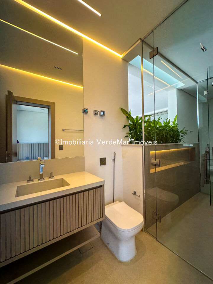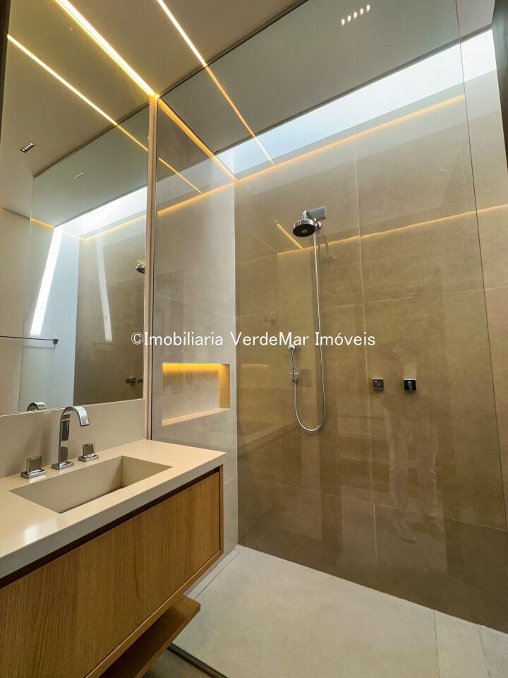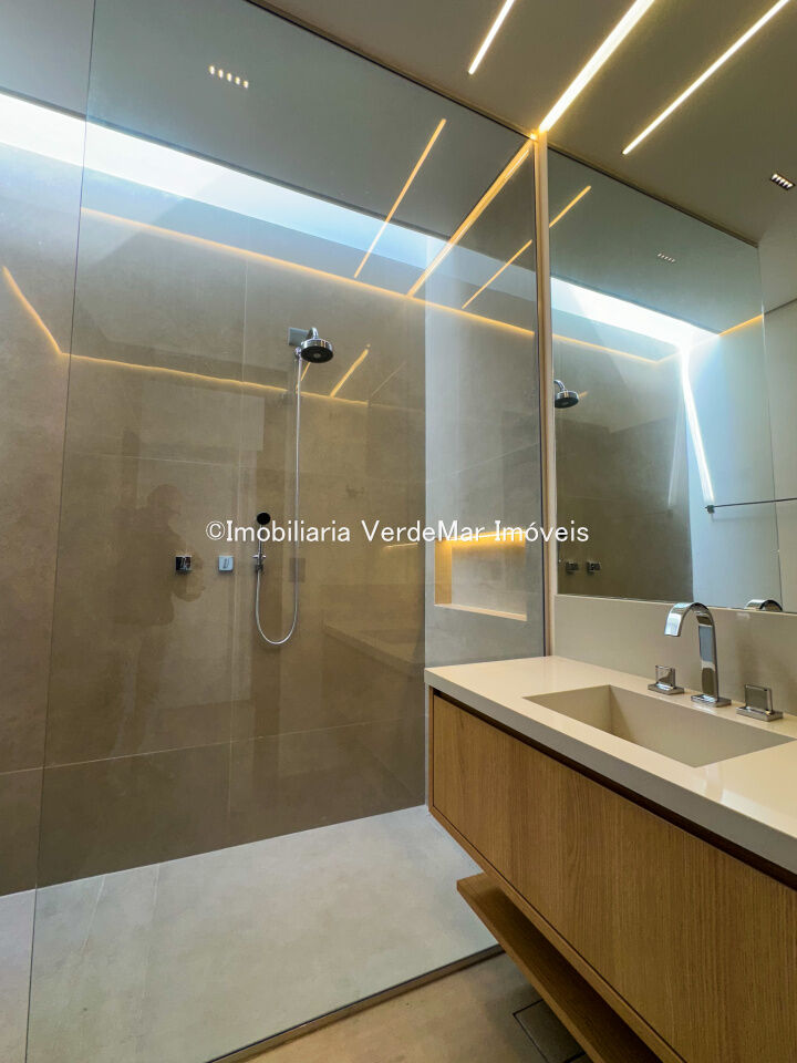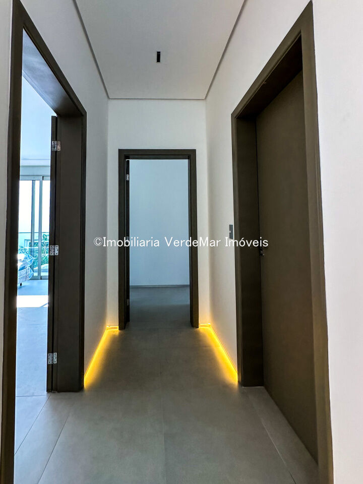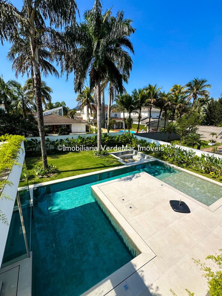 Casa nova frente praça à venda no Jardim Acapulco na praia do Pernambuco no Guarujá, mobiliada, com 07 suítes todas climatizadas (sendo 01 máster), amplo living com sala de estar e sala de jantar, home theater, lareira, cozinha planejada, despensa, lavabo acesso de serviços independente e suíte de empregada.