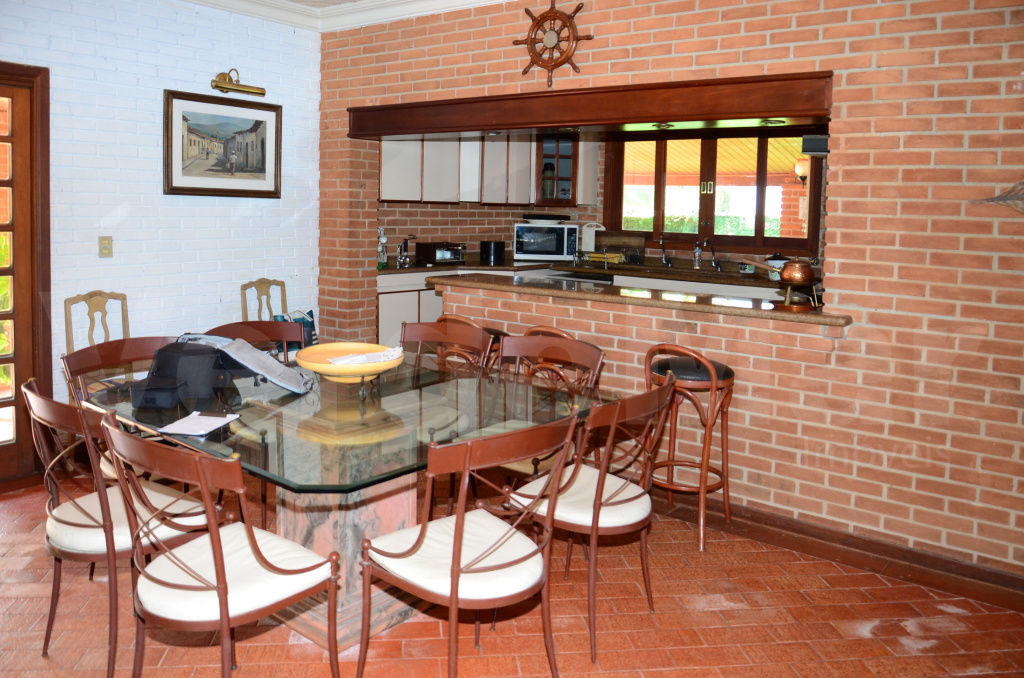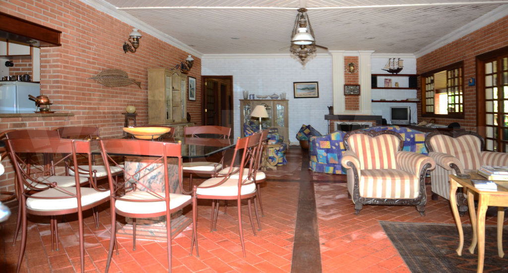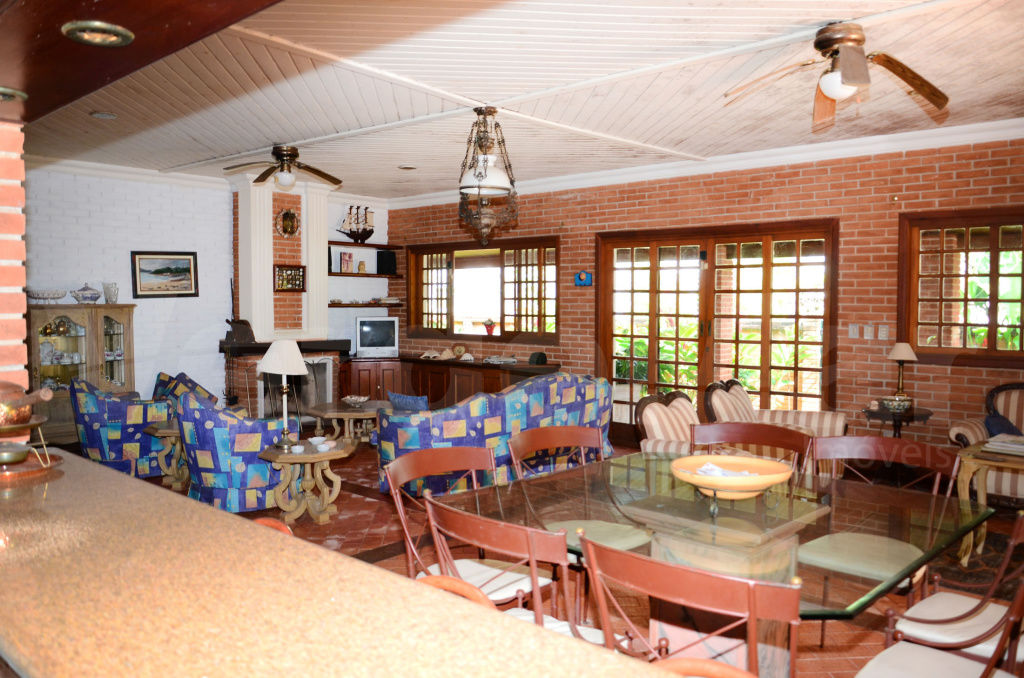 Casa térrea no Jardim Acapulco na Praia de Pernambuco em Guarujá, com 05 suítes, sala para 02 ambientes com lareira e varanda mobiliável, sala de jantar, cozinha, despensa, área de serviço e dependência de empregada.