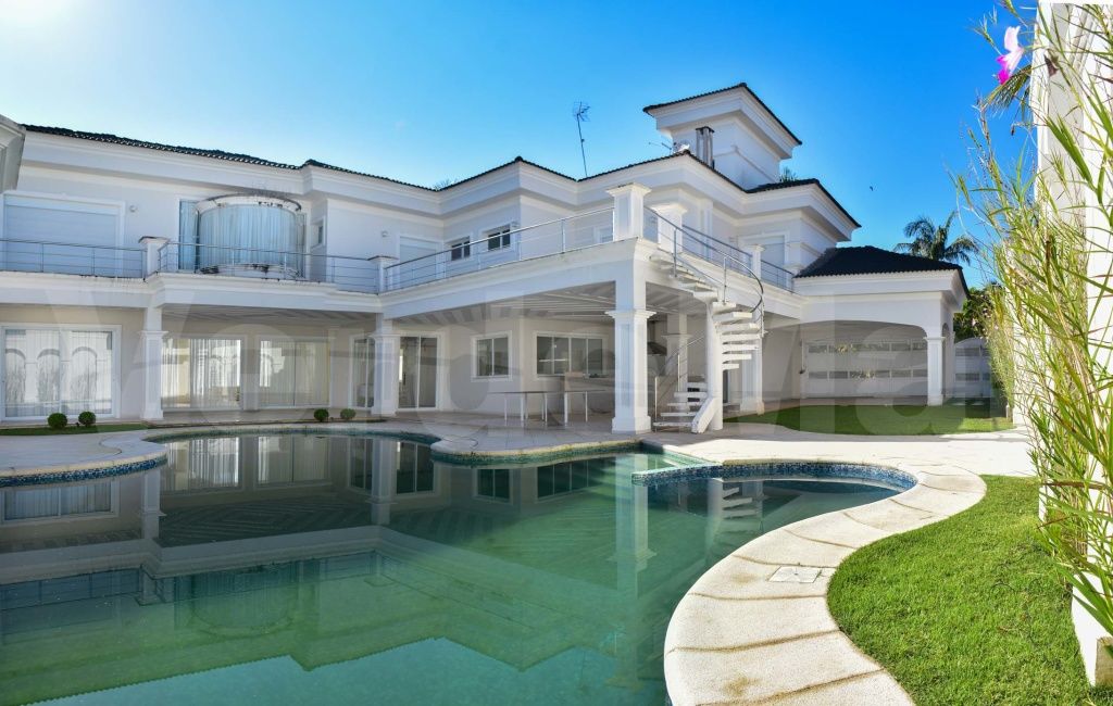 Residência À VENDA no Jardim Acapulco na praia de Pernambuco em Guarujá, com 06 suítes sendo 02 com closet e hidromassagem, janelas automatizadas, sala para 3 ambientes com varanda, home theater, lareira, lavabo, copa/cozinha, área de serviço e casa de caseiro.