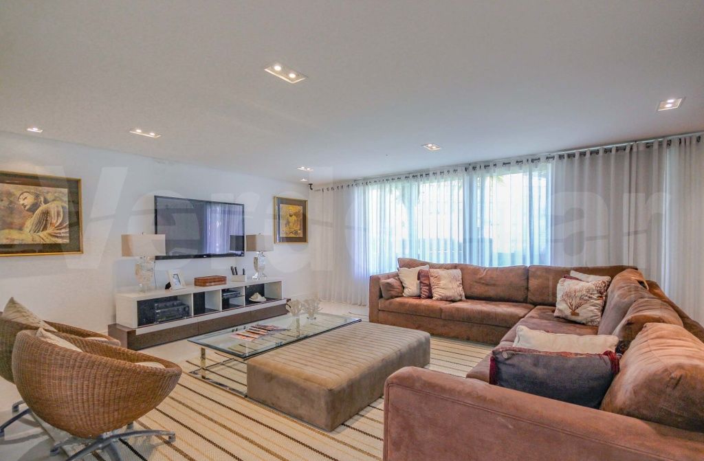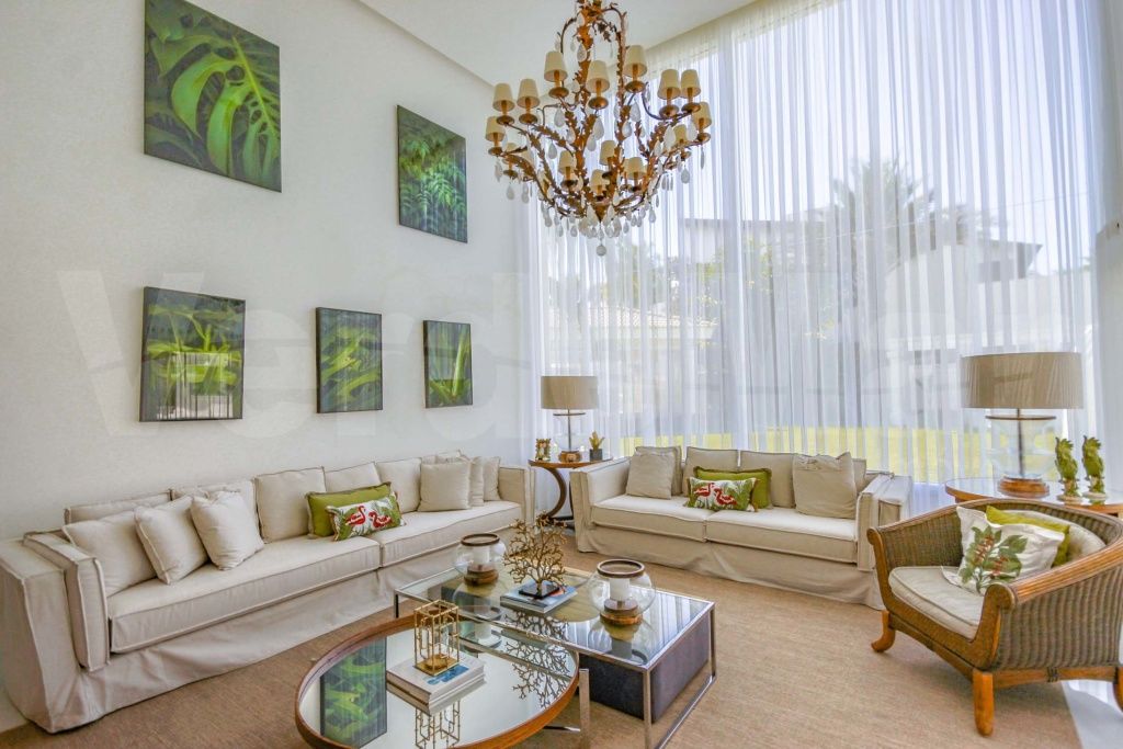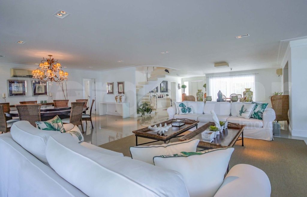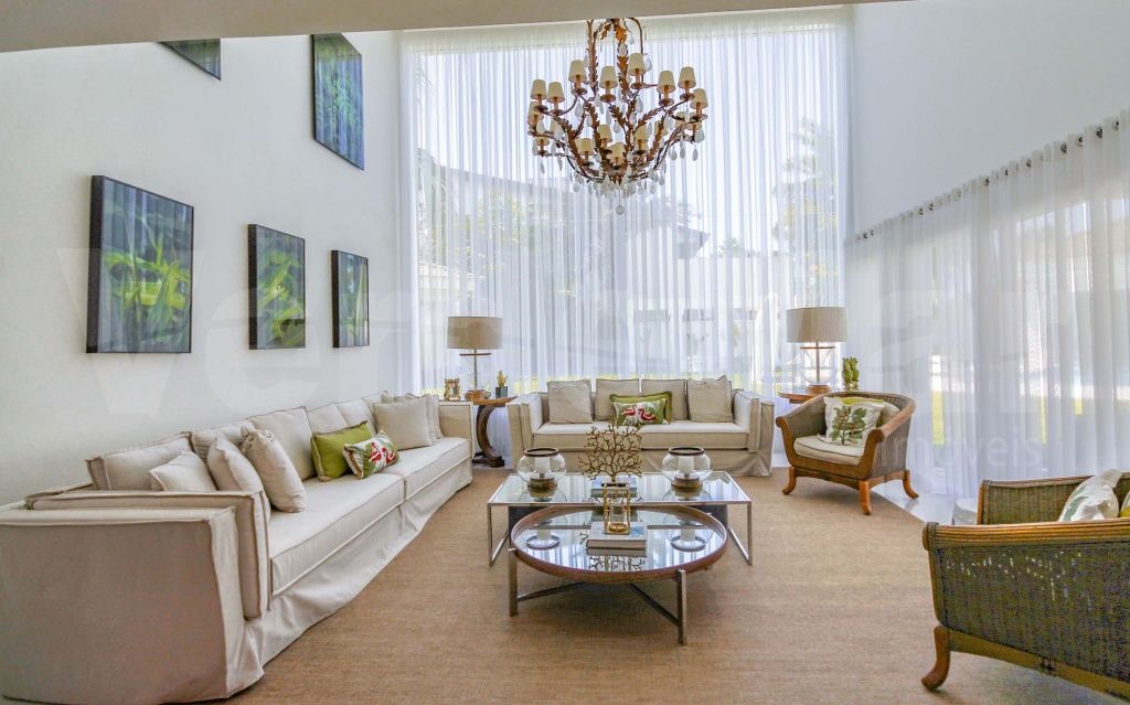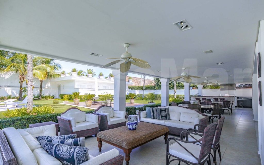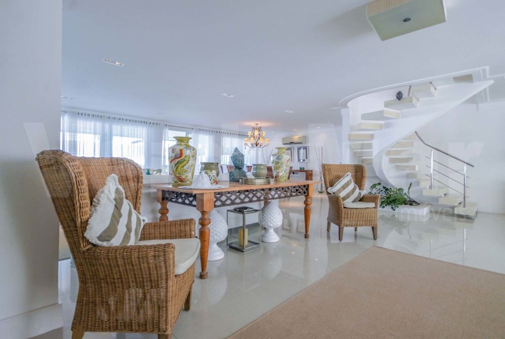 Casa à venda no Jardim Acapulco na praia do Pernambuco em Guarujá, mobiliada e decorada, com 06 suítes climatizadas, todas com armários embutidos, sendo 1 máster com hidromassagem e closet, sala 3 ambientes com terraço mobiliável, home theater, lavabo, copa, cozinha planejada, despensa, lavanderia e dependência de empregada.