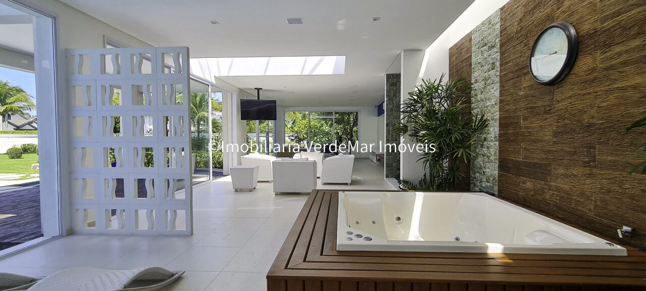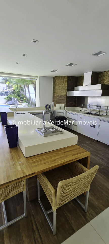 Casa no Jardim Acapulco na Praia de Pernambuco no Guarujá, finamente decorada, com 7 suítes todas climatizadas , sendo 6 delas com closet's e a máster com hidromassagem, sala para 06 ambientes com terraço mobiliável, lavabo, jardim interno com espelho d' água, home theater, sala íntima, sala de jantar, cozinha planejada, despensa, área de serviço e casa de caseiro planejada.