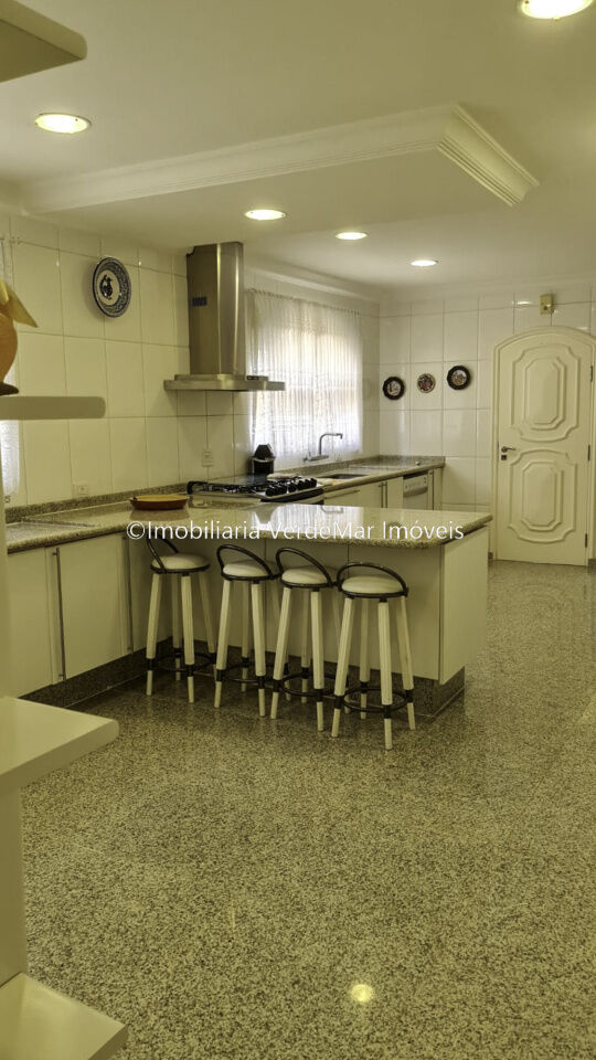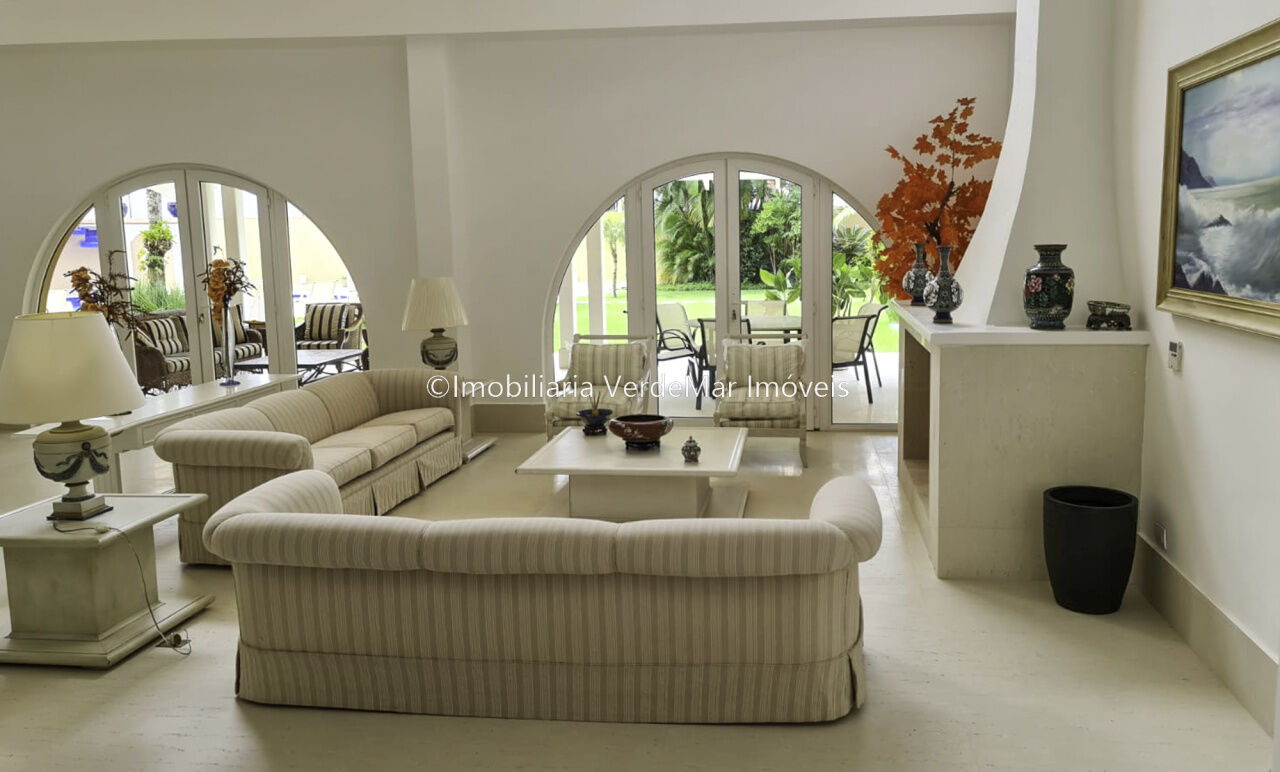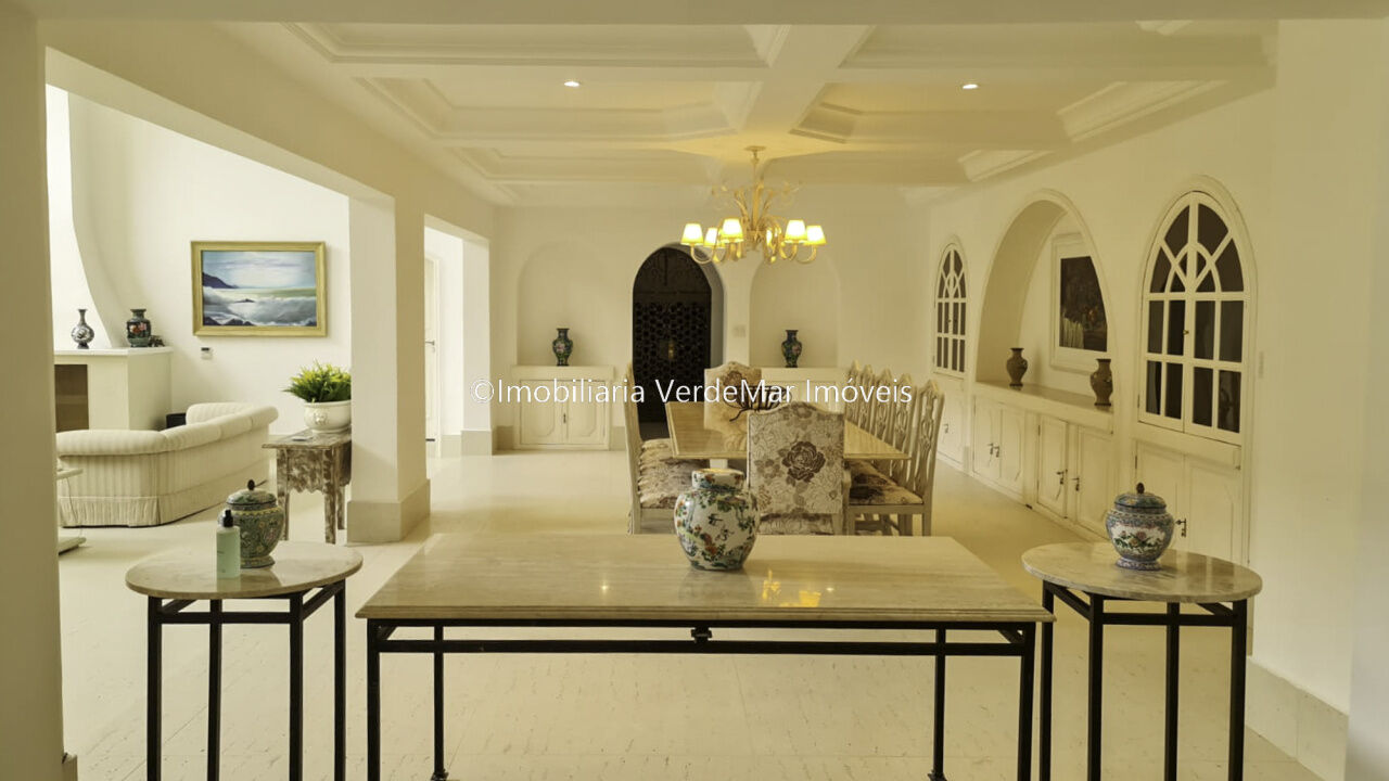 Casa no Jardim Acapulco na praia do Pernambuco no Guarujá com 07 suítes, sala 04 ambientes com varanda mobiliável, lareira, lavabo, copa, cozinha, despensa, área de serviços e casa de caseiro completa.