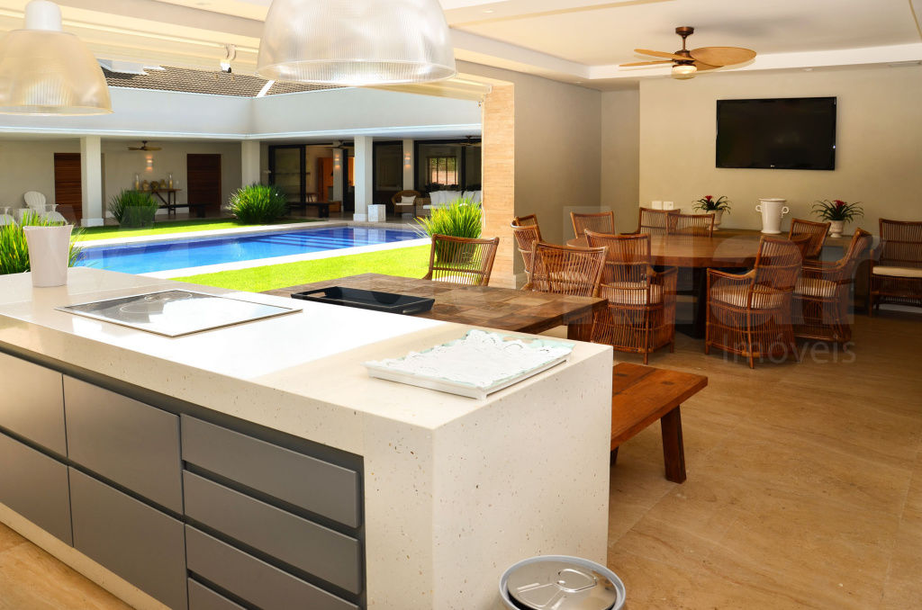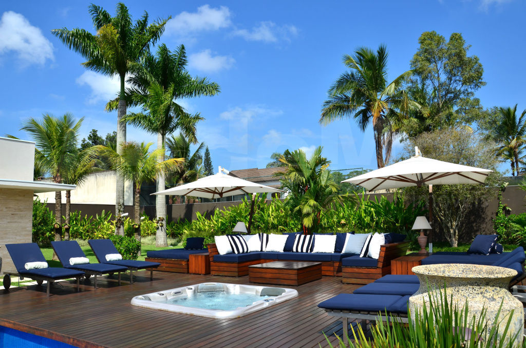 Casa no Jardim Acapulco na Praia de Pernambuco em Guarujá, mobiliada e decorada, com 8 suítes sendo 01 máster com closet e hidromassagem, sala para 3 ambientes com varanda, lavabo, home teather, copa, cozinha planejada, despensa, área de serviço e casa de caseiro.