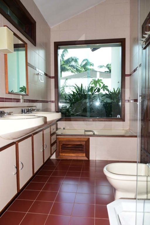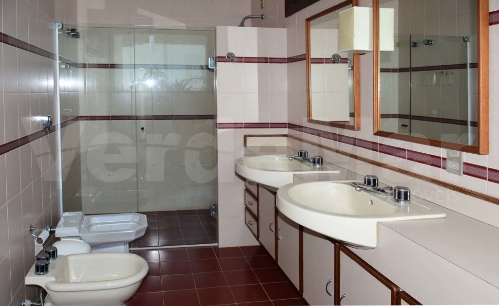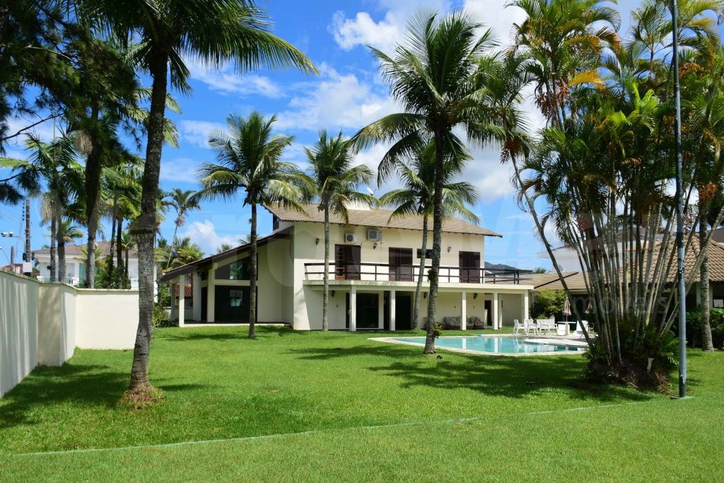 Casa no Jardim Acapulco na praia de Pernambuco em Guarujá, mobiliada, com 6 suítes climatizadas e com varanda, closet e hidromassagem, sala de tv, sala de estar com lareira, lavabo, sala de jantar, cozinha com armários, área de serviço, despensa e casa de caseiro.