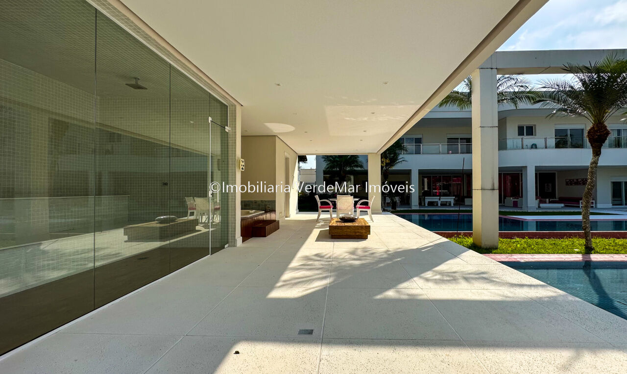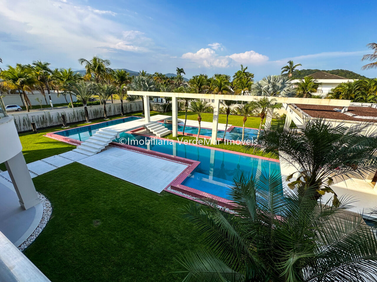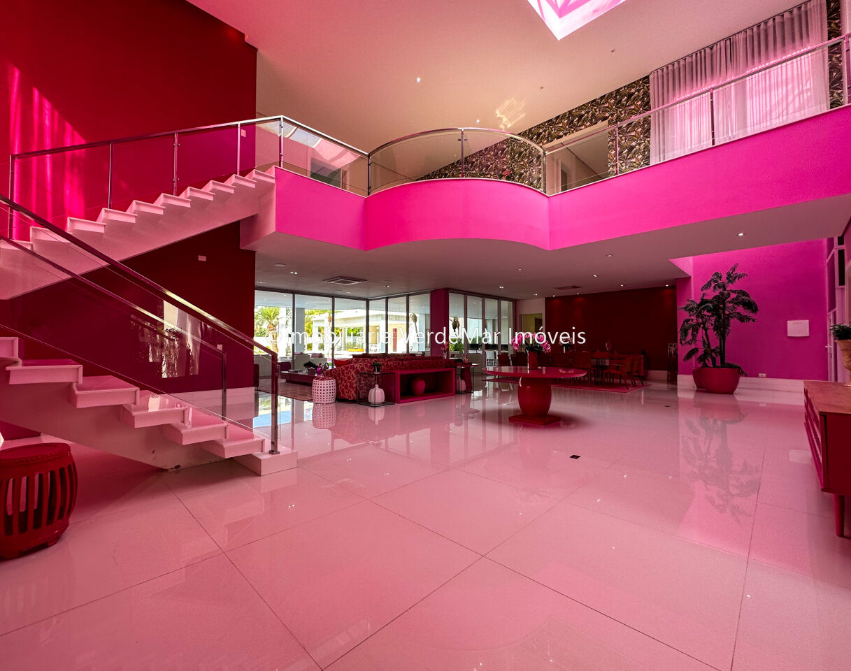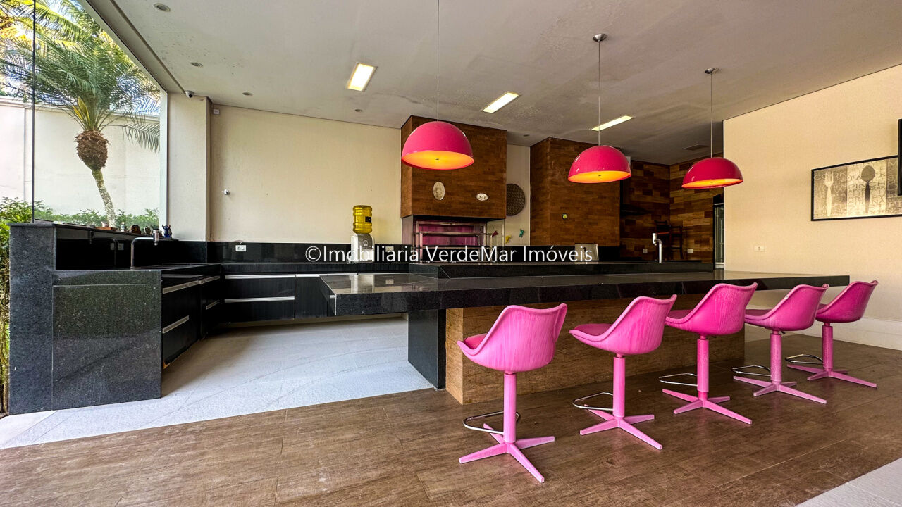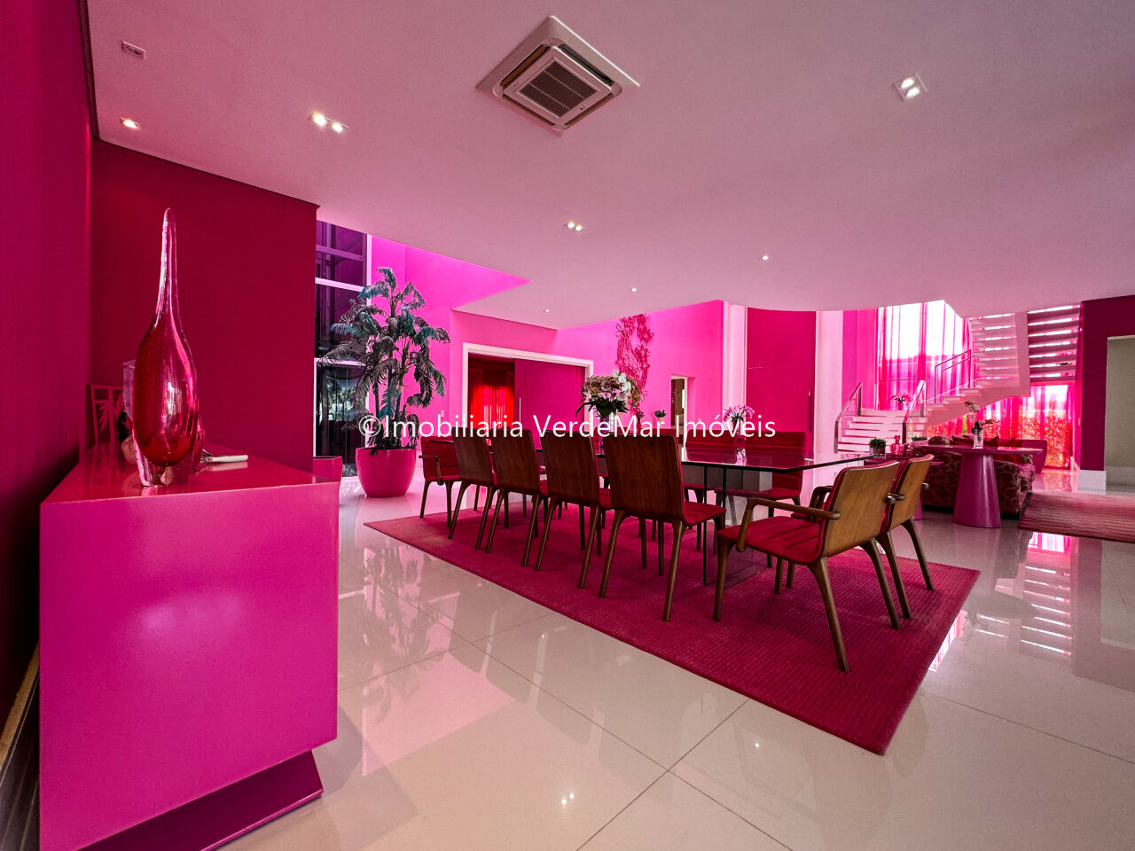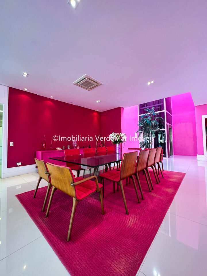 Mansão à venda no condomínio Jardim Acapulco na Praia de Pernambuco no Guarujá, 8 suítes sendo 1 master com closet e hidromassagem, sala 3 ambientes com varanda mobiliável, home theater, escritório, lavabo, copa, cozinha planejada, despensa, área de serviço e casa de caseiro completa.