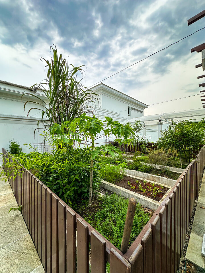 Lazer com amplo jardim e horta, piscina com hidromassagem, quadra de tênis e espaço gourmet com churrasqueira e forno de pizza.