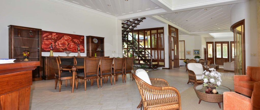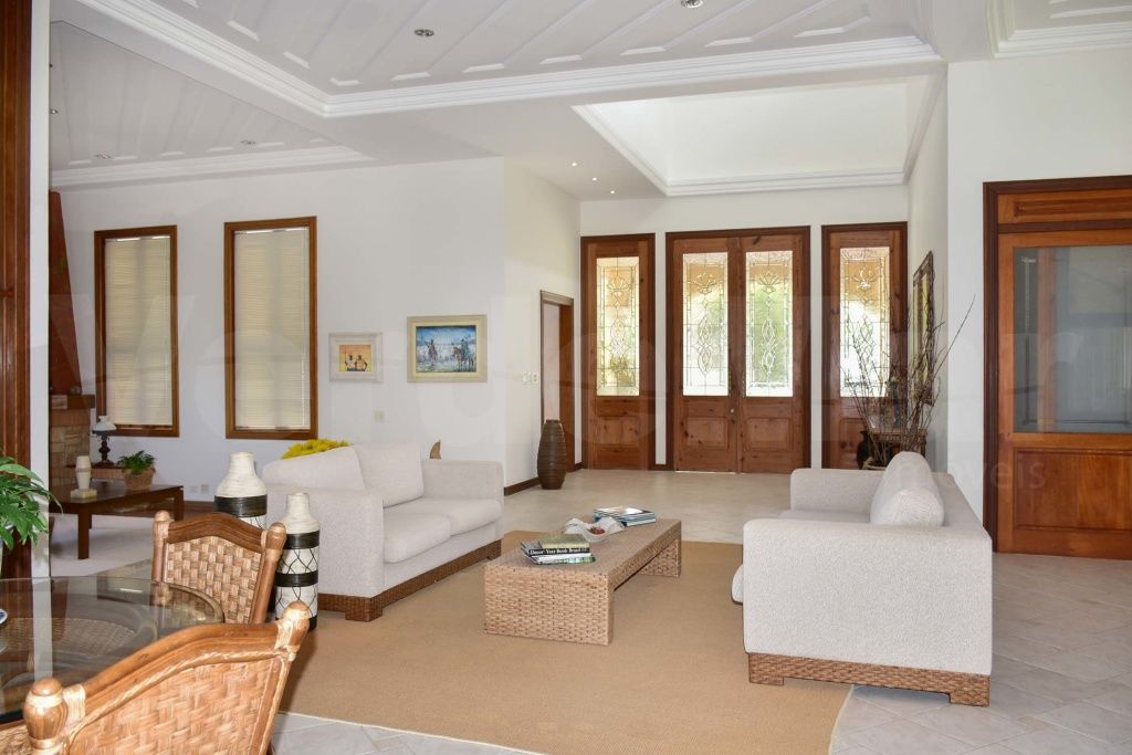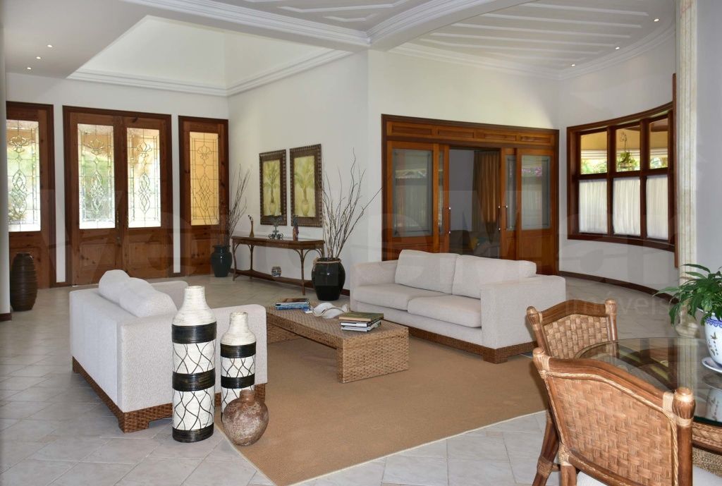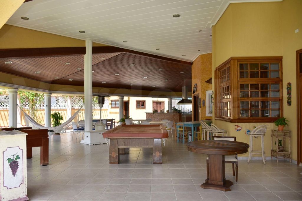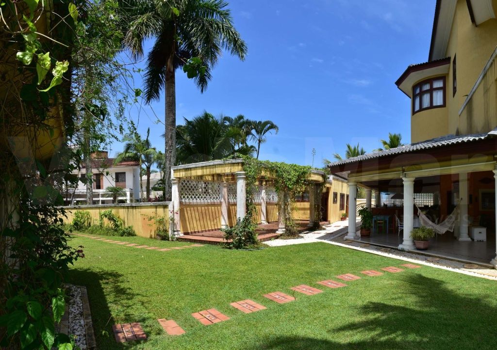Casa colonial no Jardim Acapulco na praia de Pernambuco em Guarujá. mobiliada, com 07 dormitórios sendo 5 suítes, hidromassagem, living para 4 ambientes com lavabo, sala de leitura com lareira, varanda mobiliável, copa-cozinha planejada, despensa e casa caseiro completa.