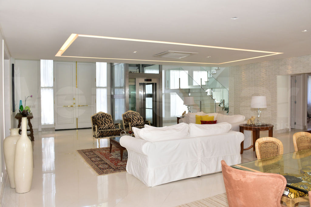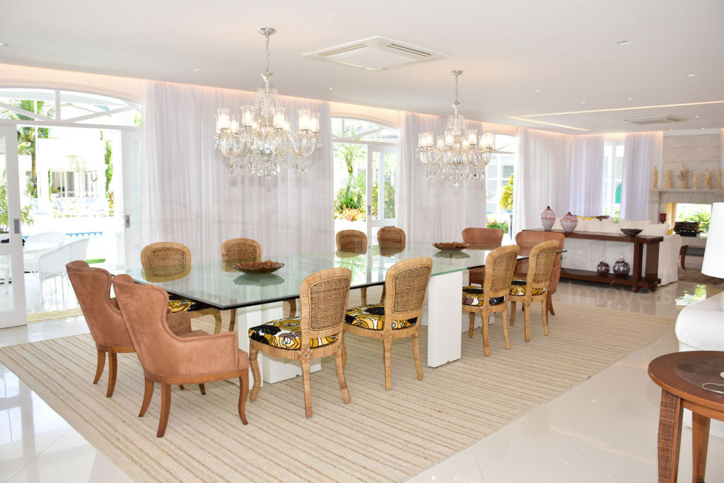Magnifica mansão no Jardim Acapulco na praia de Pernambuco no Guarujá, mobiliada e decorada, com 8 suítes sendo 2 master's com closet e hidromassagem, sala para 3 ambientes com varanda mobiliável, elevador, lareira, home theater, lavabo, elevador, copa, cozinha planejada, despensa, área de serviço, dependência de empregada e casa de caseiro.