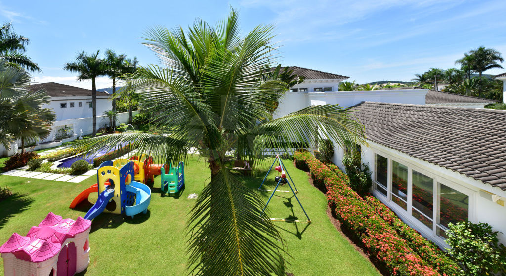 Lazer com amplo jardim, cinema, academia, salão de jogos, mini quadra, piscina adulto e infantil, piscina aquecida, sauna, espaço gourmet com churrasqueira e forno de pizza, playground, chafariz, campo de futebol, quadra de Squash e pista de boliche.