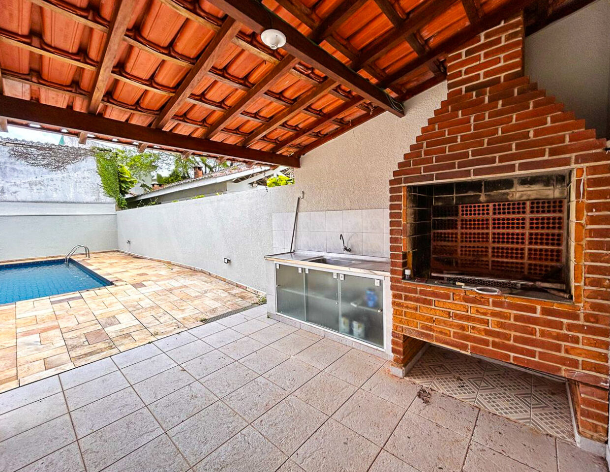 Lazer com piscina e quiosque com churrasqueira