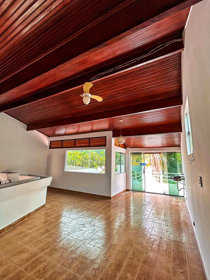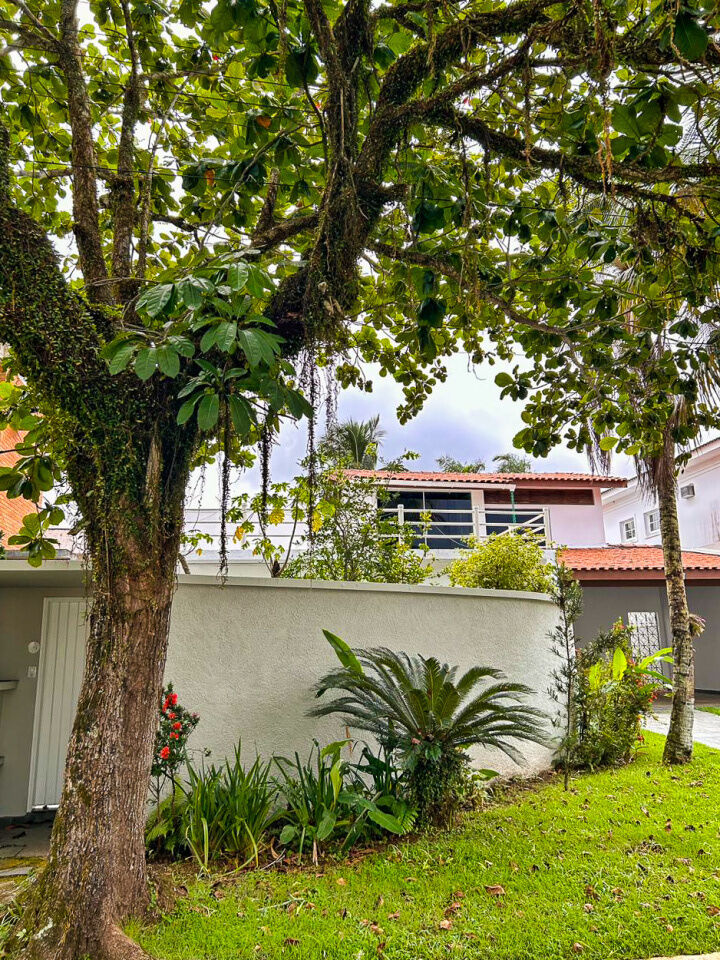 Sobrado à venda no Jardim Acapulco na praia de Pernambuco em Guarujá com 04 dormitórios sendo 02 suítes, sotão, sala para 02 ambientes com bar e varanda mobiliável, lavabo, cozinha, lavanderia e casa de caseiro com quarto sala e wc.