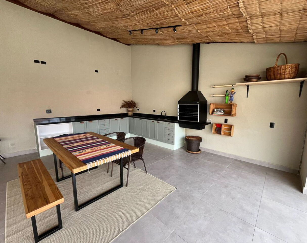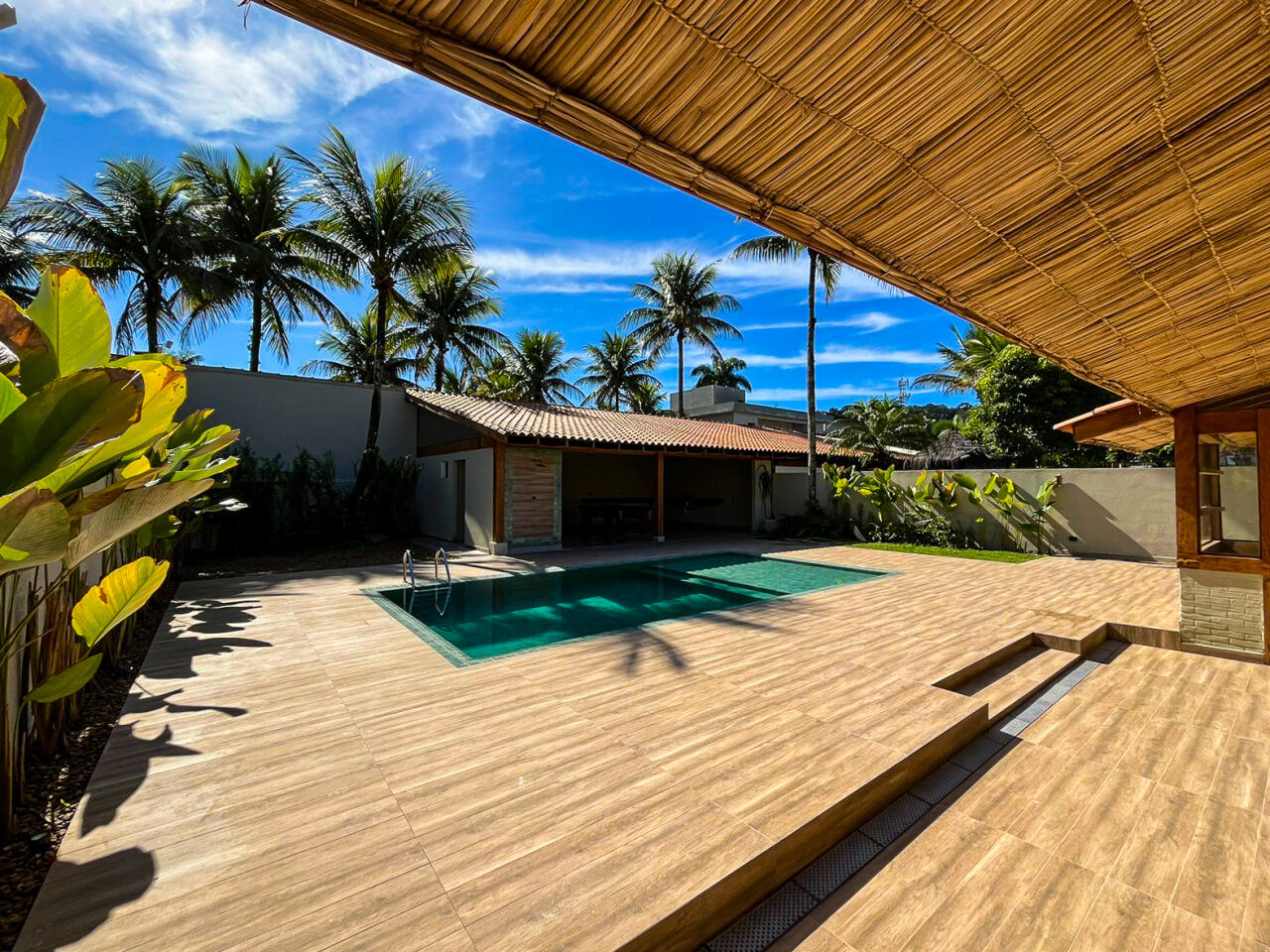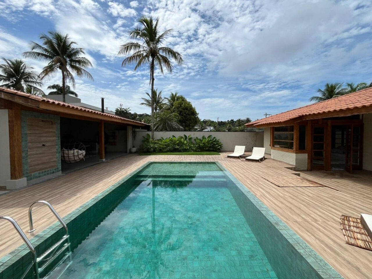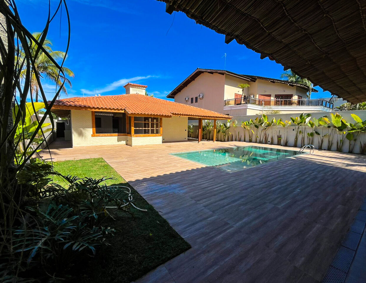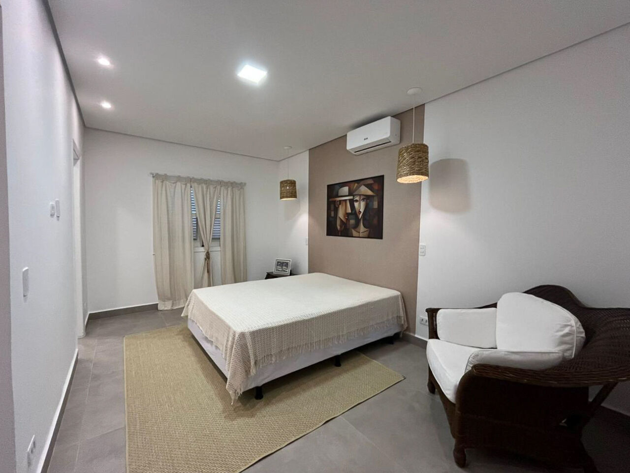 Casa térrea nova à venda no Jardim Acapulco na Praia de Pernambuco em Guarujá, com 04 suítes, sala para 2 ambientes com varanda, todos ambientes climatizados, lavabo, cozinha com armários planejados e área de serviços.