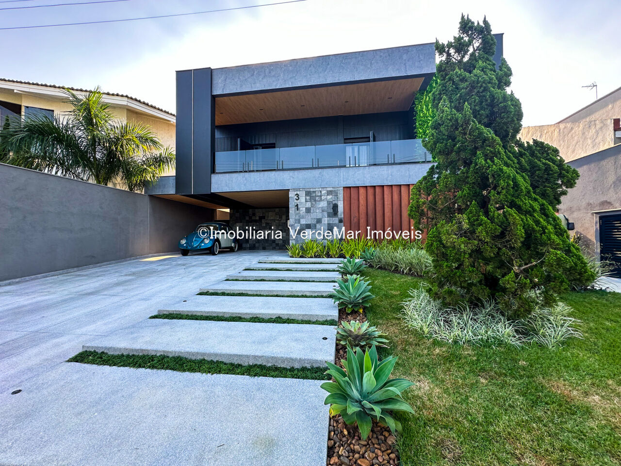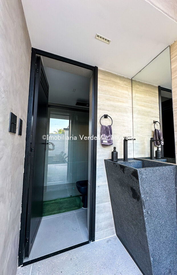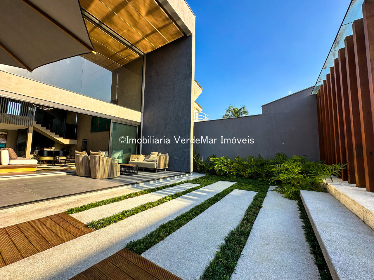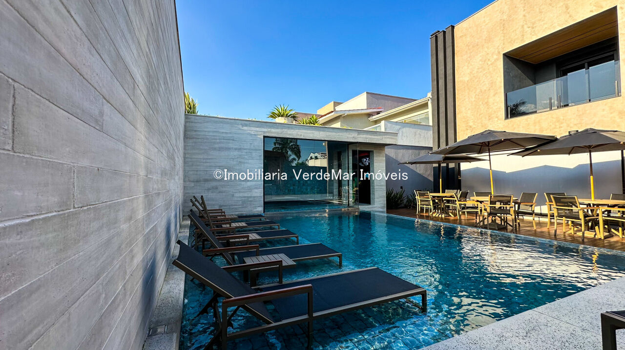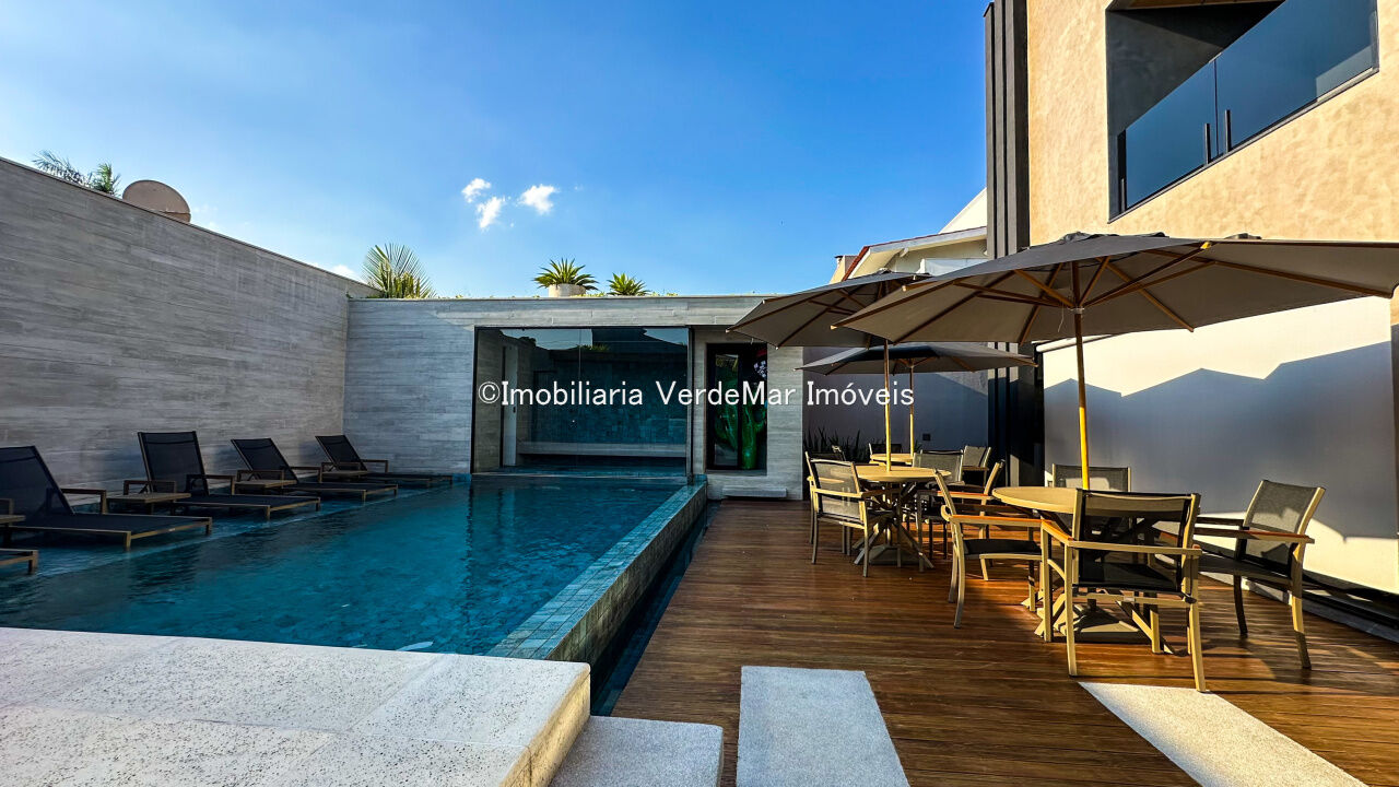 Casa NOVA frente praça à venda no Jardim Acapulco na Praia de Pernambuco em Guarujá, projeto moderno, mobiliado e decorado, com 05 dormitórios sendo 04 suítes, sala para 03 ambientes com varanda e pé direito alto, home theater, cozinha planejada integrada ao gourmet, despensa, área de serviço e dependência de empregada.