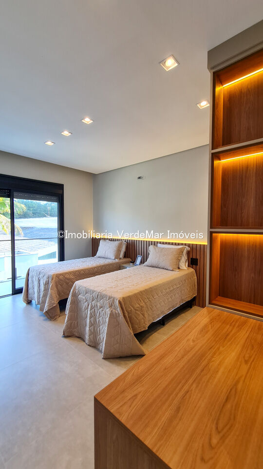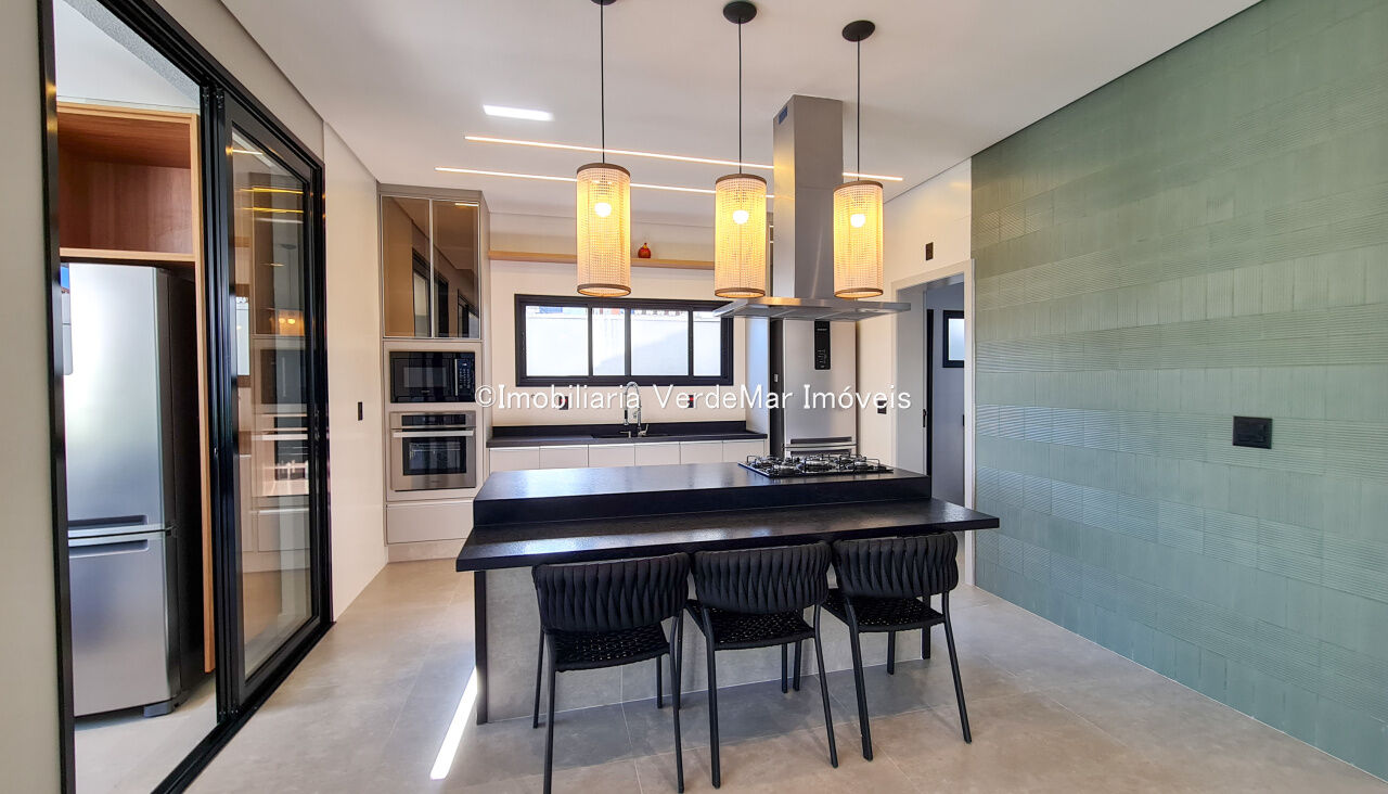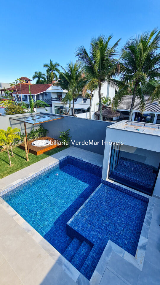 Casa nova frente praça à venda no Jardim Acapulco na praia de Pernambuco em Guarujá, com 06 suítes sendo 01 máster com closet, sala para 2 ambientes com varanda mobiliada, cozinha planejada e área de serviços.
