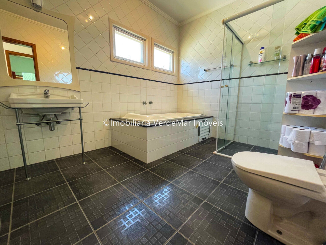 Casa frente praça no condomínio Jardim Acapulco na Praia de Pernambuco em Guarujá, com 4 suítes, sendo 1 master com closet e hidromassagem, sala para 2 ambientes com varanda mobiliável, Home Theater, lavabo, cozinha planejada, área de serviços e suíte de empregada.