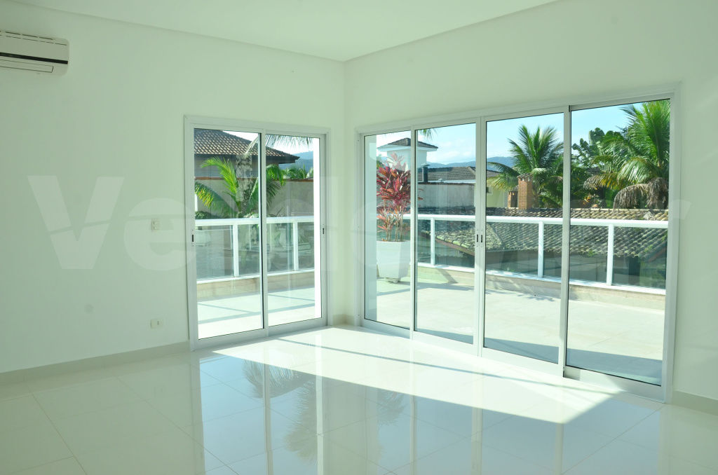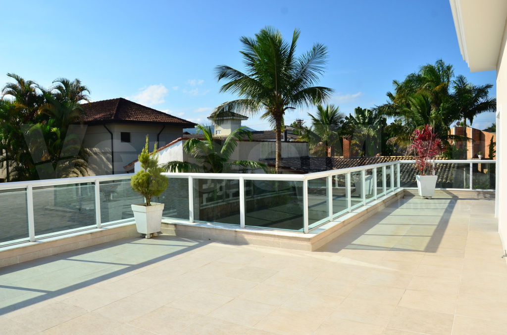 Casa nova no Jardim Acapulco na praia de Pernambuco em Guarujá , com 5 suítes sendo 1 máster com hidromassagem, espaço para home theater com amplo terraço, sala para 2 ambientes com lareira, lavabo, sala de jantar com varanda, cozinha planejada, área de serviço, despensa e dependência de empregada.