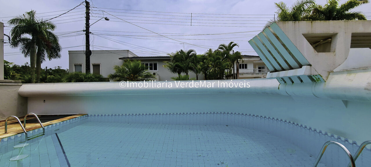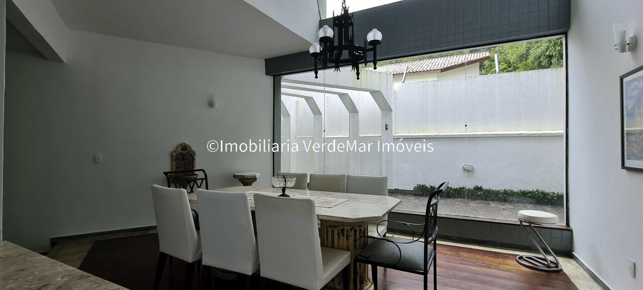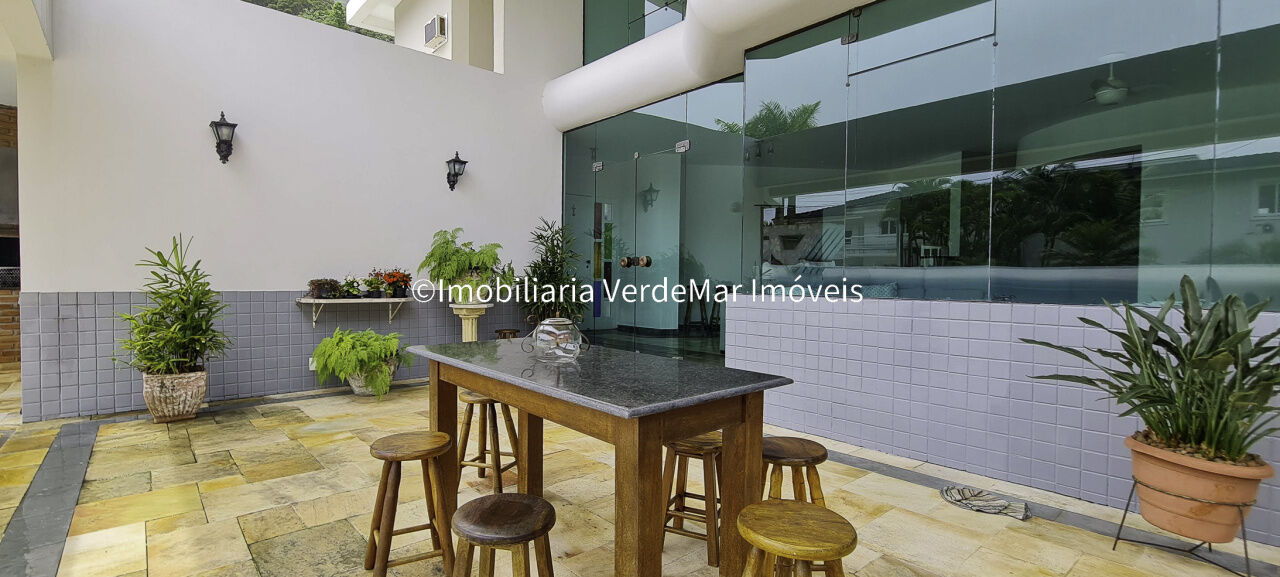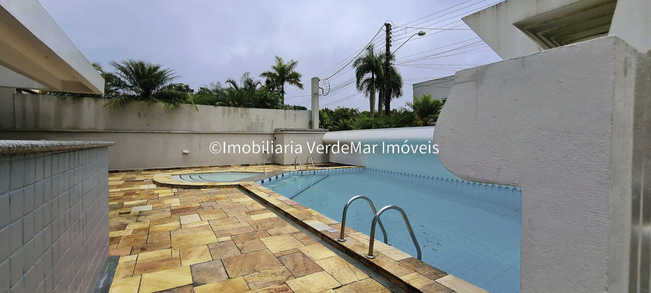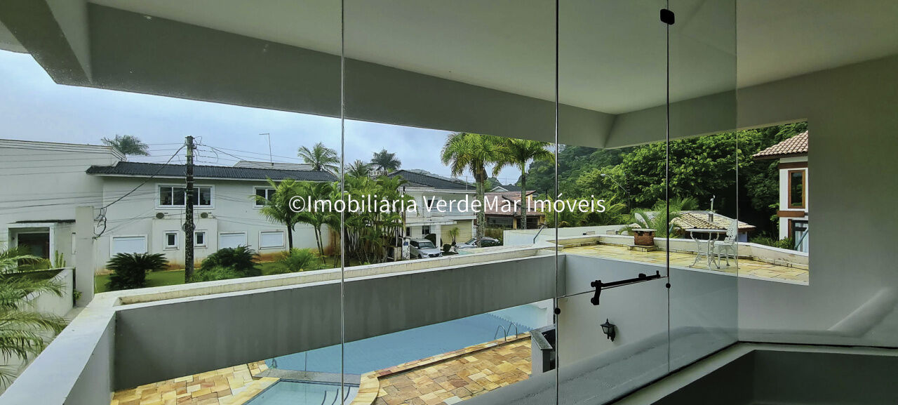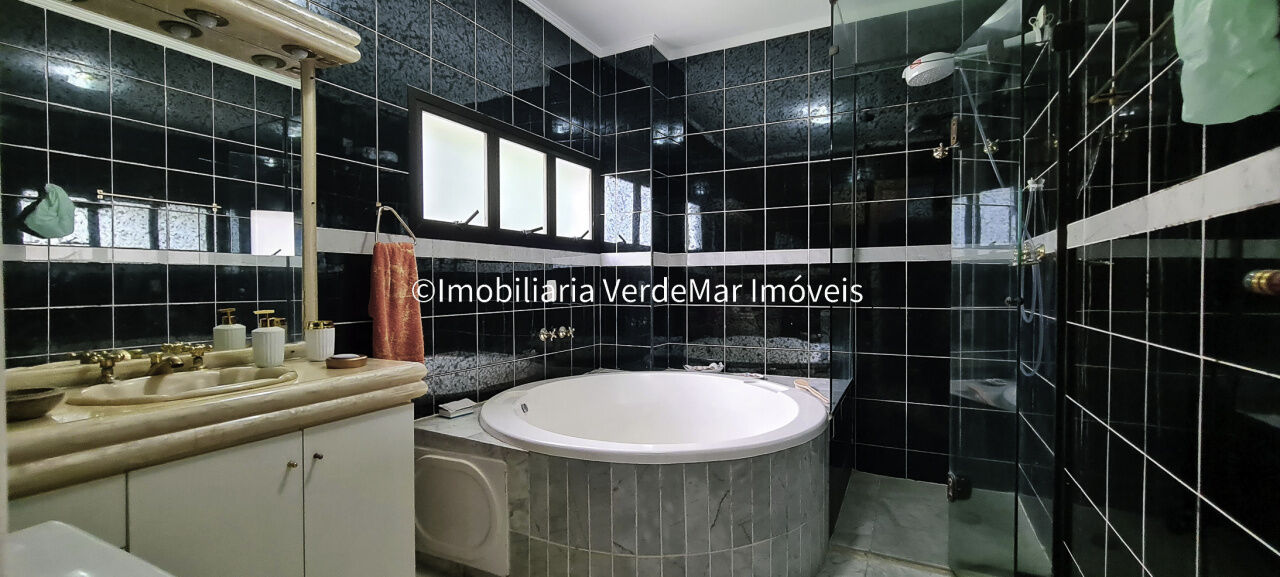 Casa em condomínio fechado na Praia do Pernambuco em Guarujá, com 06 dormitórios sendo 04 suítes e duas delas são suítes máster com closet, hidromassagem e sacada, sala para 03 ambientes com lareira, 02 amplas sala de tv, cozinha planejada, lavanderia e dependência de empregada