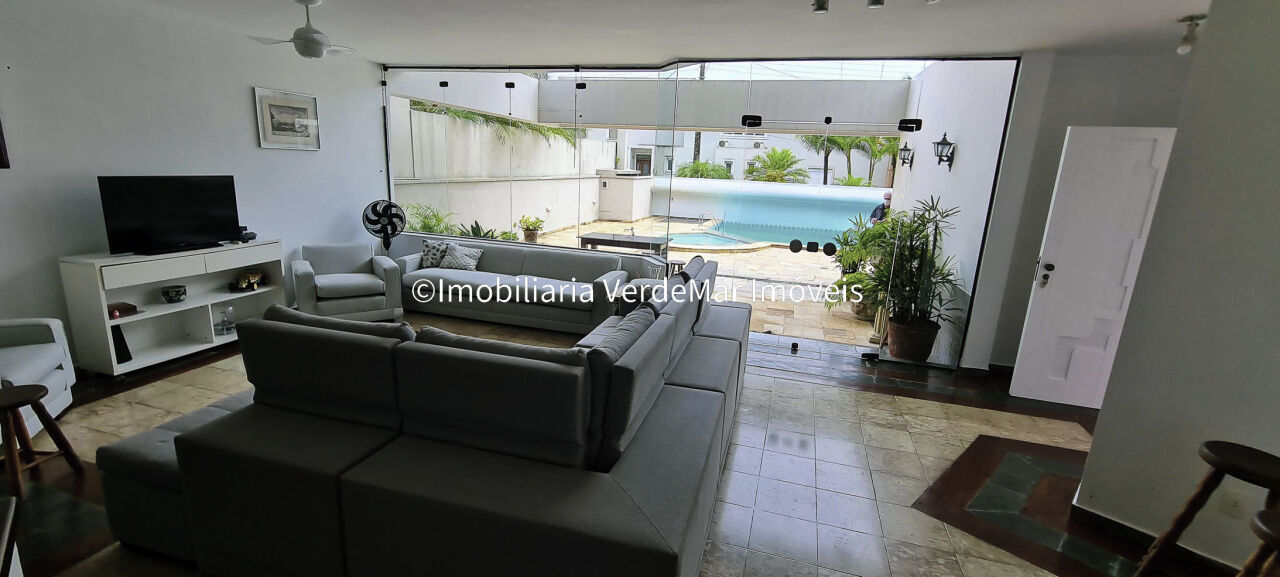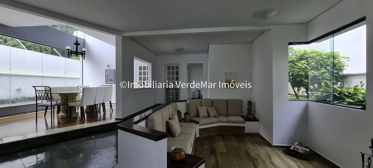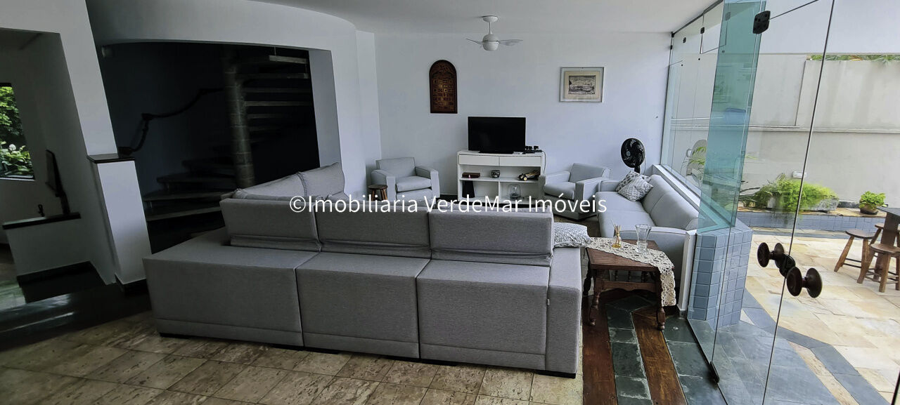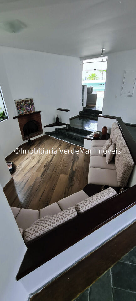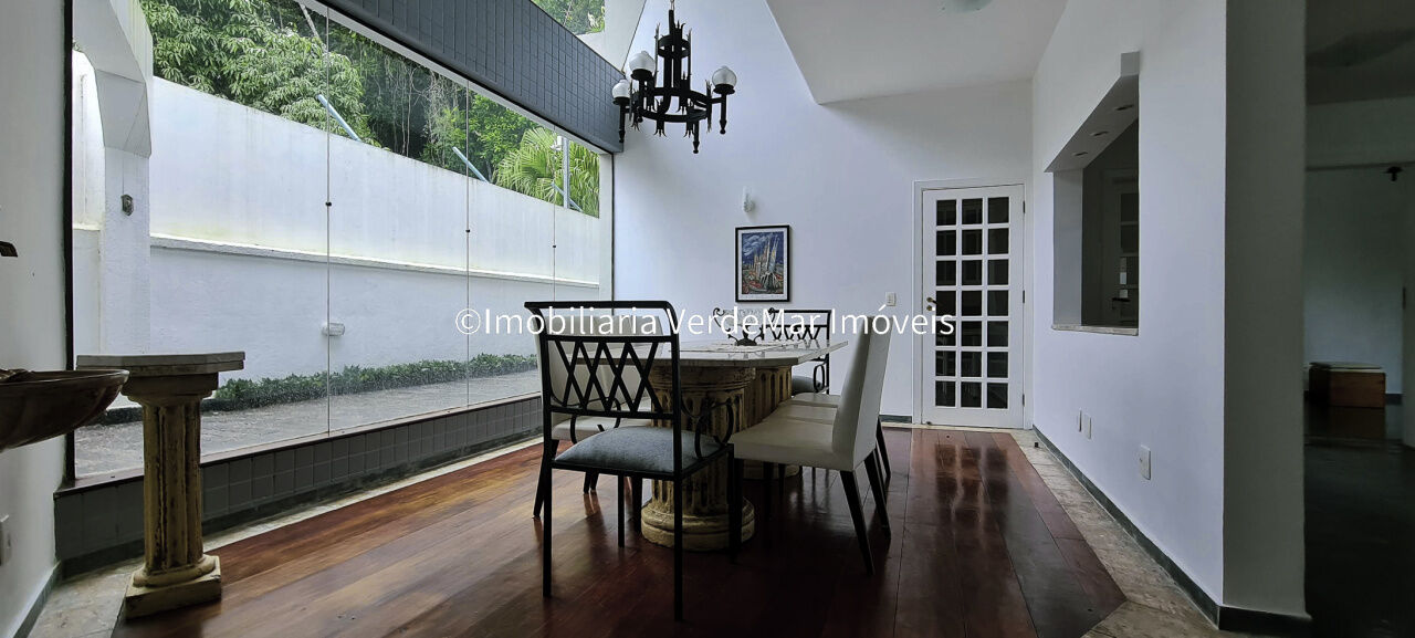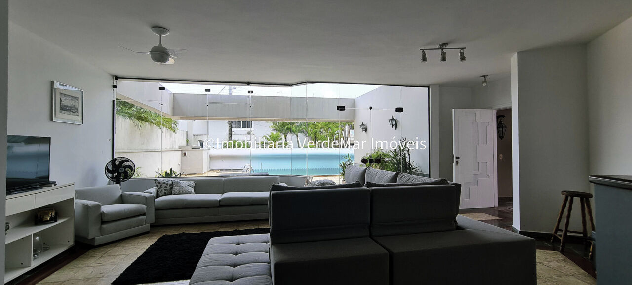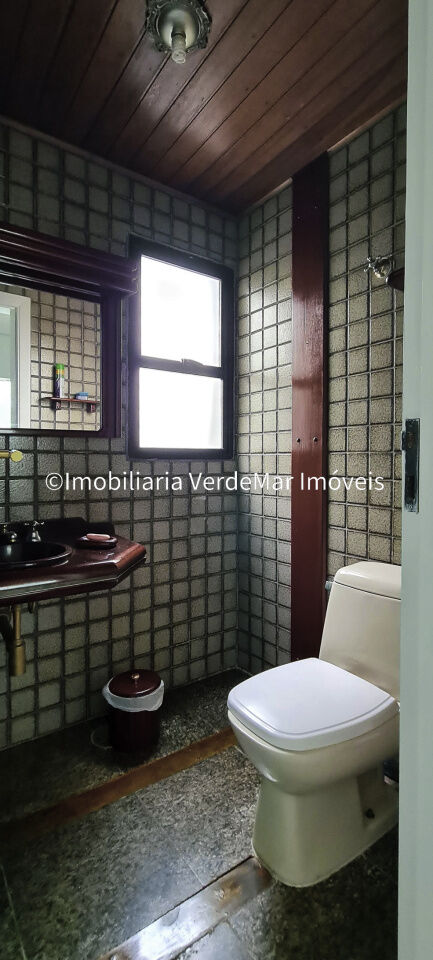 Casa em condomínio fechado na Praia do Pernambuco em Guarujá, com 06 dormitórios sendo 04 suítes e duas delas são suítes máster com closet, hidromassagem e sacada, sala para 03 ambientes com lareira, 02 amplas sala de tv, cozinha planejada, lavanderia e dependência de empregada