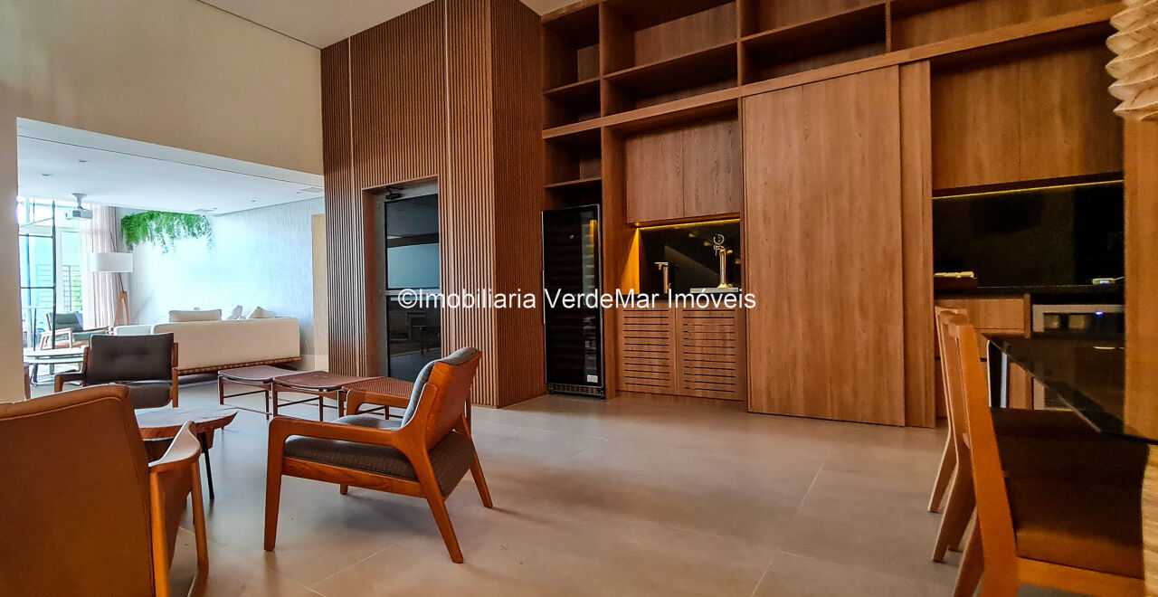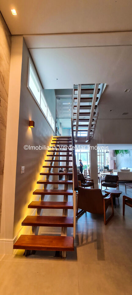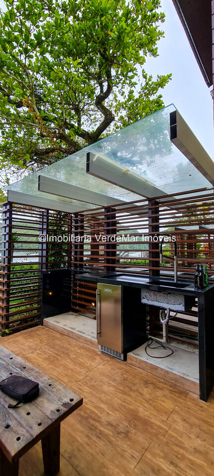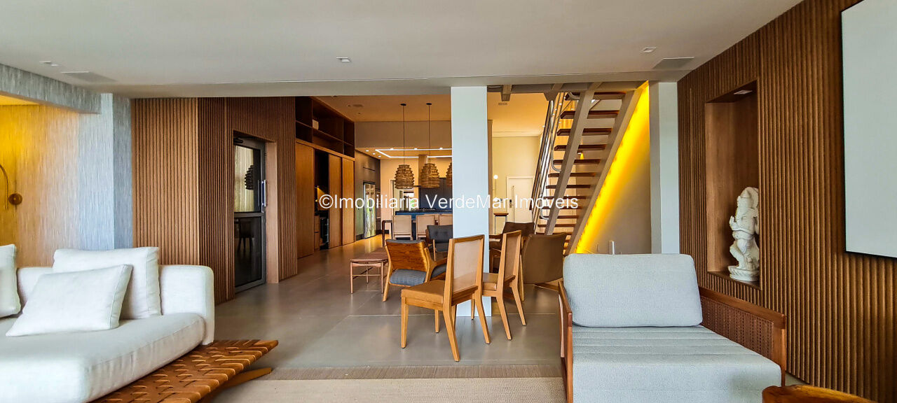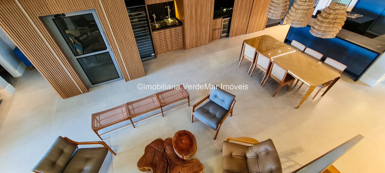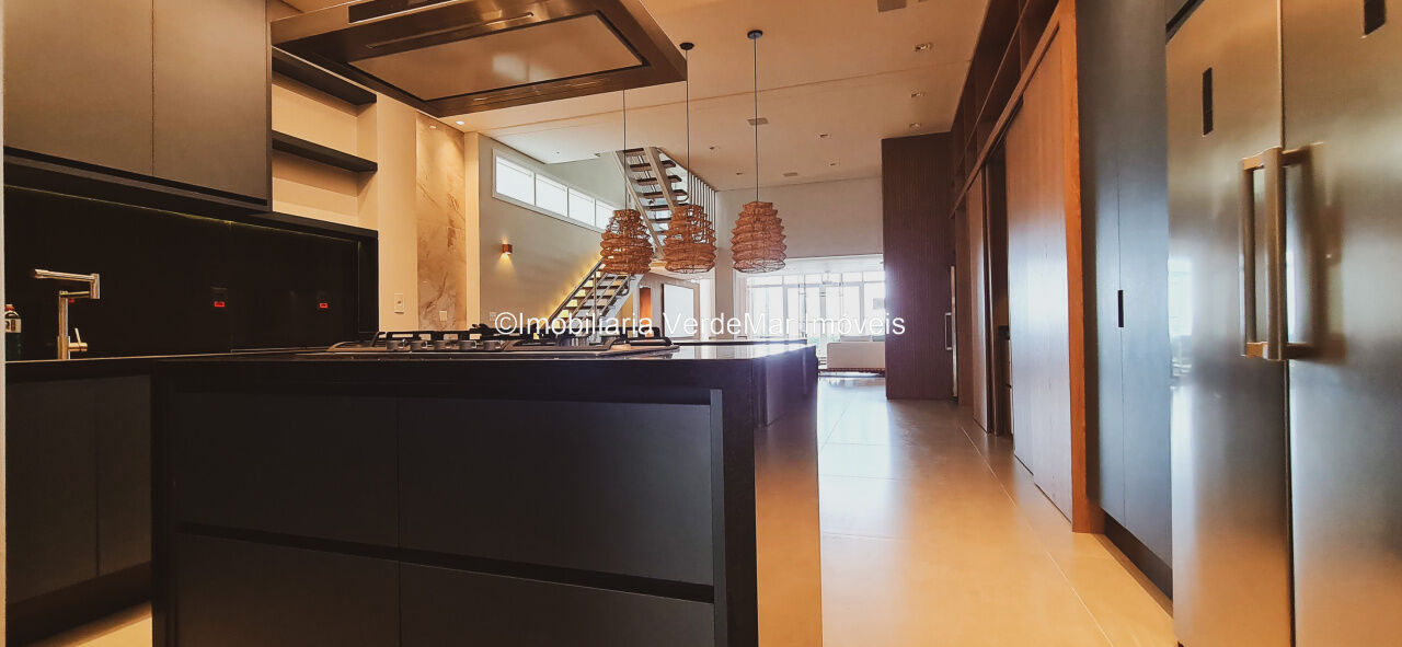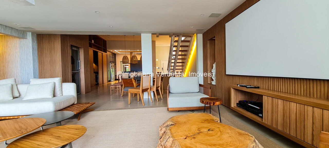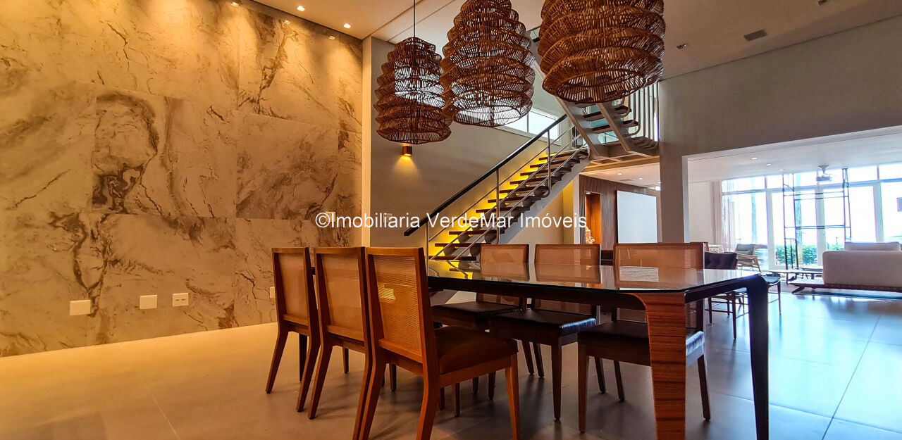 Jequiti Residence na Praia de Pernambuco em Guarujá, casa frente ao mar, com 06 suítes, sala para 03 ambientes com terraço, home theater no mezanino, lavabo, cozinha planejada, 06 banheiros, área de serviço, despensa e suíte de empregada.