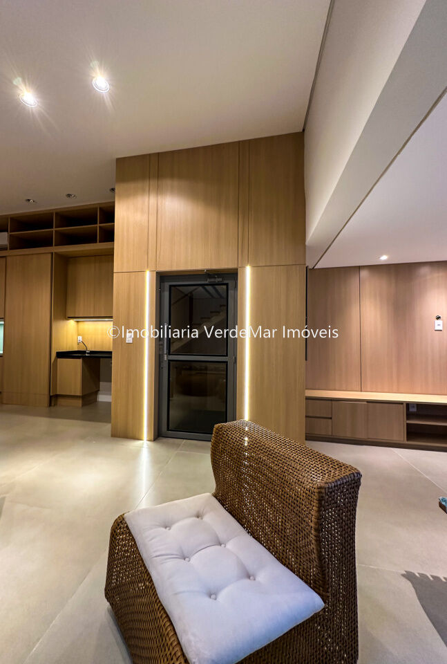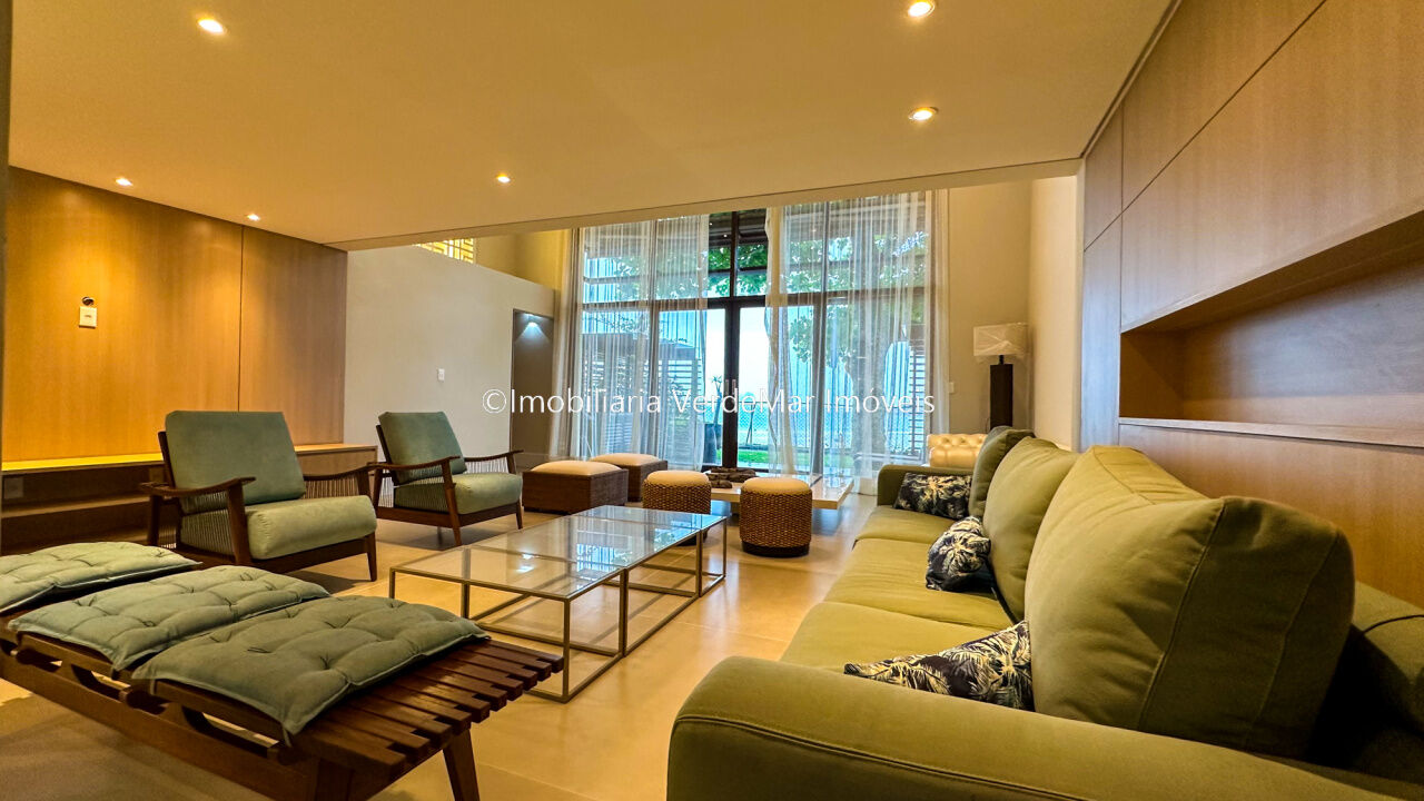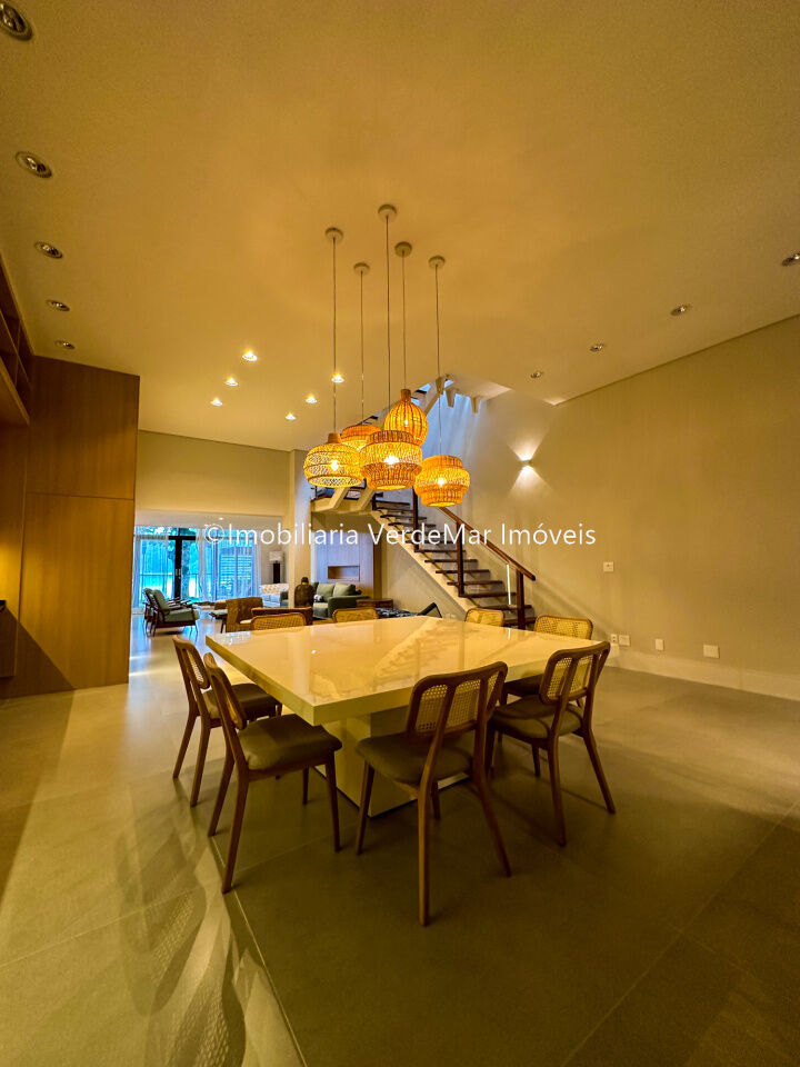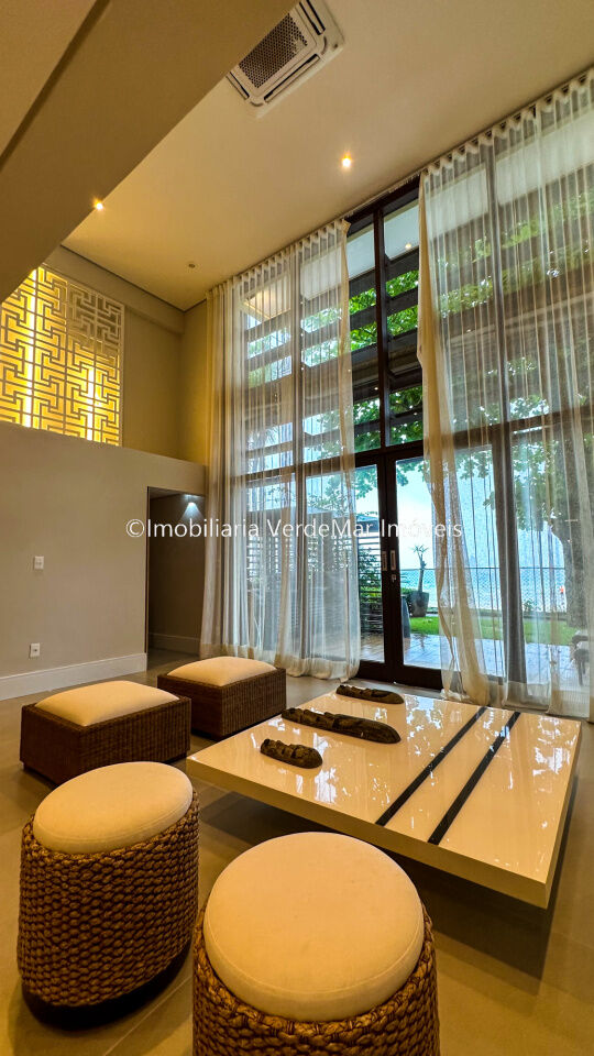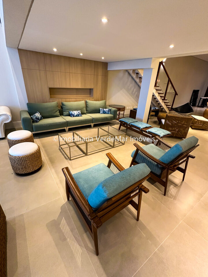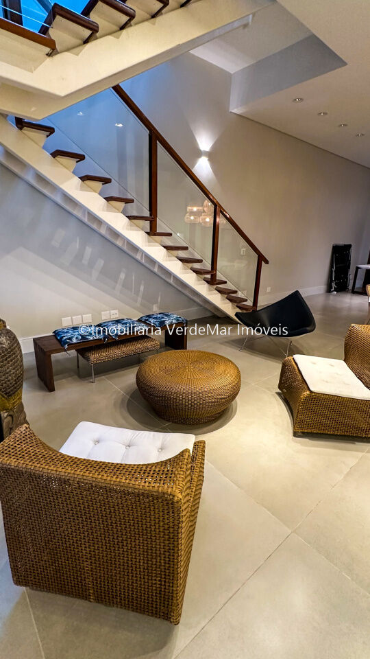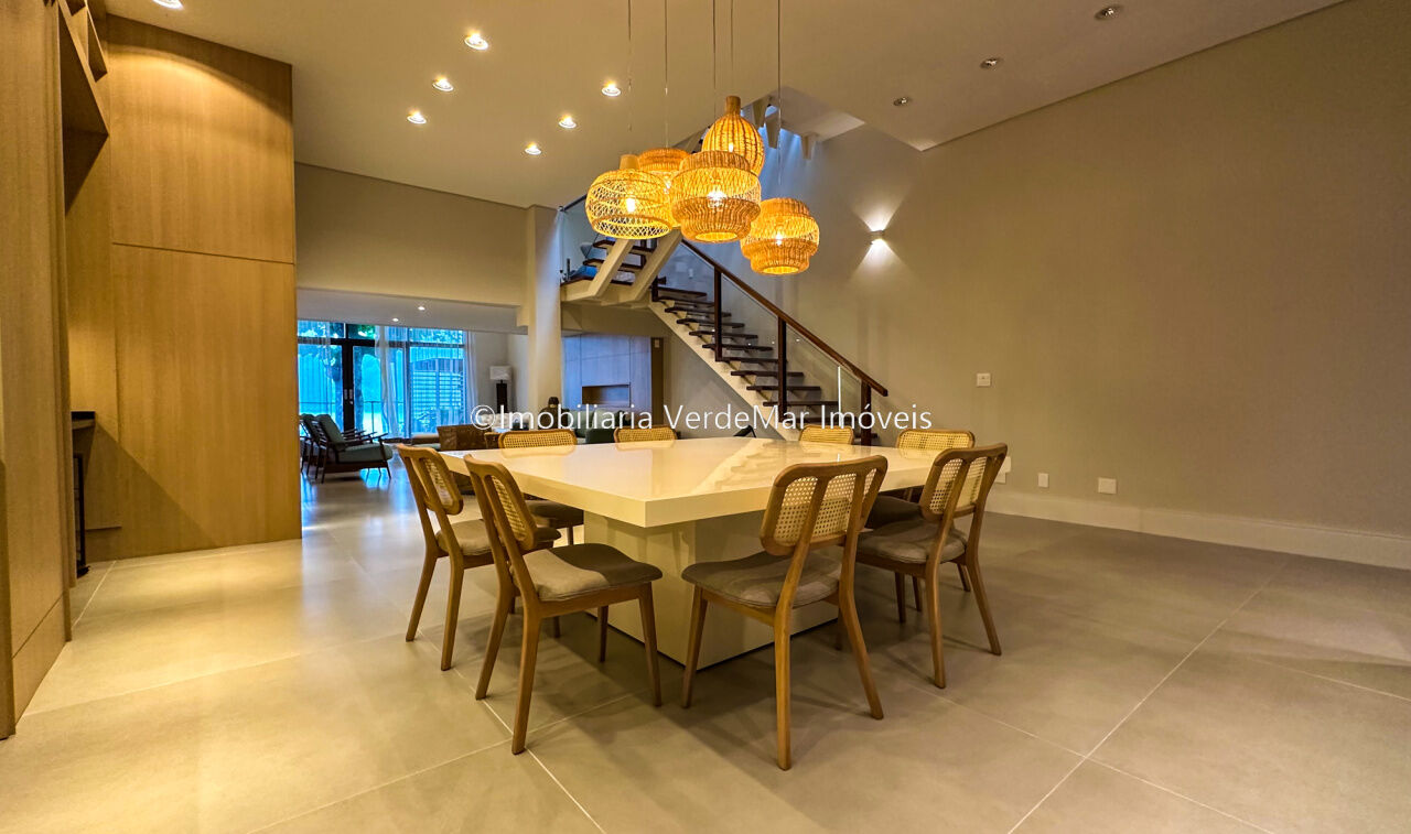 Jequiti Residence na Praia de Pernambuco em Guarujá, casa frente ao mar, com 4 suítes, sala para 3 ambientes com terraço, home theater no mezanino, lavabo, cozinha planejada, 6 banheiros, área de serviço, despensa e suíte de empregada.