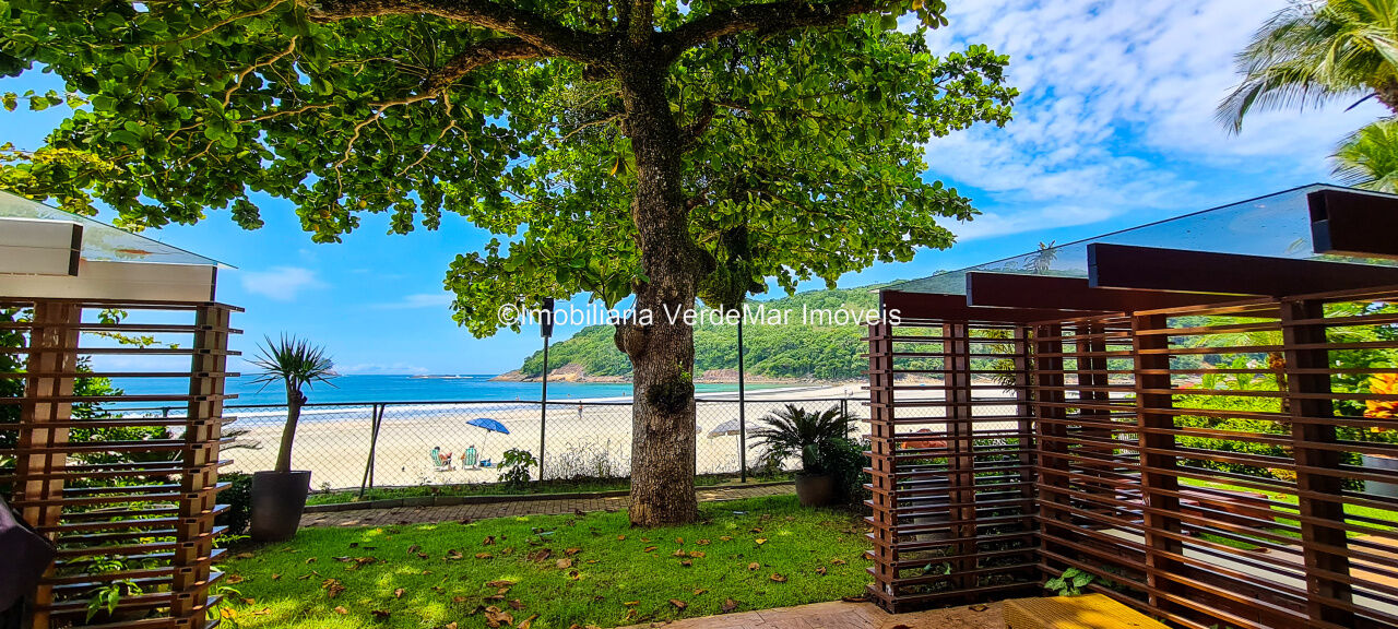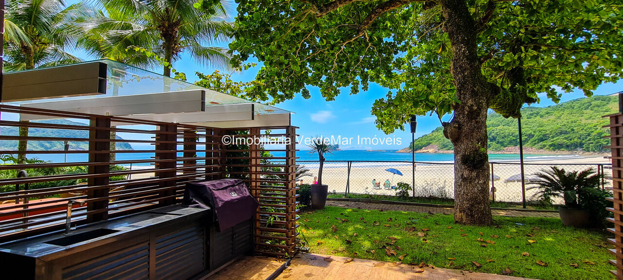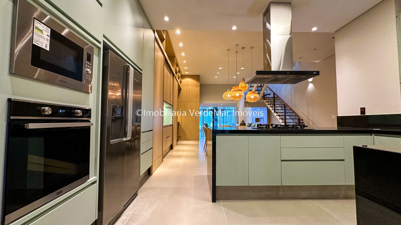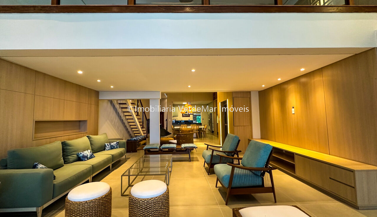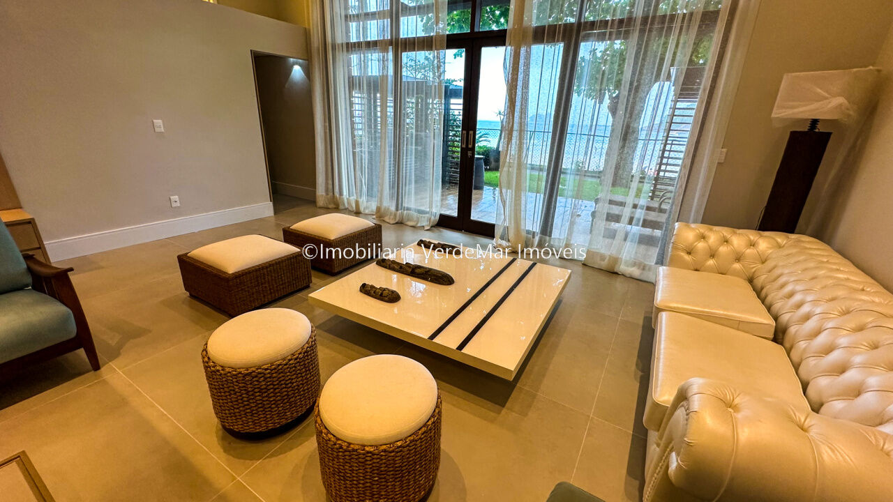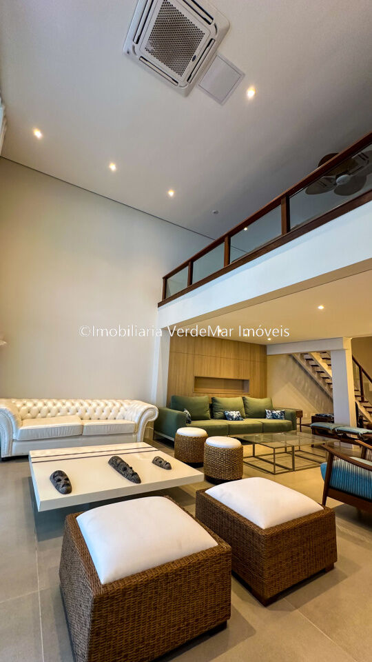 Jequiti Residence na Praia de Pernambuco em Guarujá, casa frente ao mar, com 4 suítes, sala para 3 ambientes com terraço, home theater no mezanino, lavabo, cozinha planejada, 6 banheiros, área de serviço, despensa e suíte de empregada.