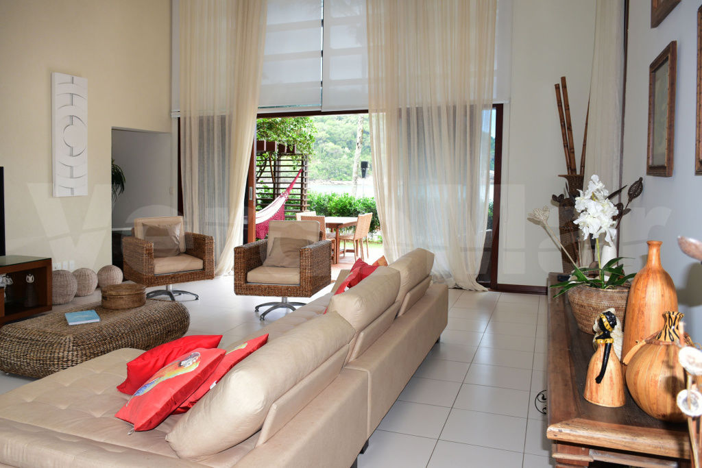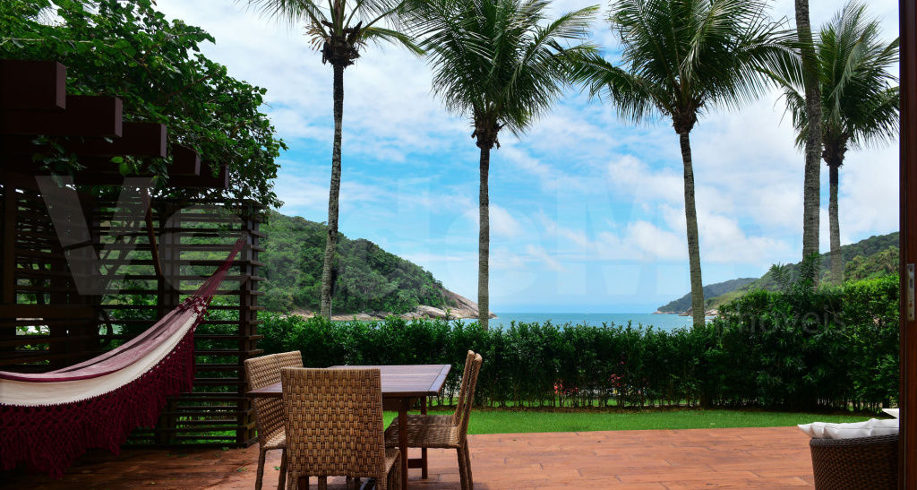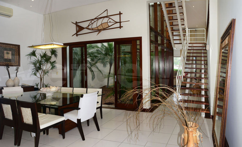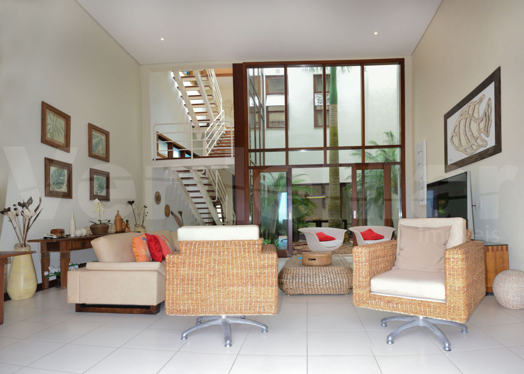 Jequiti Residence na Praia de Pernambuco em Guarujá, casa frente ao mar, com 04 suítes, sala para 2 ambientes com terraço, jardim de inverno, lavabo, cozinha planejada, 6 banheiros, área de serviço, despensa e suíte de empregada.