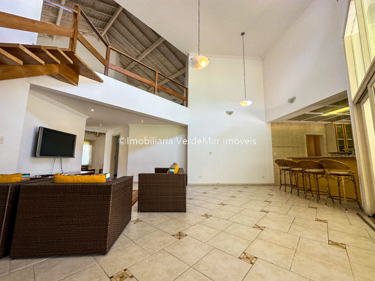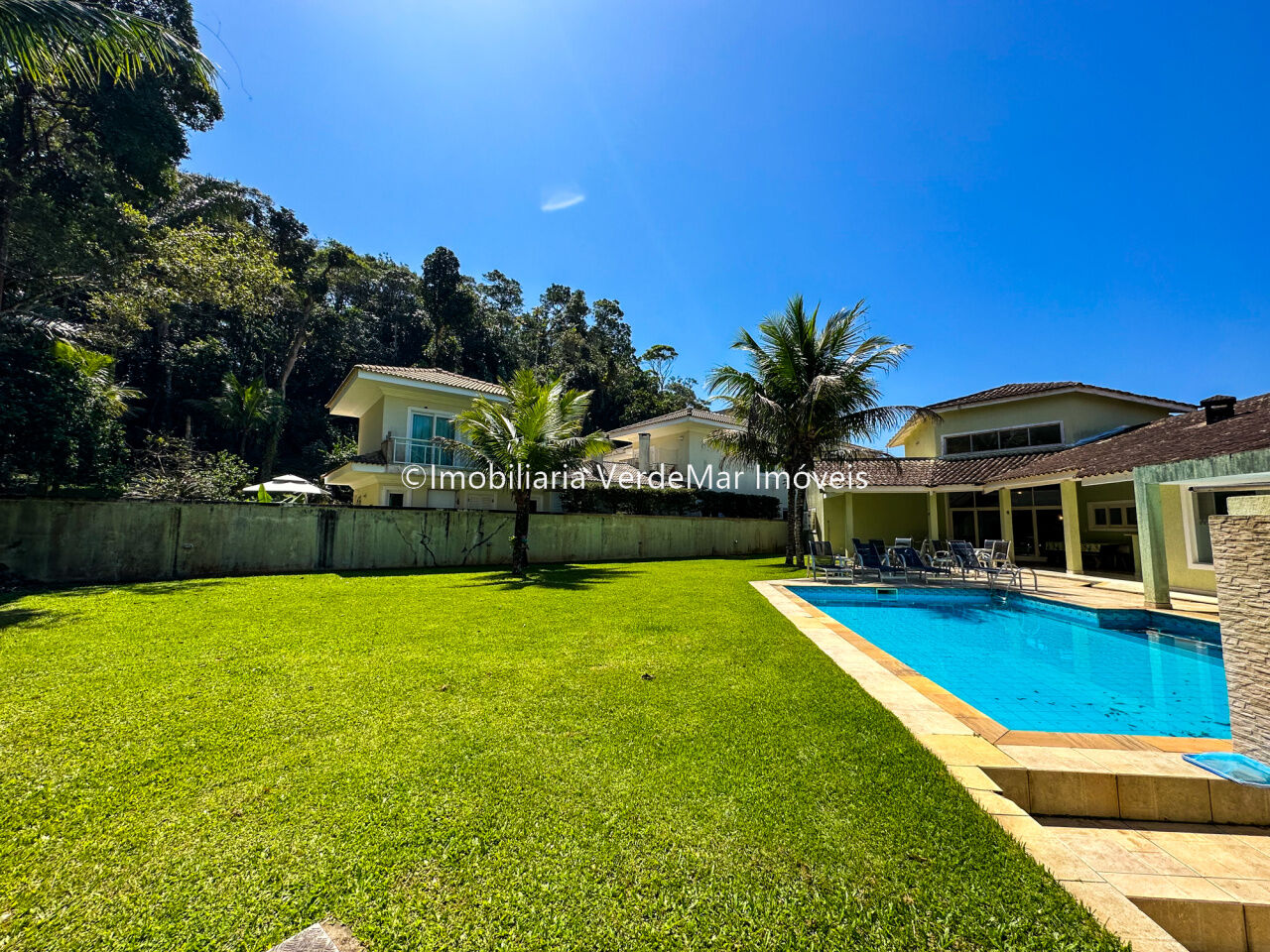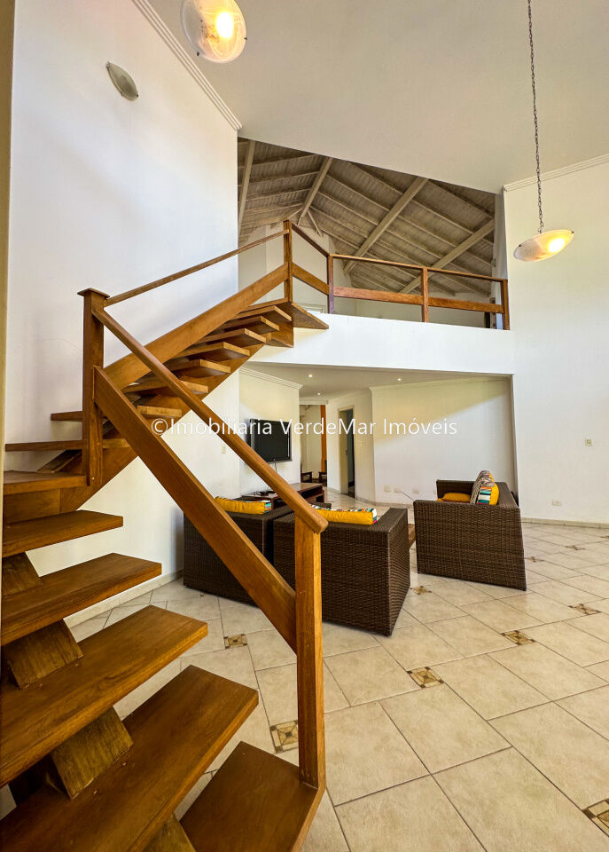 Casa no Condomínio Park Lane na praia de Pernambuco no Guarujá, mobiliada, com 5 dormitórios sendo 2 suítes com banheira, sala para 2 ambientes com varanda, sala de tv com lareira, lavabo, cozinha americana e área de serviços.