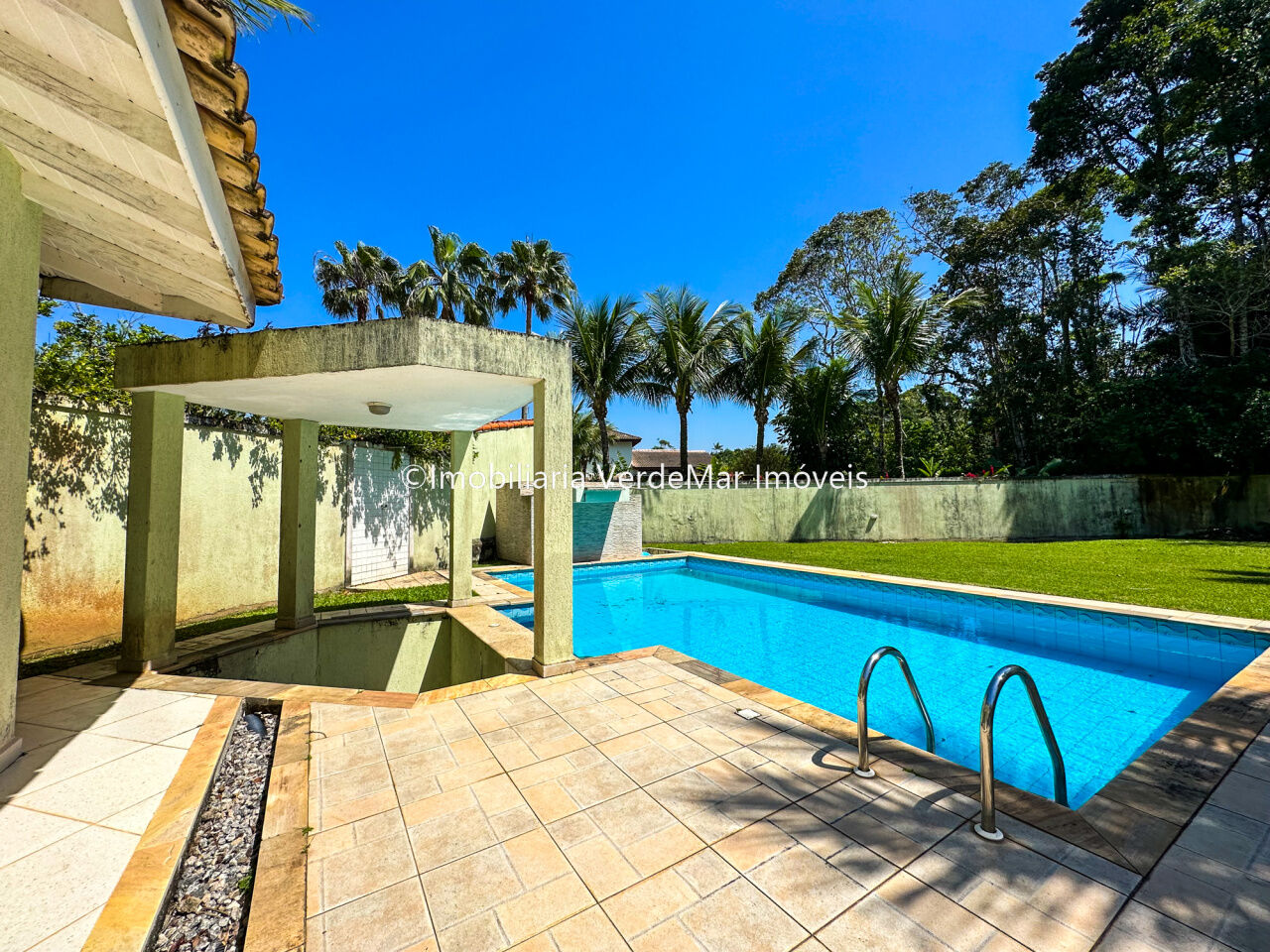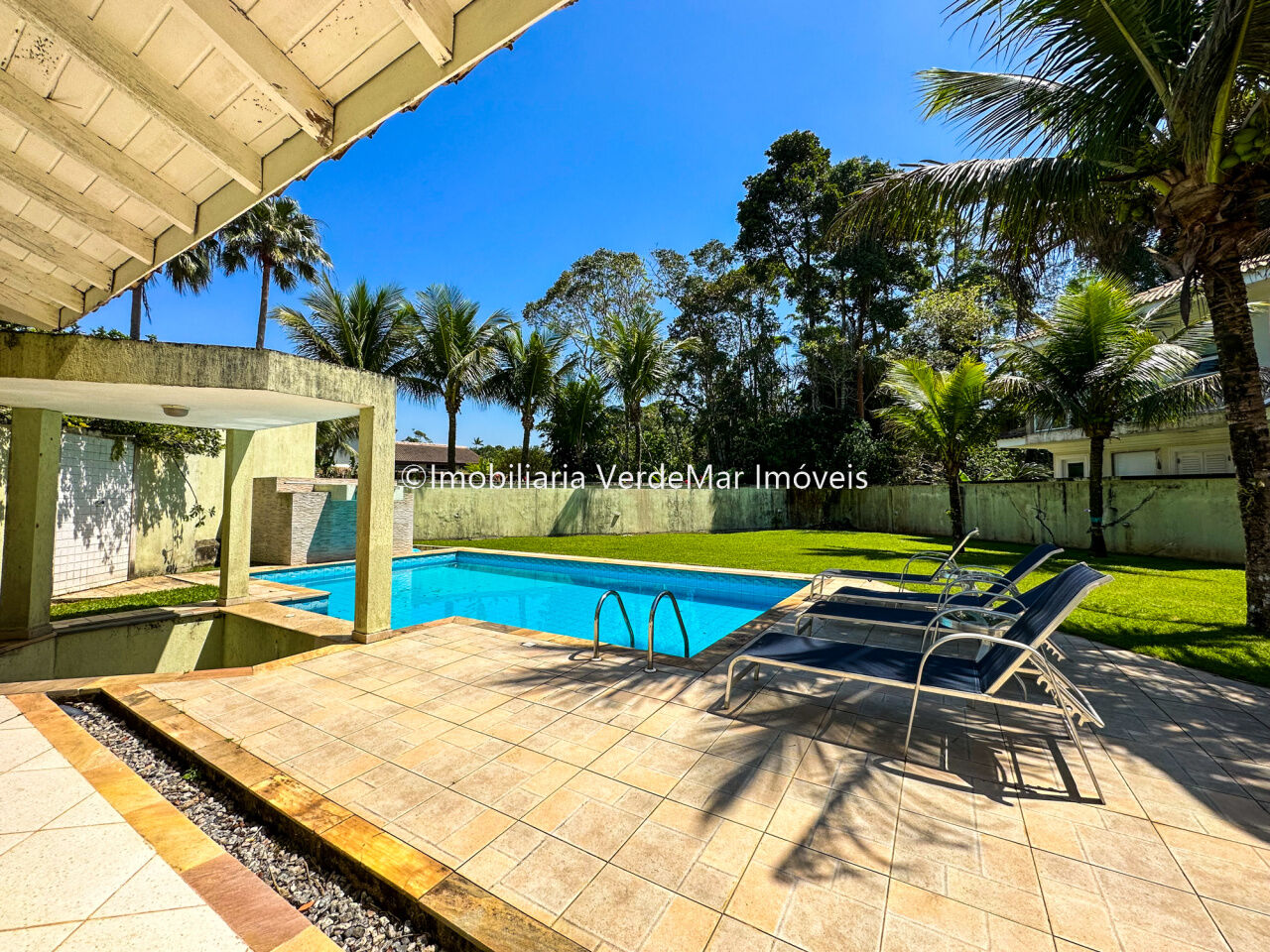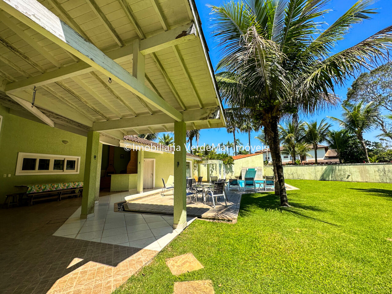 Casa no Condomínio Park Lane na praia de Pernambuco no Guarujá, mobiliada, com 5 dormitórios sendo 2 suítes com banheira, sala para 2 ambientes com varanda, sala de tv com lareira, lavabo, cozinha americana e área de serviços.