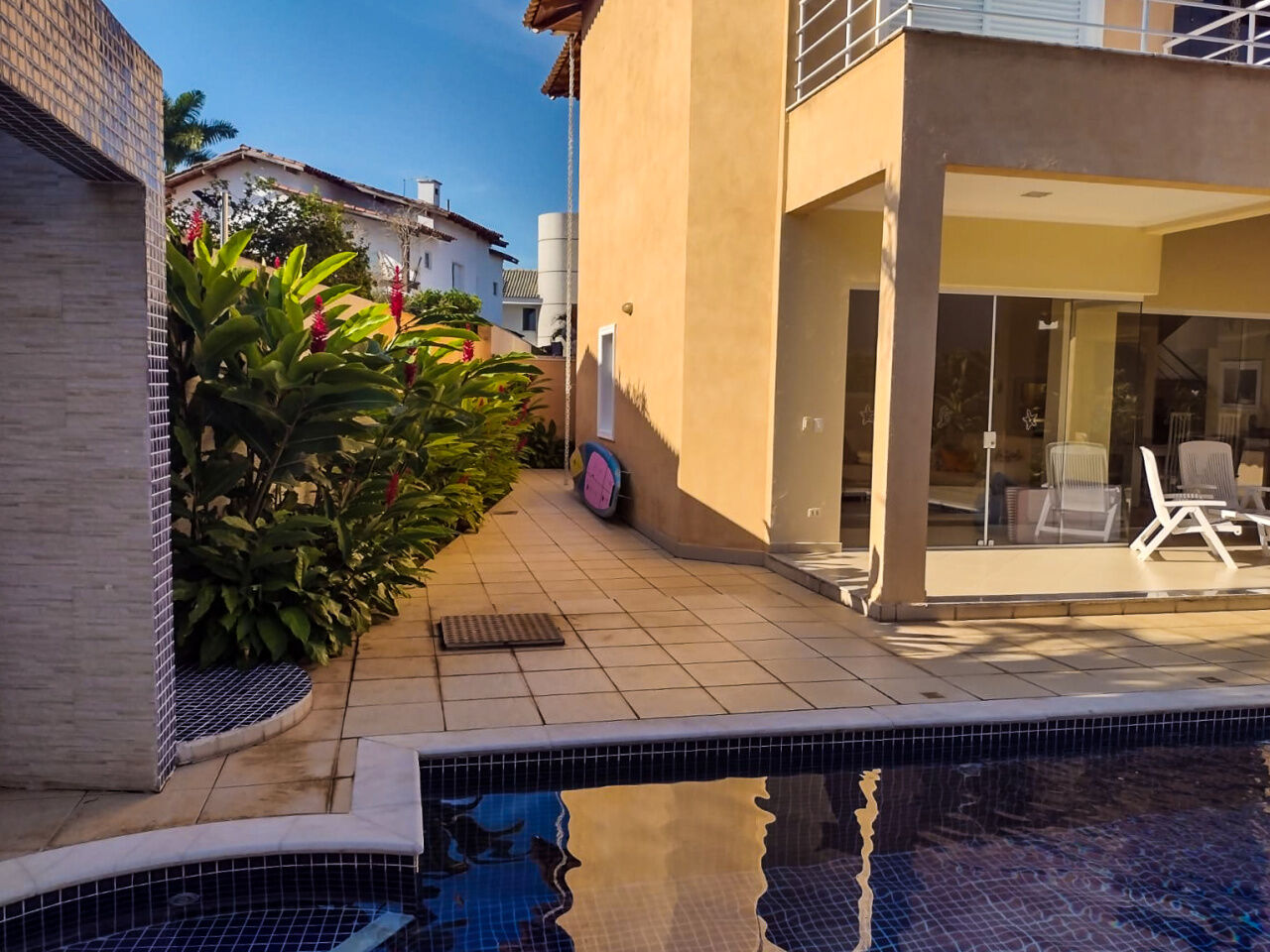 Casa à venda em condomínio na praia de Pernambuco no Guarujá, com 4 suítes, sendo 1 máster com hidromassagem, sala para 2 ambientes com terraço mobiliável,, lavabo, cozinha planejada, área de serviços e dependência de empregada.