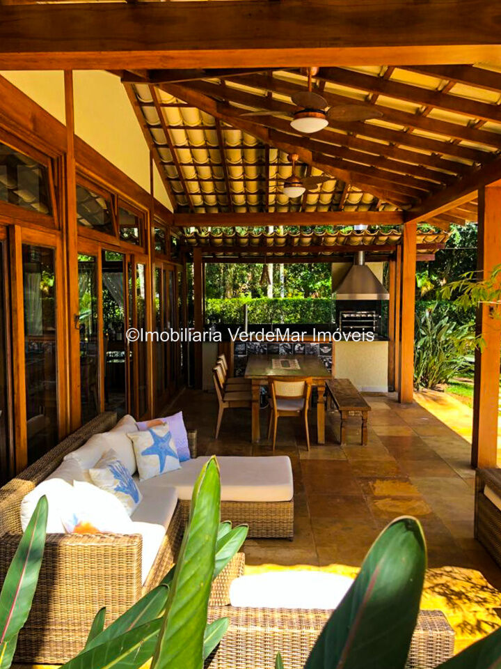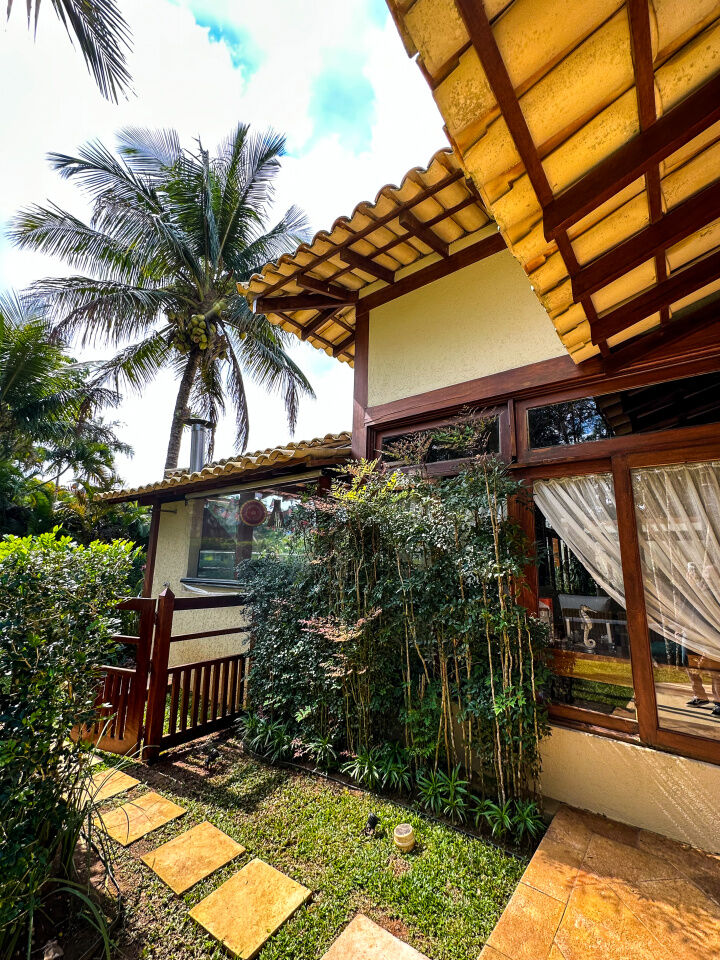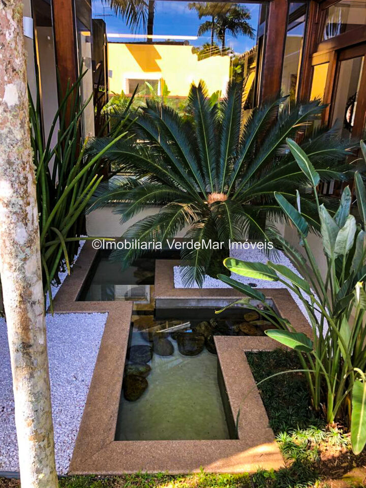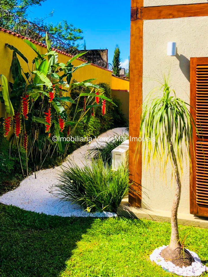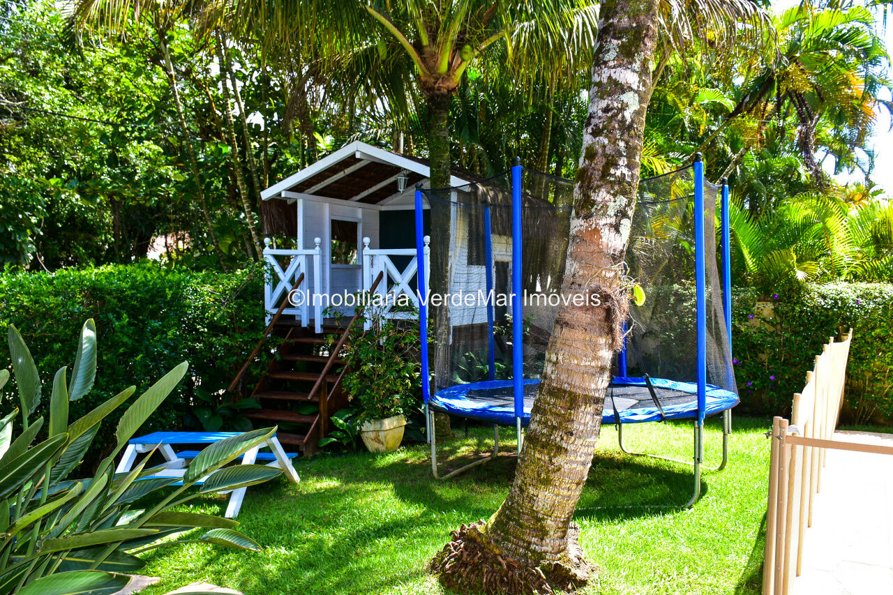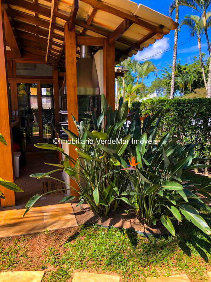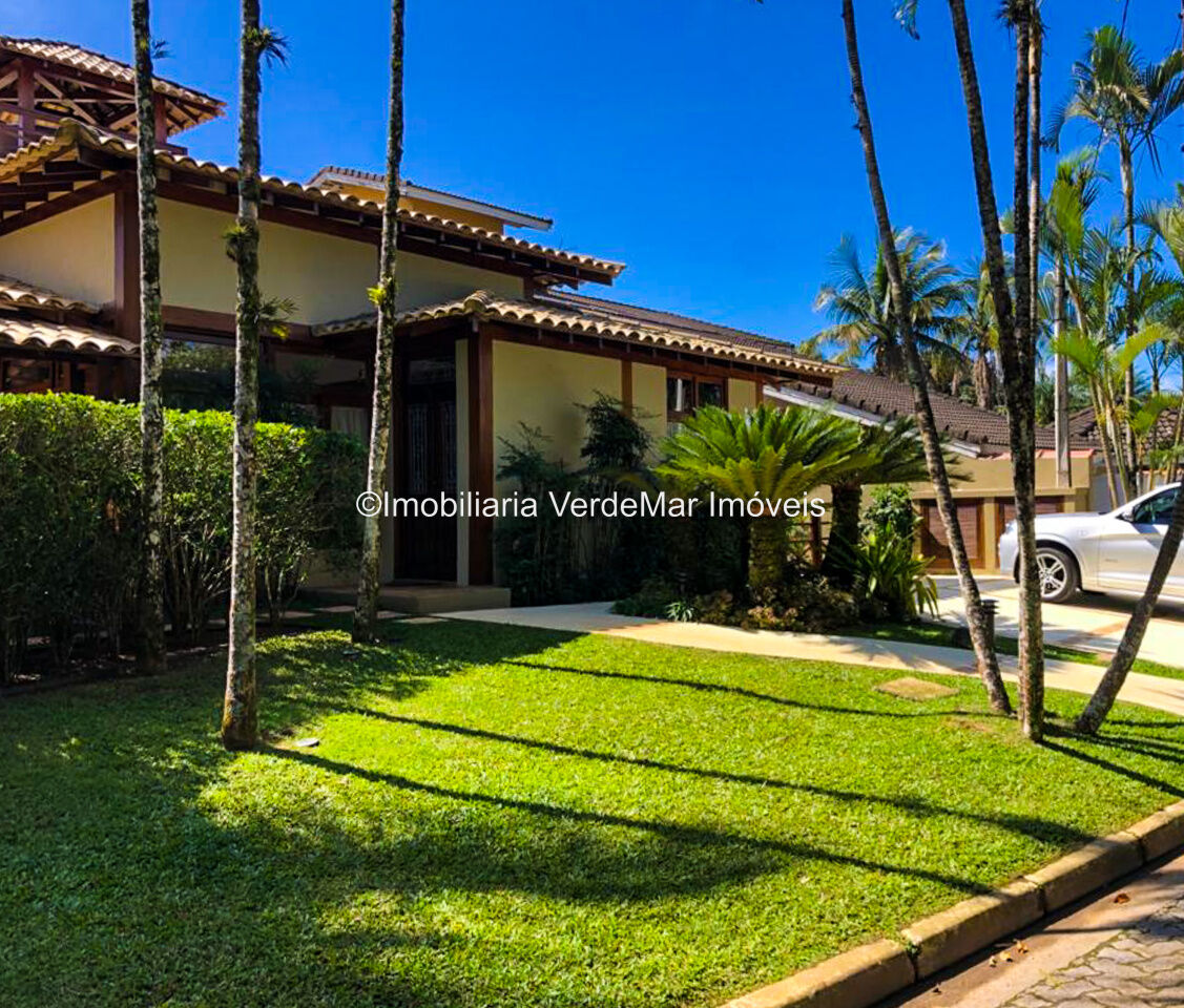 Casa à venda em condomínio na praia de Pernambuco no Guarujá, com 4 suítes, sala para 2 ambientes com terraço mobiliável, jardim interno, lavabo, cozinha americana planejada, área de serviços e dependência de empregada.