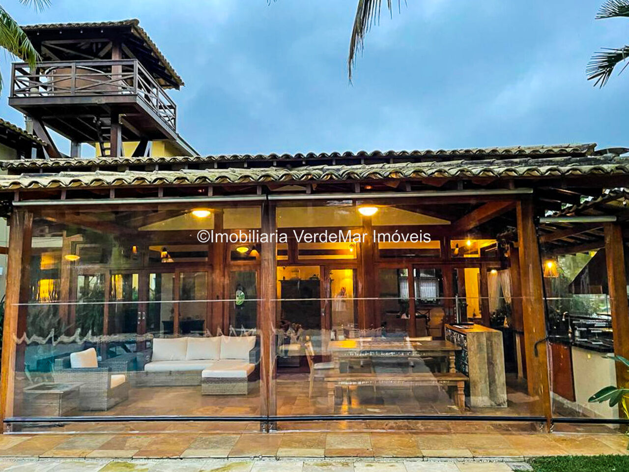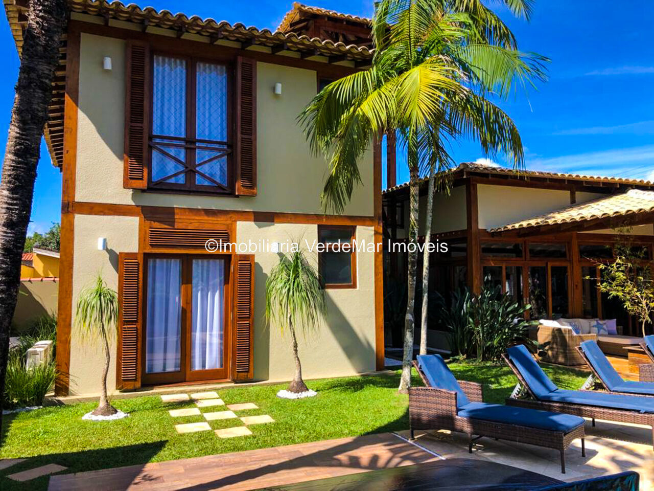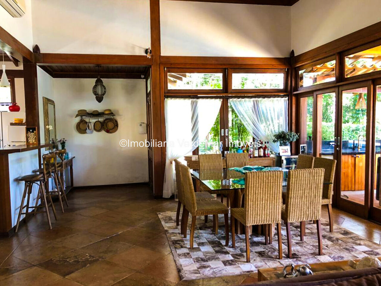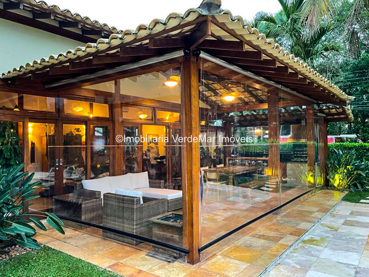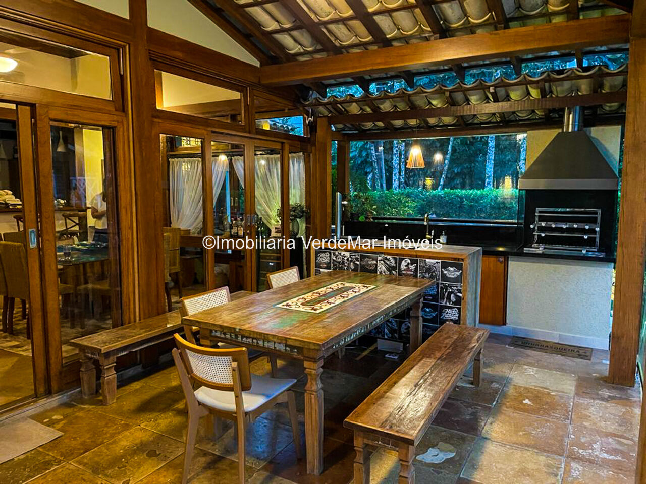 Casa à venda em condomínio na praia de Pernambuco no Guarujá, com 4 suítes, sala para 2 ambientes com terraço mobiliável, jardim interno, lavabo, cozinha americana planejada, área de serviços e dependência de empregada.