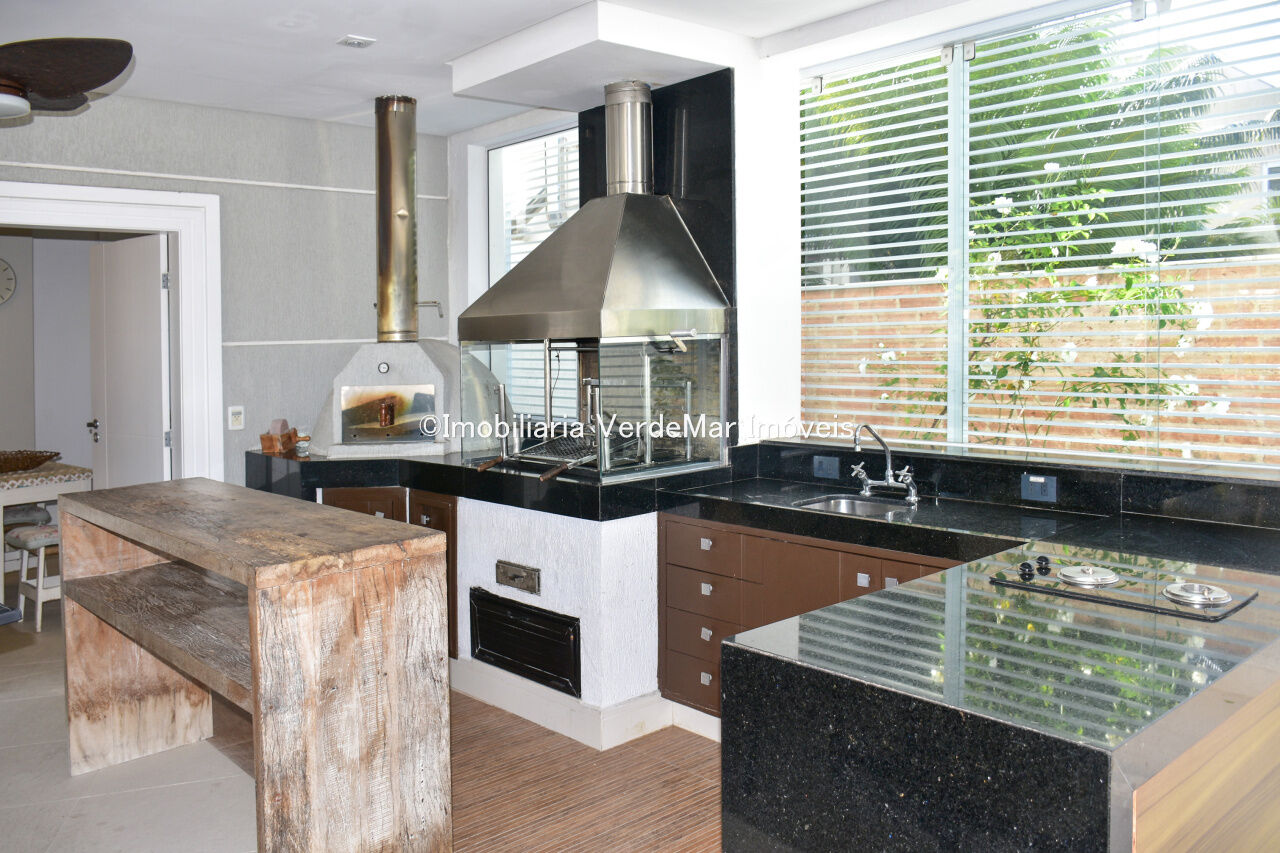 Espaço gourmet com churrasqueira e cozinha de apoio,